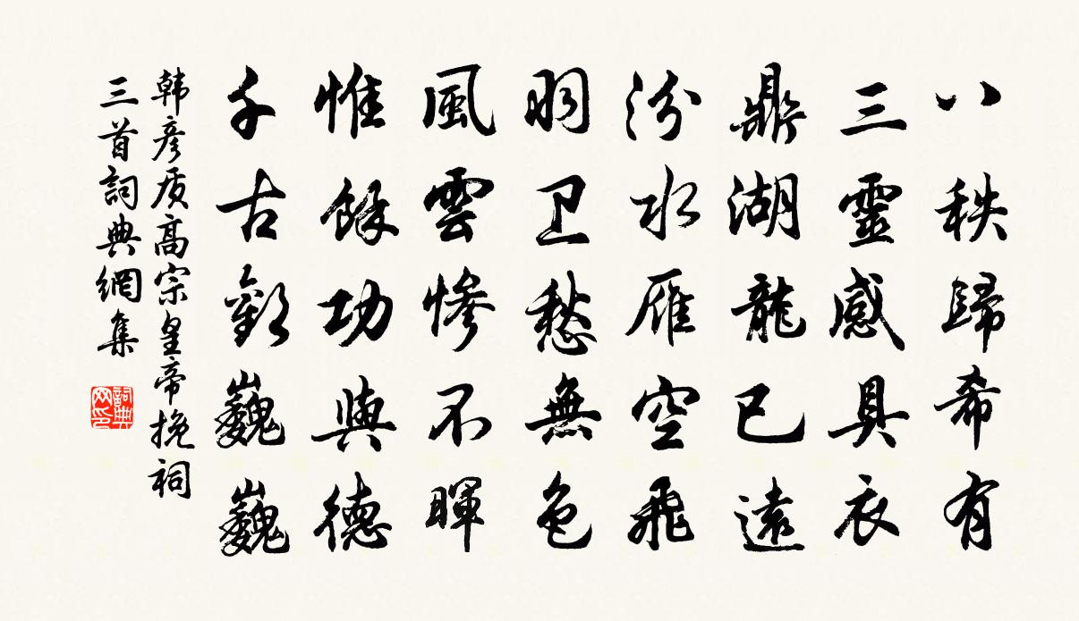 詩詞名句歷史字典書法欣賞書法字典國語詞典說文解字康熙字典古漢語字典標 題 作 者 詩 句 高宗皇帝挽祠三首作者:韓彥質 朝代:宋代高宗皇帝挽祠三首原文八秩歸希有,三靈感具衣。鼎湖龍已遠,汾水雁空飛。羽衛愁無色,風雲慘不暉。惟余功與德,千古歡巍巍。詩詞問答問:高宗皇帝挽祠三首的作者是誰?答:韓彥質問:高宗皇帝挽祠三首寫於哪個朝代?答:宋代韓彥質高宗皇帝挽祠三首書法欣賞高宗皇帝挽祠三首書法作品詩詞推薦檐滴楊萬里〔宋代〕檐滴疏疏亦幾何,滴將苦砌出圜窠。就中漱滌偏精巧,泥土都無石子多。又次韻帥初諸前七首陳著〔宋代〕三閒老屋坐屏山,梅影橫斜細竹斑。寡慾自能堅鐵脊,長生何必問金丹。送贊可參議赴臨安粹三首郭印〔宋代〕亭上銜杯日,江邊摻袂時。一年渾共醉,萬里各相思。老得青眸顧,心將白首期。青雲如在手,故舊莫遐遺。答曾景建趙師秀〔宋代〕愛重吟來句,和經一處安。亦知將作佛,何訝不為官。楚塞烽煙靜,淮波柳絮殘。疑根深未指,欲往愧飛翰。靈寶道院劉克莊〔宋代〕兩行松繞垣,數個竹當軒。山主出何處,道人知不言。只攜詩草至,尚覺磬聲煩。俗奉醫仙謹,儒家亦舍旛。秋日懷九華舊居杜荀鶴〔唐代〕吾道在五字,吾身寧陸沈。涼生中夜雨,病起故山心。燭共寒酸影,蛩添苦楚吟。何當遂歸去,一逕入松林。春情四首高翥〔宋代〕鬥草歸來上玉階,香塵微涴合歡鞋。全籌贏得無人賞,依舊春愁自滿懷。入京道中曝背裘萬頃〔宋代〕露溼芳桃午未乾,花時全似麥秋寒。征衫不敵東風力,試上郵亭曝背看。秋釋奠於學萬舍人示詩次韻以酬虞儔〔宋代〕昔年泮水忽專城,文會何妨一再盟。已媿簿書成俗吏,卻陳俎豆見諸生。一時同隊魚猶在,千載重來鶴更清。況有和杜運使巴峽地暖節物與中土異黯然有感詩三首王周〔唐代〕隨柳參差破綠芽,此中依約欲飛花。春光是處傷離思,何況歸期未有涯。始看菊蕊開籬下,又見梅花寄嶺頭。攬轡與伍侍郎別詩鮑照〔南北朝〕民生性如野鹿性。知愛性不知命性。飲齕且攢聚。翹陸歘驚迸。傷我慕類心。感爾食苹性。漫漫鄢郢途。渺渺淮海丙寅孟夏聞捷和陳平唐士恥〔宋代〕朝家遵養自三宗,一旦吾皇定一戎。近事長庚偏入月,清詩太白又先功。天聲地界光今古,帝邑王京共會同。延喜送導江李主簿君俞司馬光〔宋代〕學海無涯富,辭鋒一戰勛。聲華掩終賈,賦頌繼淵雲。五斗為邊吏,千他飽戍軍。明恩美尤異,優秩賞能勤。黃祖塞翁吟(黃鐘商贈宏庵)吳文英〔宋代〕草色新宮綬,還跨紫陌驕驄。好花是,晚開紅。冷菊最香濃。黃簾綠幕蕭蕭夢,燈外換幾秋風。敘往約,桂花宮。太常樂章三十首其二十三引群官作正安之曲楊億〔宋代〕萬邦來同,九賓在位。奉璋薦紳,陟降庭止。文思安安,威儀棣棣。臣哉鄰哉,介爾蕃祉。蘇幕遮 和師韻馬鈺〔元代〕清淨門,柔弱戶。忍辱家風,樸實為公據。無作無為成活路。自在逍遙,雲水通行步。絕聰明,效愚魯。兀兀騰騰禪人求贊四首釋宗杲〔宋代〕鐵蛇在握,毒氣爍爍。擬議不來,劈口便著。水調歌頭(垂虹橋亭詞)崔敦禮〔宋代〕倚棹太湖畔,踏月上垂虹。銀濤萬頃無際,渺渺欲浮空。為問瀛洲何在,我欲騎鯨歸去,揮手謝塵籠。未得世緣了卜運算元·賞荷以蓮葉勸酒作葛立方〔宋代〕明鏡蓋紅蕖,軒戶臨煙渚。窣窣珠簾淡淡風,香里開尊俎。莫把碧筒彎,恐帶荷心苦。喚我溪邊太乙舟,瀲灩盛芳巴江王周〔唐代〕巴江江水色,一帶濃藍碧。仙女瑟瑟衣,風梭晚來織。名句推薦翻被梨花冷看,人生苦戀天涯。張炎《朝中措·清明時節》 醉舞梁園夜,行歌泗水春杜甫《寄李十二白二十韻》 碧雲無渡碧天沉,是湖心,是儂心。張惠言《江城子·填張春溪西湖竹枝詞》 念月榭攜手,露橋聞笛。周邦彥《蘭陵王·柳》 窮巷多怪,曲學多辯。愚者之笑,智者哀焉;狂夫之樂,賢者喪焉。商鞅《商君書·更法》 萬物同宇而異體,無宜而有用為人,數也。荀子《荀子·富國》 願借天風吹得遠,家家門巷盡成春。李方膺《題畫梅》 漢家天子今神武,不肯和親歸去來。王之渙《涼州詞二首》 若得鼓而進於義,則吾義豈不益進哉。墨子《墨子·49章 魯問》 盡叫得鵑聲碎,卻教人空斷腸。阿魯威《湘妃怨·夜來雨橫與風狂》
