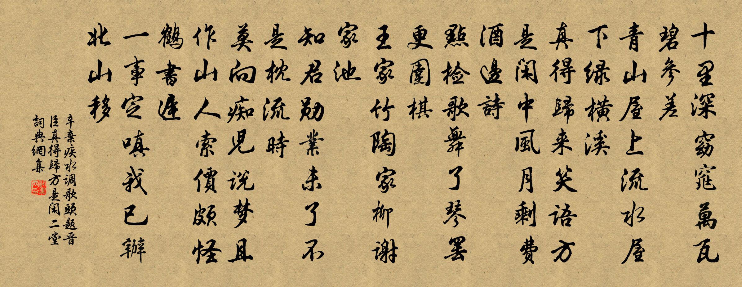 十里深窈窕,萬瓦碧參差。青山屋上,流水屋下綠橫溪。