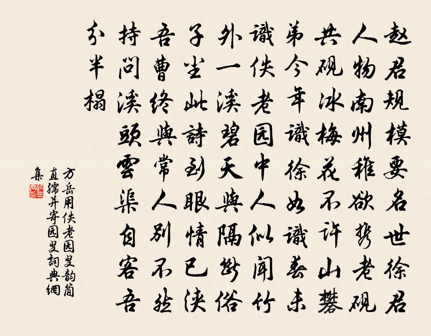 詩詞名句歷史字典書法欣賞書法字典國語詞典說文解字康熙字典古漢語字典標 題 作 者 詩 句 用佚老園叟韻簡直孺並寄園叟作者:方岳 朝代:宋代原文趙君規模要名世,徐君人物南州稚。欲攜老硯共硯冰,梅花不許山礬弟。今年識徐如識春,未識佚老園中人。似聞竹外一溪碧,天與隔斷俗子塵。此詩到眼情已浹,吾曹終與常人別。不然持問溪頭雲,渠自客吾分半榻。詩詞問答問:《用佚老園叟韻簡直孺並寄園叟》的作者是誰?答:方岳問:該詩寫於哪個朝代?答:宋代書法欣賞用佚老園叟韻簡直孺並寄園叟書法作品詩詞推薦和門下殷侍郎新茶二十韻徐鉉〔唐代〕暖吹入春園,新芽競粲然。才教鷹觜拆,未放雪花妍。荷杖青林下,攜筐旭景前。孕靈資雨露,鍾秀自山川。碾後嘉禾百詠泗洲庵張堯同〔宋代〕舊寺丘墟後,重興歲月賒。莫將閒禍福,容易托僧伽。贈臧文仲四首陳造〔宋代〕始吾泛其觀,中吾固其守。拳拳寶所重,世或輕敝帚。廄馬我所師,家雞誰得有。此心如此用,煩君訂是否。小園桃李始花,偶以成詠王周〔唐代〕桃李栽成艷格新,數枝留得小園春。半紅半白無風雨,隨分夭容解笑人。杏花天李萊老〔宋代〕年時中酒風流病。正雨暗、蘼蕪深徑。人家寒食煙初禁。狼藉梨花雪影。西湖夢、紅沈翠冷。記舞板、歌裙廝趁。思不見曹鄴〔唐代〕但見出門蹤,不見入門跡。卻笑山頭女,無端化為石。孟浩然騎驢圖劉克莊〔宋代〕壞墨殘縑閱幾春,灞橋風味尚如真。摩挲只可夸同社,裝飾應難奉貴人。舊向集中窺一面,今於畫裡識前身。世間出峽張嵲〔宋代〕牽舟已出峽,何旦復當還。蒲溪應漸近,已見宋平山。頌古三十一首釋梵琮〔宋代〕乞兒無縷又無襤,餿飯殘羹勿處檐。拈起多年破蓆袋,人前更不懼羞慚。七松亭張喬〔唐代〕七松亭上望秦川,高鳥閒雲滿目前。已比子真耕谷口,豈同陶令臥江邊。臨崖把卷驚回燒,掃石留僧聽遠泉。明月送永陽崔明府盧綸〔唐代〕鶴唳蒹葭曉,中流見楚城。浪清風乍息,山白月猶明。廢路開荒木,歸人種古營。懸聞正訛俗,邴曼更知名。賦詠得神仙詩陰鏗〔南北朝〕羅浮銀是殿。瀛洲玉作堂。朝游雲暫起。夕餌菊恆香。聊持履成燕。戲以石為羊。洪厓與松子。乘羽就周王。次韻張丞陳造〔宋代〕官上絕無歌酒樂,堆豗了事孰非痴。開樽良省纏頭費,卻有新章贈雪兒。句高似孫〔宋代〕忙猶輸使硯,懶尚事持茶。贈劉靜翁頌四首黃庭堅〔宋代〕念念皆空更莫疑,心王本自絕多知。艱勤長向途中覓,掉卻甜桃摘醋梨。擬古鮑照〔南北朝〕幽并重騎射,少年好馳逐。氈帶佩雙鞬,象弧插雕服。獸肥春草短,飛鞚越平陸。朝游雁門上,暮還樓煩宿。石樑漁家傲晏殊〔宋代〕越女採蓮江北岸。輕橈短棹隨風便。人貌與花相鬥艷。流水慢。時時照影看妝面。蓮葉層層張綠傘。蓮房個個垂金大雨水憂三堰決壞且念吾挺之在病無與共此憂李石〔宋代〕人道西山有龍穴,雷霆動江二水深。龍仙且莫壞我堰,我堰一決人陸沉。送鄭公績赴試金陵朱翌〔宋代〕君到封洗沐已,封蠟屐款北封山。吾祖封山中人,凜然千載顏。其旁馬鬣封,近去龍袞間。通鑑恰施行,新經宜少偈頌六十七首釋原妙〔宋代〕前四十五日何處去,焦尾大蟲入鬧市。後四十五日何處來,三腳驢子上高台。俊鷹快鷂便合乘時,跛鱉盲龜徒勞{名句推薦天容水色西湖好,雲物俱鮮。歐陽修《採桑子·天容水色西湖好》 草木搖殺氣,星辰無光彩。李白《經亂離後天恩流夜郎憶舊遊書懷贈江夏韋太守良宰》 報君黃金台上意,提攜玉龍為君死!李賀《雁門太守行》 荊吳相接水為鄉,君去春江正淼茫。孟浩然《送杜十四之江南 / 送杜晃進士之東吳》 故人離別盡,淇上轉驂騑。王維《送魏郡李太守赴任》 赤壁磯頭,一番過、一番懷古。戴復古《滿江紅·赤壁懷古》 恨君卻似江樓月,暫滿還虧,暫滿還虧,待得團圓是幾時?呂本中《採桑子·恨君不似江樓月》 峨嵋山下少人行,旌旗無光日色薄。白居易《長恨歌》 行雲卻在行舟下,空水澄鮮,俯仰留連,疑是湖中別有天。歐陽修《採桑子·畫船載酒西湖好》 過眼年華,動人幽意,相逢幾番春換。王沂孫《法曲獻仙音·聚景亭梅次草窗韻》