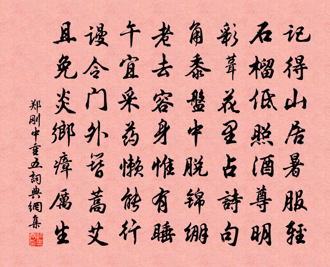 詩詞名句歷史字典書法欣賞書法字典國語詞典說文解字康熙字典古漢語字典標 題 作 者 詩 句 重五作者:鄭剛中 朝代:宋代重五原文記得山居暑服輕,石榴低照酒尊明。彩葺花里占詩句,角黍盤中脫錦繃。老去容身惟有睡,午宜採藥懶能行。謾令門外簪蒿艾,且免炎鄉瘴厲生。詩詞問答問:重五的作者是誰?答:鄭剛中問:重五寫於哪個朝代?答:宋代鄭剛中重五書法欣賞重五書法作品詩詞推薦和丁利用韻馮時行〔宋代〕末路初傾蓋,春風一繫舟。英姿森劍戟,餘論有春秋。時事朝暮別,年華日夜流。徒勞是州縣,東去勿遲留。別錦兒(及第後出京,別錦兒與蜀妓)韓偓〔唐代〕一尺紅綃一首詩,贈君相別兩相思。畫眉今日空留語,解佩他年更可期。臨去莫論交頸意,清歌休著斷腸詞。出門海仙花詩王禹偁〔宋代〕春憎窈窕教無子,天為妖嬈不與香。盡日含毫難比興,花中應是衛莊姜。雜劇·劉夫人慶賞五侯宴關漢卿〔元代〕楔子(沖末扮李嗣源領番卒子上,李嗣源雲)野管羌笛韻,英雄戰馬嘶。擂的是鏤金畫面鼓,打的是雲月皂雕旗。謝宣賜金襴釋慧開〔宋代〕不是雞足流傳,亦非黃梅分付。九得天上降來,千載臣僧一過。中興佛祖宗風,群魔悉皆驚怖。祝延聖壽無疆,志浪淘沙·寫夢龔自珍〔清代〕好夢最難留,吹過仙洲。尋思依樣到心頭。去也無蹤尋也慣,一桁紅樓。中有話綢繆,燈火簾鉤。是仙是幻是溫柔寄王江州梅堯臣〔宋代〕休嗟謫官去,山根勝窮邊。當職言無隱,他時事好還。何嘗聞堠火,唯是對煙煙。漸到盆城否,猶期信可傳。辛卯滿散天基節即事六首劉克莊〔宋代〕野衲云云祝聖躬,亦拈拂子演宗風。恨渠僻陋無聞見,不識光公與杲公。臨江仙劉克莊〔宋代〕年是日,寓海豐縣驛作。去歲越王台上飲,席間二客如龍。憑高弔古壯懷同。馬嘶千嶂暮,樂奏半天中。今歲三家探春有感二首張耒〔宋代〕出城但怪風光老,草色蒼茫柳色深。煙樹遠浮春縹緲,風光不動日陰沉。芳郊未厭縈紆人,美酒何妨取次斟。羸馬送趙君十絕汪莘〔宋代〕歸去苕溪理釣蓬,風清月白水精宮。青蓮居士爭閒得,時答天書一兩通。烽火韓愈〔唐代〕登高望烽火,誰謂塞塵飛。王城富且樂,曷不事光輝。勿言日已暮,相見恐行稀。願君熟念此,秉燭夜中歸。我歌卷末偶題三首鄭谷〔唐代〕一卷疏蕪一百篇,名成未敢暫忘筌。何如海日生殘夜,一句能令萬古傳。七歲侍行湖外去,岳陽樓上敢題詩。如今船過桐江懷郭聖與戴復古〔宋代〕只言君在桐江住,及到桐江不見君。日暮空山獨惆悵,不知又隔幾重雲。秀道者塔許尚〔宋代〕辛勤成雁塔,俄赴積薪焚。靜夜眈眈影,疑來護刻文。游誠之來廣西相從幾一年今當赴官九江極與之張栻〔宋代〕士學端成已,工夫要自程。聖門窺廣大,中德養和平。美玉資勤珏,良才詎小成。心期須後會,拭目更增明。自潯陽泛舟經明海①孟浩然〔唐代〕大江分九派,淼漫成水鄉。②舟子乘利涉,往來至潯陽。③因之泛五湖,流浪經三湘。④觀濤壯枚發,吊屈痛沉湘送聶之美攝尉韋城司馬光〔宋代〕徒勞已足倦,漂泊益恓惶。短劍無三尺,征衣共一囊。折腰從事馬,贊謁使君堂。並日屢承檄,無時不里糧。官曹見鶴吟白玉蟾〔宋代〕紙上畫仙掛古壁,朝朝暮暮被煙燻。泥塑鍾離木雕木,不見元皇大道君。近來塵世無丹訣,啞口道人俱不說。武夷春日使府寓懷二首薛能〔唐代〕一想流年百事驚,已拋漁父戴塵纓。青春背我堂堂去,白髮欺人故故生。道困古來應有分,詩傳身後亦何榮。誰憐名句推薦草草興亡休問,功名淚、欲盈掬。黃機《霜天曉角·儀真江上夜泊》 十年舊夢無尋處,幾度新春不在家。吳文英《思佳客·癸卯除夜》 同欲者相憎,同憂者相親。劉向《戰國策·中山·犀首立五王》 蕭條清萬里,瀚海寂無波。李白《塞上曲》 暮雨忽來鴻雁杳,莽關山、一派秋聲里。龔自珍《金縷曲·癸酉秋出都述懷有賦》 知之者不如行之者,行之者不如安之者。王通《中說·卷六·禮樂篇》 莫見長安行樂處,空令歲月易蹉跎。李頎《送魏萬之京》 冬夜兮陶陶,雨雪兮冥冥。王逸《九思》 操吳戈兮被犀甲,車錯轂兮短兵接。屈原《國殤》 恰同學少年,風華正茂;書生意氣,揮斥方遒。 * 《沁園春·長沙》