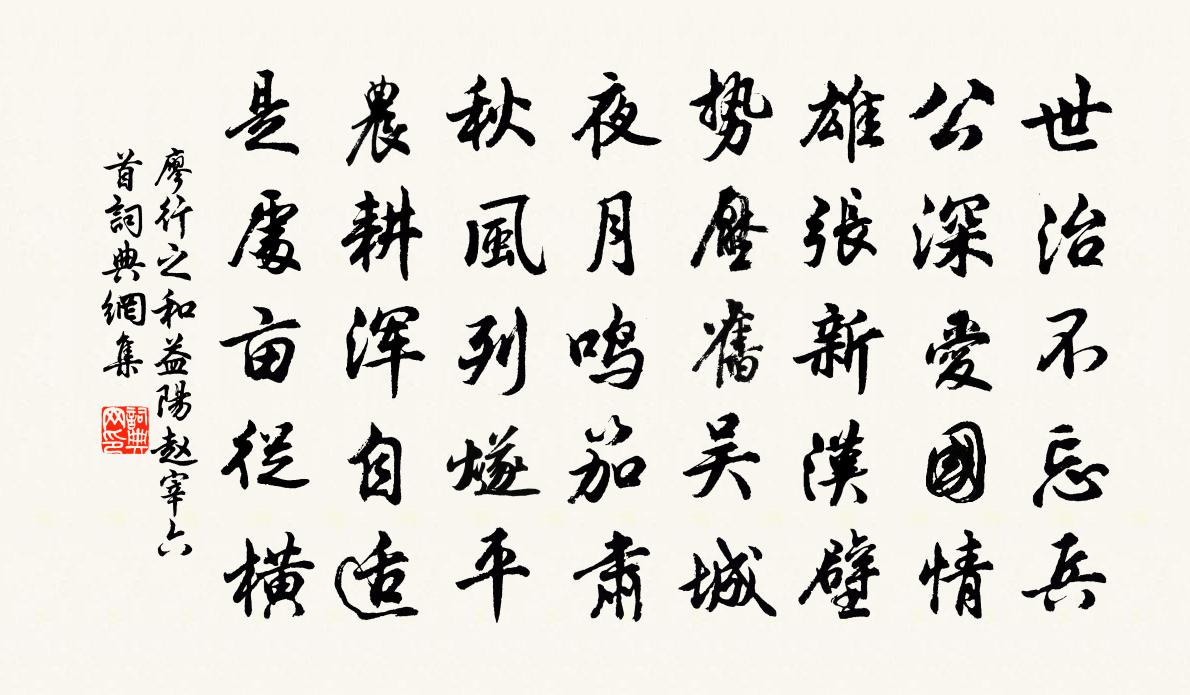 詩詞名句歷史字典書法欣賞書法字典國語詞典說文解字康熙字典古漢語字典標 題 作 者 詩 句 和益陽趙宰六首作者:廖行之 朝代:宋代和益陽趙宰六首原文世治不忘兵,公深愛國情。雄張新漢壁,勢壓舊吳城。夜月鳴笳肅,秋風列燧平。農耕渾自適,是處畝從橫。詩詞問答問:和益陽趙宰六首的作者是誰?答:廖行之問:和益陽趙宰六首寫於哪個朝代?答:宋代廖行之和益陽趙宰六首書法欣賞和益陽趙宰六首書法作品詩詞推薦休日與李端叔出城西孔武仲〔宋代〕荷葉欲漠漠,柳絮已飛飛。東風如車輪,日夜挽春暉。天郊多名園,曷不事鞍鞿。休日不暇沐,權門亞冠衣。嘉與立秋王鎡〔宋代〕西風吹縐碧紗衣,金井梧桐昨夜飛。自汲井花調藥罷,卻簪秋葉滿頭歸。李大夫招飲黃庭堅〔宋代〕欲遣吟人對好山,暮天和雨醉憑欄。座中雲氣侵人濕,砌下泉聲逼酒寒。紅燭圍棋生死急,清風揮塵笑談閒。更籌次韻蕃叟弟月下有感陳傅良〔宋代〕平原接翠微,修竹圍綠淨。乃於此中間,更以皓月映。佳人笑隱几,萬物獨我正。幸哉吾有母,侍飲得瓶罄。次韻答胡季履復荊門故宅項安世〔宋代〕鏡里枯疏雪點毛,筆端凌亂雨浮膏。侵疆稍稍龜陰復,作堵渠渠鴻雁勞。喬木有孫關國體,故基能築是人豪。自言偈頌三十首釋印肅〔宋代〕顯老明禪,入理深淵。文殊為體,妙用普賢。鳳山得旨,妙契南源。三株樹下,坐斷雲煙。金剛作眼,鼻孔遼天。宋喬年真贊黃庭堅〔宋代〕士之坎壈,以其智多。因坎壈以為師,用其多以見己。相遭於功名之會,圖像麒麟。獨行於寂寞之濱,照影溪壑。答松源和尚舉竹篦話頌釋淨全〔宋代〕黑漆竹篦握起,迅雷不及掩耳。德山臨濟茫然,懵底如何插嘴。相見歡向子諲〔宋代〕桃源深閉春風。信難通。流水落花餘恨、幾時窮。水無定。花有盡。會相逢。可是人生長在、別離中。新柳楊萬里〔宋代〕柳條百尺拂銀塘,且莫深青只淺黃。未必柳條能蘸水,水中柳影引他長。為修樗作歌釋文珦〔宋代〕我愛岩間古樗櫟,蔽日參雲過千尺。樵蘇來往作陰涼,不為風霜變顏色。匠氏入林持斧斤,材無大小皆選掄。豫章杭橋道間二首趙蕃〔宋代〕屢起瞻雲物,頻成聽雨聲。與憂明所歷,鹹謂曉當晴。一水通高下,千山雜晦明。逢人問前路,為報已堪行。慜禪師李復〔宋代〕湘南衡缶水,分得一支來。宴坐秋峰靜,澄心夜月開。清風生虎錫,驚電護龍杯。昨夜飛香動,山神禮寶台。醉中別李元泰黃公度〔宋代〕同雲幕幕暗前山,急雨颼颼釀小寒。桃花欲開尚羞澀,梅梢已老半闌珊。話別一尊休草草,丈夫相識期歲老。綈袍喜定號和禹玉內翰歐陽修〔宋代〕衡鑑◇叨選,英豪此所鍾。古今參雅鄭,善惡雜◇共。揮翰飄飄思,懷奇落落胸。披文驚可畏,奏下始開封。但喜見梅雜興陸夢發〔宋代〕人間誰是識梅真,棄實求花後世心。何似只如三代日,分甘投老萬山深。寄來陸凱渾多事,說到林逋亦費吟。耿耿題王逸老書飲中八仙歌唐珙〔元代〕前朝書法孰為盛,蘇黃米蔡得其正。法度難以晉魏論,氣象可與歐虞並。宣和金書類臣稷,筋骨通神工瘦硬。大江新竹俞桂〔宋代〕傍牆穿過鄰家竹,愛護新篁數十竿。剪伐莫令童僕輩,老夫日日要來看。次韻謝尉公靖同游北園五首韓維〔宋代〕鑿堤要水近,依竹任逕斜。殘葉時委地,晚筍猶穿沙。不知人間世,況論空中花。卻思城市喧,閣閣鳴群蛙。官舍苦雨黃人傑〔宋代〕漫空數日雨傾盆,老屋淋漓瓦縫穿。七月不虛為巧月,今年賴得是豐年。泥塗滑滑妨行客,煙隴陰陰礙種田。我欲名句推薦為世用者,百篇無害;不為用者,一章無補。王充《論衡·卷三十·自紀篇》 不似當時,小橋沖雨,幽恨兩人知。周邦彥《少年游·朝雲漠漠散輕絲》 留連光景惜朱顏,黃昏獨倚闌。李煜《阮郎歸·呈鄭王十二弟》 或飲食,或坐走。長者先,幼者後。李毓秀《弟子規·出則弟》 青山依舊在,幾度夕陽紅。楊慎《臨江仙·滾滾長江東逝水》 拜華星之墜幾,約明月之浮槎。文天祥《回董提舉中秋請宴啟》 雲收雨過波添,樓高水冷瓜甜,綠樹陰垂畫檐。白樸《天淨沙·夏》 香滅繡帷人寂寂,倚檻無言愁思遠。顧敻《玉樓春·柳映玉樓春日晚》 繡袂捧琴兮,登君子堂。貫休《善哉行·傷古曲無知音》 反古者未必可非,循禮者未足多是也。商鞅《商君書·更法》