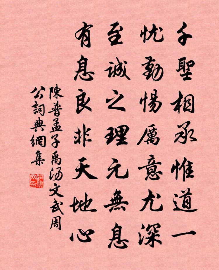 詩詞名句歷史字典書法欣賞書法字典國語詞典說文解字康熙字典古漢語字典標 題 作 者 詩 句 孟子禹湯文武周公作者:陳普 朝代:宋代孟子禹湯文武周公原文千聖相承惟道一,憂勤惕厲意尤深。至誠之理元無息,有息良非天地心。詩詞問答問:孟子禹湯文武周公的作者是誰?答:陳普問:孟子禹湯文武周公寫於哪個朝代?答:宋代陳普孟子禹湯文武周公書法欣賞孟子禹湯文武周公書法作品詩詞推薦太倉過王文肅舊第閻爾梅〔清代〕婁江橋畔采芙蓉,俯仰金華舊鼎鍾。怪道主人常避客,應慚無淚哭神宗。柳藏經二絕句柳藏經〔唐代〕寒水停園沼,秋池滿敗荷。杜門窮典籍,所得事今多。誰謂三才貴,余觀萬化同。心虛嫌蠹食,年老怯狂風。代人贈別趙嘏〔唐代〕月自斜窗夢自驚,衷腸中有萬愁生。清猿處處三聲盡,碧落悠悠一水橫。平子定情詞麗絕,詩人匪石誓分明。會須【雙調】快活年盍西村〔元代〕閒來乘興訪漁樵,尋林泉故交。開懷暢飲兩三瓢,只願身安樂。笑了重還笑,沉醉倒。戊辰閏正月書懷釋行海〔宋代〕一年風景兩逢新,老去情懷最惜春。未有鶬鶊傳好語,豈無蛺蝶報芳辰。花林淑氣蒸香藹,柳岸遊絲惹麴塵。今日明發生米市、西林寺,進退格楊萬里〔宋代〕貪睡能無起,挑燈強未殘。舂聲忙野店,月色澹柴門。又蹈黃塵路,前追紅葉村。秋衣那敢薄,病骨自難溫。跋圓覺經釋祖欽〔宋代〕大虛圓滿,妙覺混融。如春化物,和而不同,力不在東風。水調歌頭·隱括杜牧之齊山詩朱熹〔宋代〕江水侵雲影,鴻雁欲南飛。攜壺結客,何處空翠渺煙霏。塵世難逢一笑,況有紫萸 * ,堪插滿頭歸。風景今朝是縣丞廳即事王建〔唐代〕宮殿半山上,人家高下居。古廳眠受魘,老吏語多虛。雨水洗荒竹,溪沙填廢渠。聖朝收外府,皆自九天除。繳回友人轉示詩卷張煒〔宋代〕拾得驪珠不秘藏,來尋識眼共平章。臨風一盼留書架,夜夜豪光射竹房。官滿將見舍弟強至〔宋代〕三歲別吾弟,今歸心始降。從茲得安寢,無夢過重江。預驗鵲音喜,行看雁影雙。西湖猶可泛,酤酒市羊羫。九日病中泊舟召伯堰強至〔宋代〕采采南山菊,還應滿故園。全家泊孤埭,多病負清樽。木末秋聲老,天涯雨氣昏。鄉關吟望外,愁淚有雙痕。荷葉浦中葛天民〔宋代〕急雨捎荷分外奇,珠璣狼籍錦紛披。下塘六月關心處,西塞扁舟入手時。卻傍青蘆深處宿,還思白石去年詩。平生念奴嬌張孝祥〔宋代〕星沙初下,望重湖遠水,長雲漠漠。一葉扁舟誰念我,今日天涯飄泊。平楚南來,大江東去,處處風波惡。吳中何菩薩蠻(晉臣張菩提葉燈,席上賦)辛棄疾〔宋代〕看燈元是菩提葉。依然曾說菩提法。法似一燈明。須叟千萬燈。燈邊花更滿。誰把空花散。說與病維摩。而今天女曾裘父寄二絕並呈審知一再次韻前以寄曾後寄趙蕃〔宋代〕紛紛競說杜陵翁,此老真能數百容。我亦幾同葉公限,駭然今日見真龍。四怨三愁五情詩十二首。四情曹鄴〔唐代〕檳榔自無柯,椰葉自無陰。常羨庭邊竹,生筍高於林。折楊柳楊炯〔唐代〕邊地遙無極,征人去不還。秋容凋翠羽,別淚損紅顏。望斷流星驛,心馳明月關。藁砧何處在,楊柳自堪攀。題田道者院修睦〔唐代〕入門空寂寂,真箇出家兒。有行鬼不見,無心人謂痴。古岩寒柏對,流水落花隨。欲別一何懶,相從所恨遲。令僧把衲釋重顯〔宋代〕七八既難,直須教透。來不在前,去不在後。粗細自看,緊緩相就。一日圓成呈似君,想得諸方未知有。名句推薦日照香爐生紫煙,遙看瀑布掛前川。李白《望廬山瀑布》 徘徊將何見?憂思獨傷心。阮籍《詠懷八十二首·其一》 如今但暮雨,蜂愁蝶恨,小窗閒對芭蕉展。呂渭老《薄倖·青樓春晚》 願妾身為紅菡萏。年年生在秋江上。歐陽修《漁家傲·近日門前溪水漲》 花褪殘紅青杏小。燕子飛時,綠水人家繞。蘇軾《蝶戀花·春景》 手捻香箋憶小蓮。欲將遺恨倩誰傳。晏幾道《鷓鴣天·手捻香箋憶小蓮》 白骨露於野,千里無雞鳴。曹操《蒿里行》 塵中見月心亦閒,況是清秋仙府間。劉禹錫《八月十五夜桃源玩月》 昔人已乘黃鶴去,此地空餘黃鶴樓。崔顥《黃鶴樓 / 登黃鶴樓》 長記海棠開後,正傷春時節李清照《好事近·風定落花深》
