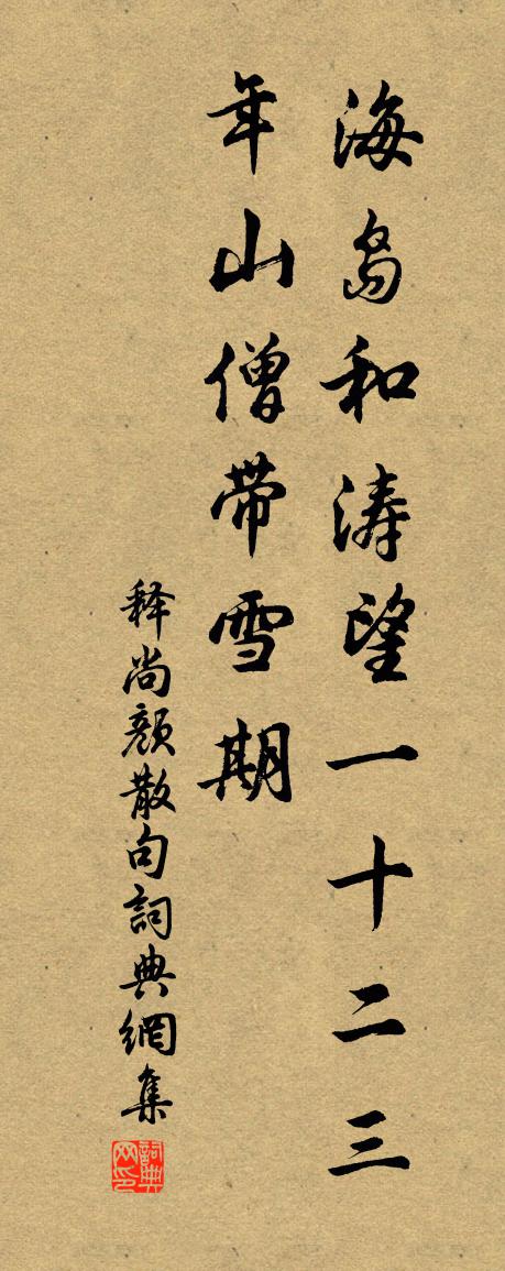 詩詞名句歷史字典書法欣賞書法字典國語詞典說文解字康熙字典古漢語字典標 題 作 者 詩 句 句作者:釋尚顏 朝代:宋代句原文海島和濤望。一十二三年。山僧帶雪期。詩詞問答問:句的作者是誰?答:釋尚顏問:句寫於哪個朝代?答:宋代釋尚顏句書法欣賞句書法作品詩詞推薦和虞退夫韻魏了翁〔宋代〕牛女河邊兩夾持,前瞻箕斗後虛危。經星不動元如此,自是人閒空好奇。宣赦張舜民〔宋代〕擊鼓填街道,傳聲過水濱。國嚴三歲祀,恩洗萬方春。舟檝隨南斗,衣冠拱北辰。嶺南並嶺北。多少望歸人。檐雀楊發〔唐代〕弱羽怯孤飛,投檐幸所依。銜環唯報德,賀廈本知歸。紅觜休爭顧,丹心自識機。從來攀鳳足,生死戀光輝。祝英台近佚名〔宋代〕剪酴醿、移紅藥,深院教鸚鵡。消遣宿酲,敧枕熏沈炷。自從載酒西湖,探梅南浦,久不見、雪兒歌舞。恨無據。高竹八首邵雍〔宋代〕高竹已可愛,況在垂楊下。幽人無軒冕,得此自可詫。枉尺既不能,括囊又何謝。賈生若知此,慟哭亦自罷。禪人並化主寫真求贊釋正覺〔宋代〕深深沉沉,心不見心。理亡出沒,妙超古今。錦機絲度密無縫,玉澗玉流寒有音。友約寒山拾得子,拍手一笑舒胸溪上謠林希逸〔宋代〕溪上行吟山里應,山邊閒步溪間影。每應人語識山聲,卻向溪光見人性。溪流自漱溪不喧,山鳥相呼山愈靜。野雞秋夕羅公升〔宋代〕客散燭亦盡,明月共寂寥。三生東華夢,歲晚依曾寮。秋宵豈不涼,客心自如燒。循檐耿無寐,顧影自蕭蕭。滿江紅劉克莊〔宋代〕三黜歸來,飯疏食、渾無慍色。中年後、家如旅舍,身如行客。軒冕豈非疣贅具,煙霞已是膏盲脈。有些兒、隙地亨杞下第作詩示之司馬光〔宋代〕清白君家舊,文章時態新。何妨偶蹉跌,未必遂沉淪。莫嘆科名晚,惟憂道誼貧。進修專在已,得失盡由人。孝友送施州單員外徐鉉〔唐代〕精金百鍊始知難,何似仙枝兩度攀。名逐鳳書歸故里,身從鳥道入巴山。詔宣遠俗皇恩厚,惠洽齊民利刃閒。珍重野芳亭書壁張鎡〔宋代〕山向林間出,船從草外撐。行來風數刻,坐待月三更。政自安閒散,誰能管愛憎。新功喜今夏,陰滿蒲萄棚。賀秀岩李工侍七首程公許〔宋代〕雙檜蟋極不記年,盡饒紅紫競春妍。箯輿來往清苕岸,坡潁那能此樂全。散天花(次師能韻)舒亶〔宋代〕雲斷長空葉落秋。寒江煙浪靜,月隨舟。西風偏解送離愁。聲聲南去雁,下汀洲。無奈多情去復留。驪歌齊唱罷,句諶祜〔宋代〕雁過大江風帖帖,雅啼荒樹日悠悠。琴鶴二詩送賈治安同知 其二王冕〔元代〕宰宰華表鶴,古質清且閒。曠哉萬里懷,皓月同蹁躚。飢琢芝田春,渴飲瑤池泉。一鳴九皋遠,夢澆瓊華寒。下視又七言司馬光〔宋代〕聞道山家門鎮開,獨驅瘦馬出塵埃。白雲明月先無約,何事今宵亦此來。中秋大風雨五絕劉克莊〔宋代〕□□□□□,冰輪□□□。□□□□妒,不管素娥愁。贈南陵李主簿曹松〔唐代〕外邑官同隱,寧勞短吏趨。看雲情自足,愛酒逸應無。簟席彈棋子,衣裳惹印朱。仍聞陂水近,亦擬掉菰蒲。西施(三之二·仙呂調)柳永〔宋代〕柳街燈市好花多。盡讓美瓊娥。萬嬌千媚,的的在層波。取次梳妝,自有天然態,愛淺畫雙蛾。斷腸最是金閨客,名句推薦為政以德,譬如北辰,居其所而眾星共之。孔子弟子《論語·為政篇》 折花逢驛使,寄與隴頭人。陸凱《贈范曄詩》 微雨眾卉新,一雷驚蟄始。韋應物《觀田家》 塵緣一點,回首西風又陳跡。吳文英《六么令·夷則宮七夕》 君自故鄉來,應知故鄉事。王維《雜詩三首·其二》 地冷葉先盡,谷寒雲不行。李白《冬日歸舊山》 但從今、記取楚樓風,裴台月。辛棄疾《滿江紅·漢水東流》 學而時習之,不亦說乎?佚名《論語十則》 綠竹含新粉,紅蓮落故衣。王維《山居即事》 酒肆人間世,琴台日暮雲。杜甫《琴台》