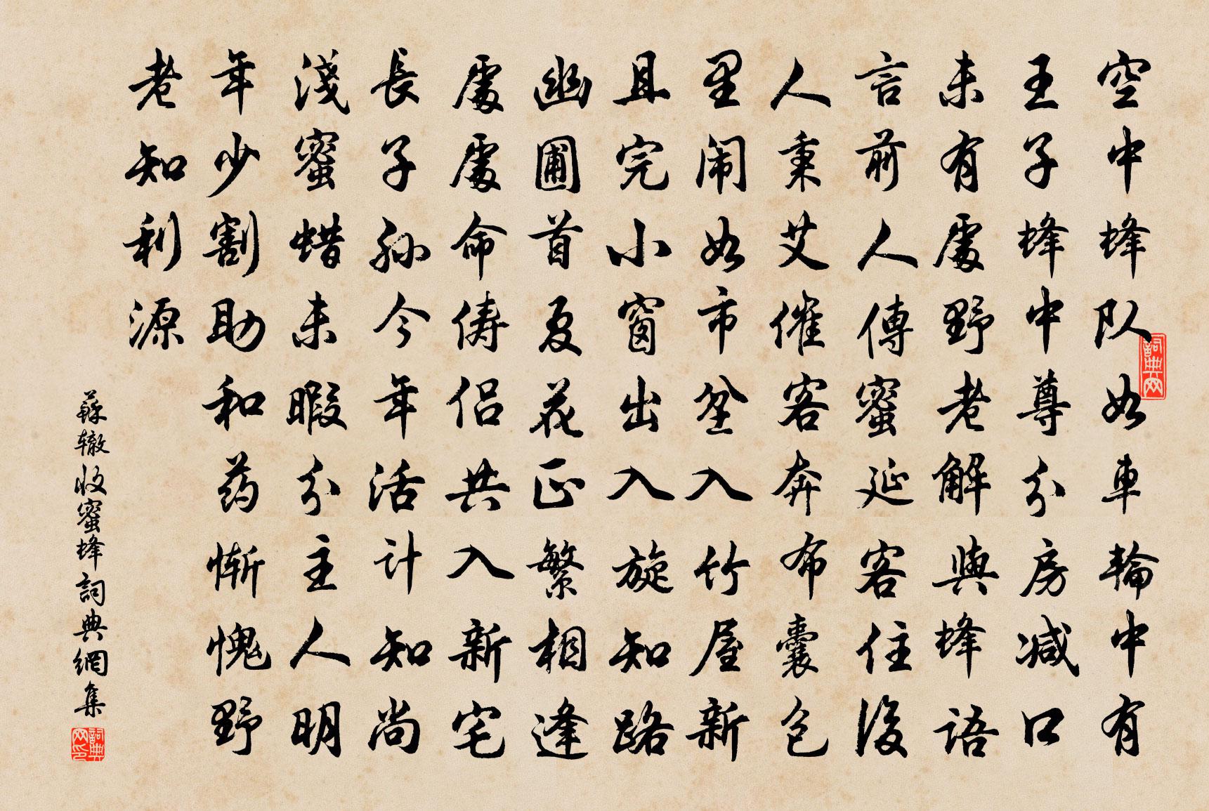 空中蜂隊如車輪,中有王子蜂中尊。分房減口未有處,野老解與蜂語言。