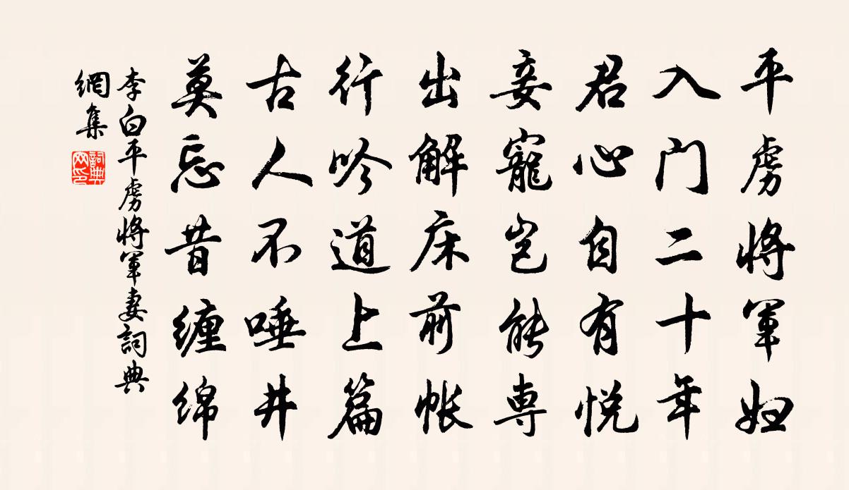 平虜將軍婦,入門二十年。君心自有悅,妾寵豈能專。