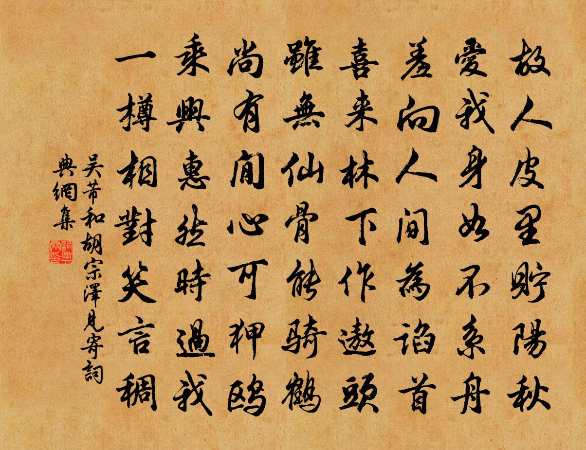 詩詞名句歷史字典書法欣賞書法字典國語詞典說文解字康熙字典古漢語字典標 題 作 者 詩 句 和胡宗澤見寄作者:吳芾 朝代:宋代和胡宗澤見寄原文故人1*1皮里貯陽秋,愛我身如不繫舟。羞向人間為諂首,喜來林下作遨頭。雖無仙骨能騎鶴,尚有閒心可狎鷗。乘興惠然時過我,一樽相對笑言稠。詩詞問答問:和胡宗澤見寄的作者是誰?答:吳芾問:和胡宗澤見寄寫於哪個朝代?答:宋代吳芾和胡宗澤見寄書法欣賞和胡宗澤見寄書法作品詩詞推薦送劉散員同賦陳思王詩得好鳥鳴高枝劉斌〔唐代〕春林已自好,時鳥復和鳴。枝交難奮翼,谷靜易流聲。間關才得性,矰繳遽相驚。安知背飛遠,拂霧獨晨征。對酒歌陳襄〔宋代〕我聞靈鰲萬丈居海宮,峨峨頭戴三神峰。匣有神刀刃如雪,便欲鱠之雕俎中。又聞銀濤一派天上來,寒光湛湛浸瑤偈頌二十二首釋妙倫〔宋代〕雪山層層,雪潤冷冷。瞿曇過去久矣,今宵誰睹明星。奇哉,低聲,恐成妄語誑眾生。送方辰孫赴崇安尉劉克莊〔宋代〕遁翁精舍久荒涼,君去應先炷瓣香。疇昔二難賢可並,即今一個弱堪傷。時平多有農耕野,官好渾無卒下鄉。莫作次韻酬朱昌叔五首王安石〔宋代〕烏榜登臨興未休,共言何許更消憂。聯裾蕭寺尋真覺,方駕孫陵吊仲謀。語罷每開歡笑口,詩來仍掉苦吟頭。已知聽琴張玉孃〔宋代〕竹外結枯桐,琅琅生松風。聽來還自惜,坐對獨花紅。哭柏岩和尚賈島〔唐代〕苔覆石床新,師曾占幾春。寫留行道影,焚卻坐禪身。塔院關松雪,經房鎖隙塵。自嫌雙淚下,不是解空人。和張政仲見寄三絕劉學箕〔宋代〕故人別去復一月,三絕詩章寄我來。我有青州四從事,已令挈至待君開。秦家行佚名〔宋代〕彗孛飛光照天地,九天瓦裂屯冤氣。鬼哭聲聲怨趙高,宮花滴盡扶蘇淚。禍起蕭牆不知戢,羽書催築長城急。劍上天竺分韻得芳字朱繼芳〔宋代〕縹渺白雲鄉,天風吹曉涼。人尋水源至,路入樹阻長。晝靜聞晴哢,春余拾澗芳。余心忽有得,欲語又還忘。即席次必強六絕句李新〔宋代〕暖霧團雲晚氣酣,柅車游女密於蠶。錦城行樂忘歸客,家在魚鳧碧水南。重遊梵行院賀鑄〔宋代〕曉渡南岡五里松,精廬未見已聞鍾。門前拂地垂楊柳,掃淨秋來過馬蹤。詠史詩滹沱河胡曾〔唐代〕光武經營業未興,王郎兵革正憑陵。須知後漢功臣力,不及滹沱一片冰。贈實老陳造〔宋代〕幾時風色不飛沙,再遣齋魚為客撾。塵里槐安空夢境,眼中優缽忽天花。玄譚正用蠲憂患,白飯胡寧當旨嘉。南去約黃成之觀瓊花予不及從以詩代簡方岳〔宋代〕倦遊久已厭紛華,欲問春蓑未有涯。宇宙一杯詩潦草,江湖十載眼昏花。恨身不及隨陽雁,將毋何如反哺鴉。家在登郡樓書事劉兼〔唐代〕偶奉綸書蒞旭川,郡樓嘉致盡依然。松奇支鳥道雲藏寺,月滿漁舟水浸天。望帝古祠花簇簇,錦城歸路草芊芊。有鸂鶒李中〔唐代〕流品是鴛鴦,翻飛雲水鄉。風高離極浦,煙暝下方塘。比鷺行藏別,穿荷羽翼香。雙雙浴輕浪,誰見在瀟湘。過銅山掘黃精詩鮑照〔南北朝〕土昉閟中經。水芝鞱內策。寶餌緩童年。命藥駐衰歷。矧蓄終古情。重拾煙霧跡。羊角棲斷雲。榼口流隘石。銅溪奉答祖印喜雪二頌韓維〔宋代〕久旱終能不失時,田家喜氣吐虹霓。龐公昔日曾垂語,資福今朝更指迷。閒意白居易〔唐代〕不爭榮耀任沉淪,日與時疏共道親。北省朋僚音信斷,東林長老往還頻。病停夜食閒如社,慵擁朝裘暖似春。漸老名句推薦遠看山有色,近聽水無聲王維《畫》 所作福德不應貪著。鳩摩羅什譯《金剛經·不受不貪》 出家人莫說在家話。吳承恩《西遊記·第三十二回》 好夢欲成還又覺,綠窗但覺鶯啼曉。施耐庵《蝶戀花·一別家山音信杳》 去來江口守空船,繞船月明江水寒。白居易《琵琶行 / 琵琶引》 物格而後知至,知至而後意誠,意誠而後心正,心正而後身修,身修而後家齊,家齊而後國治,國治而後天下平。曾子《禮記·大學》 江流天地外,山色有無中。王維《漢江臨泛 / 漢江臨眺》 斜風細雨不須歸。蘇軾《浣溪沙·漁父》 他鄉共酌金花酒,萬里同悲鴻雁天。盧照鄰《九月九日玄武山旅眺》 自知者不怨人,知命者不怨天。荀子《荀子·榮辱》