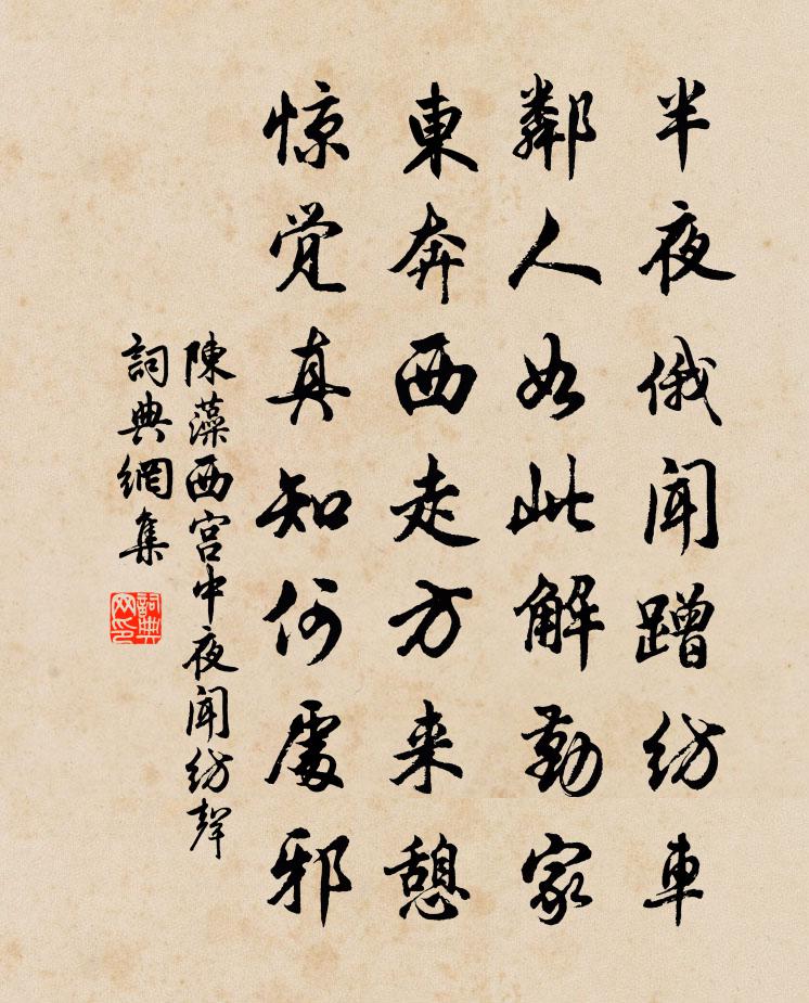 詩詞名句歷史字典書法欣賞書法字典國語詞典說文解字康熙字典古漢語字典標 題 作 者 詩 句 西宮中夜聞紡聲作者:陳藻 朝代:宋代西宮中夜聞紡聲原文半夜俄聞蹭紡車,鄰人如此解勤家。東奔西走方來憩,驚覺真知何處邪。詩詞問答問:西宮中夜聞紡聲的作者是誰?答:陳藻問:西宮中夜聞紡聲寫於哪個朝代?答:宋代陳藻西宮中夜聞紡聲書法欣賞西宮中夜聞紡聲書法作品詩詞推薦三月晦日閒步西園楊萬里〔宋代〕嶺南春去盡從伊,元自無花可得飛。只有草花偏稱意,強留蝴蝶不教歸。疊題烏江亭王安石〔宋代〕百戰疲勞壯士哀,中原一敗勢難回。江東子弟今雖在,肯與君王卷土來。柬張簿二首劉宰〔宋代〕細肋朝來正割鮮,瓦瓶先臘湛寒泉。香棲枳棘寧多日,斷送橫飛上九天。次韻王聖傳自嘆陳著〔宋代〕道義相從自一宗,世人擾擾等雞蟲。桂坊素襲多文富,橘隱何憂五鬼窮。寬以平田為日用,笑將逆境付天公。何時常山道中陳文蔚〔宋代〕路勢弓腰轉,湖光鑒面開。稻田春事給,村碓晚舂催。問宿尚十里,與誰同一杯。自憐今日首,頻作望鄉回。投宿寶覺精舍釋紹嵩〔宋代〕驛路向山郭,江蘺滿意馨。遠雲收海雨,獨樹隱沙汀。桑椹累累紫,杉栽處處青。夜投寶覺寺,重上竹西亭。宿小粉村楊萬里〔宋代〕暮宿溪邊小粉村,一峰如筆正當門。看來山色元無粉,拂殺濃藍淺黛痕。聽蛙方君作八老詩效顰各賦一首內三題餘四十劉克莊〔宋代〕災禍妖祥判立談,白頭猶舞茜衣衫。賣符效速拋農業,治崇年深轉法銜。三老賽冬為殺豕,四婆開歲倩祈蠶。暮歸和同舍對菊無酒司馬光〔宋代〕黃花倚秋色,曄曄為誰開。更使窺殘榼,空令洗舊杯。嗅香行繚繞,撚蕊立徘徊。盡日柴門外,白衣來不來。薄游嘆方回〔宋代〕薄游庾公樓,俯仰三十載。觸目昔人非,惟有廬山在。巴峽挾洞庭,彭蠡在滄海。奔濤何時休,故道終不改。翩舟讀史偶題陳宓〔宋代〕長孺濮陽人,十世士於衛。矯制發倉廩,河內被恩霈。辭令守東海,臥閣動經歲。田蚡與衛青,未嘗屈其貴。張湯看花回(越調)周邦彥〔宋代〕秀色芳容明眸,就中奇絕。細看艷波欲溜,最可惜微重,紅綃輕帖。勻朱傅粉,幾為嚴妝時涴睫。因個甚、底死嗔偶書王冕〔元代〕今晨花好風雨,花濕雲四邊花馳。落花爛作土,潦水積成池。疲民在塗炭,朝暮苦啼飢。況兼時氣乖,好花生瘡痍送沈虞卿秘監將漕江東二首洪邁〔宋代〕天上圖書群玉府,仙晨日月道家仙。行行合在煙霄地,去去猶參論譔班。使者繡衣看更好,從官華橐未應慳。褰帷過屈平昭君故宅張嵲〔宋代〕夔州之山皆入雲,夔女寢陋男不文。山川歷歷應如舊,昭君屈平猶荒村。三百篇後無繼者,始作離騷紹風雅。君門宿分水趙蕃〔宋代〕夜枕疑為雨,曉檐還見星。驟聞成摵摵,熟聽乃泠泠。信矣無不下,況於高建瓴。此行非絕遠,楚粵自相因。寄南昌故人黃存之宋謙甫二首戴復古〔宋代〕謙甫多才思,存之重誼襟。一書愁話別,千里夢相尋。南浦扁舟上,東湖萬柳陰。舊時行樂處,何事不關心。橫塘道中何昌弼〔宋代〕一舸凌風去,縈紆幾度村。水清魚引子,田美稻生孫。山近塵埃遠,秋晴枕席溫。悠悠迷處所,疑是武陵源。四祖贊釋道沖〔宋代〕破頭峰頂掩禪關,三卻天書不下山。究竟全無些氣息,有何面目見龍顏。醉落魄(次韻斯遠)韓淲〔宋代〕風高木落。壯心萬里空回薄。振衣待把塵埃濯。聲里斜陽,孤起戍樓角。人生誰會誰為錯。年來但覺多離索。黃花名句推薦半盞屠蘇猶未舉,燈前小草寫桃符。陸游《除夜雪》 劍花寒,夜坐歸心壯,又是他鄉。張可久《滿庭芳·客中九日》 峨眉山月半輪秋,影入平羌江水流。李白《峨眉山月歌》 落日塞塵起,胡騎獵清秋。辛棄疾《水調歌頭·舟次揚州和人韻》 明月,明月,胡笳一聲愁絕。戴叔倫《轉應曲·邊草》 虢國夫人承主恩,平明騎馬入宮門。張祜《集靈台·其二》 舊山松竹老,阻歸程。岳飛《小重山·昨夜寒蛩不住鳴》 對此懷素心,千里共明月德隱《新秋晚眺》 絕聖棄智,民利百倍;絕仁棄義,民復孝慈;絕巧棄利,盜賊無有。老子《老子·道經·第十九章》 秋光一片,問蒼蒼桂影,其中何物?趙秉文《大江東去·用東坡先生韻》