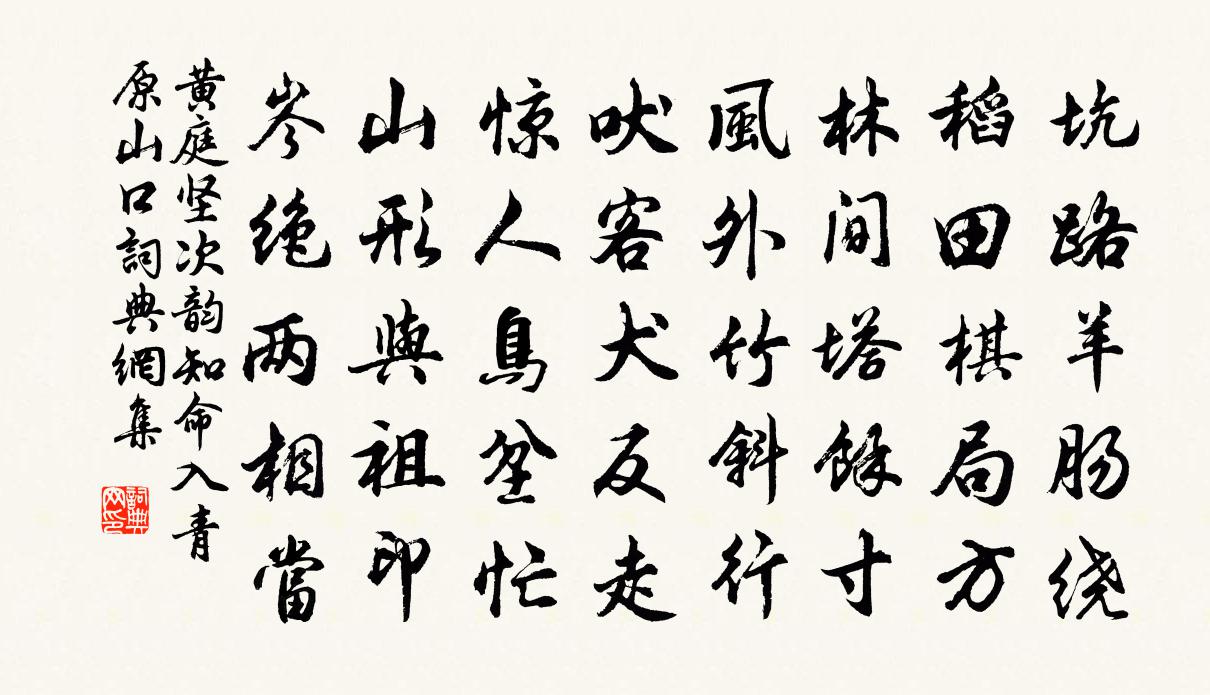 坑路羊腸繞,稻田棋局方。林間塔余寸,風外竹斜行。