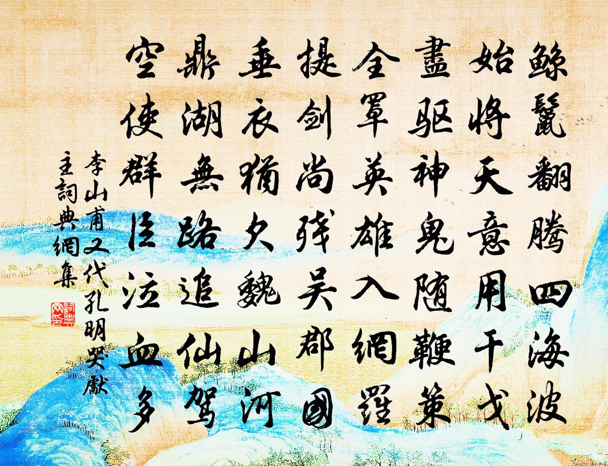 詩詞名句歷史字典書法欣賞書法字典國語詞典說文解字康熙字典古漢語字典標 題 作 者 詩 句 又代孔明哭先主作者:李山甫 朝代:唐代又代孔明哭先主原文鯨鬣翻騰四海波,始將天意用干戈。盡驅神鬼隨鞭策,全罩英雄入網羅。提劍尚殘吳郡國,垂衣猶欠魏山河。鼎湖無路追仙駕,空使群臣泣血多。詩詞問答問:又代孔明哭先主的作者是誰?答:李山甫問:又代孔明哭先主寫於哪個朝代?答:唐代問:又代孔明哭先主是什麼體裁?答:七律李山甫又代孔明哭先主書法欣賞又代孔明哭先主書法作品注釋全唐詩:卷643-15詩詞推薦過鼓鳴林小雨二首楊萬里〔宋代〕淅淅船篷雨點聲,疏疏江面縠紋生。石峰鬥起三千丈,身在假山園裡行。送王校書往清源徐夤〔唐代〕南國賢侯待德風,長途仍借九花驄。清歌早貫驪龍頷,丹桂曾攀玉兔宮。楊柳堤邊梅雨熟,鷓鴣聲里麥田空。吟詩還赴蜀中貽示京雖游好盧照鄰〔唐代〕樊宿花初滿,迂台柳向飛。如何正此日,還望昔多違。悵別鳳期阻,將乖雲會稀。斂襖辭丹悶,懸旗涉翠微。野禽題薦福寺楊萬里〔宋代〕千山底里著樓台,半夜松風萬岳哀。曉起巡檐看題壁,雨聲一片隔林來。送周畏知二首張栻〔宋代〕半世功名誤,蒼顏幕府游。文辭追楚些,得失付陽秋。薦牘文交上,衡門豈重留。青雲看穩去,快處一回眸。劭農篇楊維楨〔元代〕今日當假我,縣守初出郭。出郭到誰家?田父有新約。桑陰抽扊扅,石旑度略彴。田父喜我來,釃酒出杯杓。招徠題山水扇陳深〔宋代〕江上屢峰擁翠螺,人煙隱隱見嚴阿。泊舟二子登平陸,遮莫風波奈爾何。讀曲歌九首佚名〔南北朝〕其一柳樹得春風,一低復一昂。誰能空相憶,獨眠度三陽。其二折楊柳。百鳥啼園林,道歡不離口。其三逋髮不可戊辰閏正月書懷釋行海〔宋代〕一年風景兩逢新,老去情懷最惜春。未有鶬鶊傳好語,豈無蛺蝶報芳辰。花林淑氣蒸香藹,柳岸遊絲惹麴塵。今日句王隨〔宋代〕地僻無來客,庭閒自落花。滿庭芳 授記定庵李道純〔元代〕學佛學仙,參禪窮理,不離玄牝中間。可憐迷謬,往往□相瞞。一味尋枝摘葉,徒坐破、幾個 * 。堪傷處,外邊次韻子濟兄送行李洪〔宋代〕春草年年愁望勻,鴒原鼎足嘆離分。惡詩恨別江南社,駑馬慚辭冀北群。細雨催行將食冷,片帆歸省待風薰。贈言訪香山松源和尚釋梵琮〔宋代〕率庵自笑風流甚,醉後何須苦戀杯。十字路頭荒草店,引他來往兩三回。歌張衡〔兩漢〕浩浩陽春發。楊柳何依依。百鳥自南歸。翱翔萃我枝。賀迤舍人新入西掖王禹偁〔宋代〕早折蟾宮第一枝,綸闈恩命苦何遲。久為俗吏殊無味,合掌王言亦有時。好繼忠州文最盛,應嫌長慶格猶卑。他年武陵春(禁中元夕)曹勛〔宋代〕元夕晴和中禁好,梅影玉闌乾。峭窄春衫試嫩寒。金翠會群仙。移下一天星斗璨,喜色動宸顏。行樂風光莫放閒。支提禪寺鄭鬲〔宋代〕舊錫千峰里,空門壯大觀。雨餘雙屐冷,風杪一燈寒。蝸篆團真偈,龍沙絕野乾。婆娑參佛果,登眺已忘餐。贈友山二侄許必勝〔宋代〕聞道春來解問經,整衣矩步學趨庭。雨余應惜階前蟻,月落休輕案上螢。自笑顛毛容我白,且留衰眼為伊青。熟精洞霄宮釋文珦〔宋代〕山勢逶迤九鎖分,洞天終自異人群。君王在昔曾游幸,故老猶今述見聞。瀑濺鶴衣明似雪,氣蒸龍穴暗成雲。夢回游洞霄得鄉友道士鄧君德清話因成古語釋自彰〔宋代〕亂山倚伏龍蛇蟠,蒼藤古木門徑寒。蕊宮潭潭列萬礎,碧樓朱戶參雲端。吾聞上界足官府,謫下名山作仙侶。我來名句推薦人皆可罪,罪人須定其人。來俊臣《羅織經·問罪卷第十》 野竹分青靄,飛泉掛碧峰。李白《訪戴天山道士不遇》 晴雲滿戶團傾蓋,秋水浮階溜決渠。杜甫《柏學士茅屋》 秋送新鴻哀破國,晝行飢虎齧空林。鄭思肖《二礪》 不看僧面看佛面。吳承恩《西遊記·第三十一回》 惟天地萬物父母,惟人萬物之靈。佚名《尚書·周書·泰誓》 悲歡離合總無情。一任階前、點滴到天明。蔣捷《虞美人·聽雨》 澹泊之守,須從穠艷場中試來;鎮定之操,還向紛紜境上勘過。陳繼儒《小窗幽記·集醒篇》 辭君向天姥,拂石臥秋霜。李白《別儲邕之剡中》 無情最是台城柳,依舊煙籠十里堤。韋莊《台城》