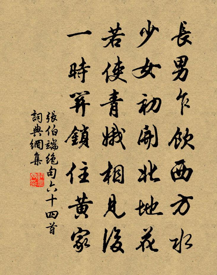 詩詞名句歷史字典書法欣賞書法字典國語詞典說文解字康熙字典古漢語字典標 題 作 者 詩 句 絕句六十四首作者:張伯端 朝代:宋代絕句六十四首原文長男乍飲西方水,少女初開北地花。若使青娥相見後,一時關鎖住黃家。詩詞問答問:絕句六十四首的作者是誰?答:張伯端問:絕句六十四首寫於哪個朝代?答:宋代張伯端絕句六十四首書法欣賞絕句六十四首書法作品詩詞推薦放拄杖睡贊釋智遇〔宋代〕能所頓忘,佯佯瞌睡。一息不來,百川鼎沸。彭澤縣陳舜俞〔宋代〕古來彭澤縣,應有折腰人。百里昔猶重,先生豈不貧。菊花還在否,柳色為誰新。白髮南遷客,淒涼問水濱。閒居言懷薛嵎〔宋代〕老子從來不為名,放教心地到和平。庭前草色知春近,窗外梅花終夜明。紙帳夢回移月影,石溪流數失灘聲。吟邊翌日阻雨次前韻黃庭堅〔宋代〕愁雲垂垂雨淫淫,野館重賦思歸吟。老農那問客心苦,但喜粟粒如黃金。霹靂溝王安石〔宋代〕霹靂溝西路,柴荊四五家。憶曾騎款段,隨音入桃花。華岳王維〔唐代〕西嶽出浮雲。積雪(一作翠)在太清。連天凝(一作疑)黛色。百里遙青冥。白日為之(一作大)寒。森沈華陰城述己嘆於濆〔唐代〕不長不成人,及長老逼身。履善本求樂,及善尤苦辛。如何幽并兒,一箭取功勳。雪梅·其一盧梅坡〔宋代〕梅雪爭春未肯降,騷人擱筆費評章。梅須遜雪三分白,雪卻輸梅一段香。林文節參候帖贊岳珂〔宋代〕平甫之與荊公,蓋當同而異,而公則當異而同者也。當刺謁之相從,以朋友之切磋,極兄弟之友恭。使契約異之見題杜秀才水亭(一本題上有荊溪早景四字)陸龜蒙〔唐代〕曉和風露立晴煙,只恐腥魂涴洞天。雲肆有龍君若買,便敲初日鑄金錢。辛春日詞東宮閣晏殊〔宋代〕青幡乍帖宜春字,翠旆初迎入律風。一有元良昭大慶,問安長在紫宸中。皇矣佚名〔先秦〕皇矣上帝,臨下有赫。監觀四方,求民之莫。維此二國,其政不獲。維彼四國,爰究爰度。上帝耆之,憎其式廓。偈二十首釋鼎需〔宋代〕世尊拈花,迦葉微笑。師鐵得金,一場富貴。馬祖升堂,百丈卷席。為眾竭力,禍出私門。呈招討李春野王奕〔宋代〕袖拂徂徠涉太峰,曾同太白舞西風。歸程鶴瘦揚州遠,著訪吾宗太乙翁。南歌子楊無咎〔宋代〕彩縷牽腸斷,明珠暗滴圓。從頭顆顆手親穿。寄與仙鄉同結、此生緣。和串攏瑜臂,連雲墜雪肩。循環密數對沈煙漢宮春佚名〔宋代〕爭似我,隨時臨風對月,暢飲更高歌。趙季茂遺予郭索侑之以詩予早上亦遣山餚兩介岳珂〔宋代〕驛書傳驛使,江蟹出江湄。目早同暇睅,螯曾與虎持。紫髯卸金甲,赤髓映瓊肌。正是清霜月,相從無厭時。秋日行次關西許渾〔唐代〕金風盪天地,關西群木凋。早霜雞喔喔,殘月馬蕭蕭。紫陌秦山近,青楓楚樹遙。還同長卿志,題字滿河橋。秋晚溪中寄懷大理齊司直(時齊分司洛下,有東山之期)李益〔唐代〕鳳翔屬明代,羽翼文葳蕤。崑崙進琪樹,飛舞下瑤池。振儀自西眷,東夏復分釐。國典唯平法,伊人方在斯。荒寧好事近(十二之二)陸游〔宋代〕風露九霄寒,侍宴玉華宮闕。親向紫皇香案,見金芝千葉。碧壺仙露醞初成,香味兩奇絕。醉後卻騎丹鳳,看蓬萊名句推薦黃金燃桂盡,壯志逐年衰。孟浩然《秦中感秋寄遠上人 / 秦中寄遠上人》 與人不求備,檢身若不及佚名《尚書·商書·伊訓》 無求到處人情好,不飲任他酒價高。佚名《增廣賢文·上集》 渡頭楊柳青青。枝枝葉葉離情。晏幾道《清平樂·留人不住》 芳草平沙,斜陽遠樹,無情桃葉江頭渡。張翥《踏莎行·芳草平沙》 一叢萱草,幾竿修竹,數葉芭蕉。石孝友《眼兒媚·愁雲淡淡雨瀟瀟》 林表明霽色,城中增暮寒。祖詠《終南望余雪》 花谷依然,秀靨偷春小桃李。吳文英《荔枝香近·送人游南徐》 陰晴圓缺都休說,且喜人間好時節。徐有貞《中秋月·中秋月》 行人莫問當年事,故國東來渭水流。許渾《鹹陽城東樓 / 鹹陽城西樓晚眺 / 西門》