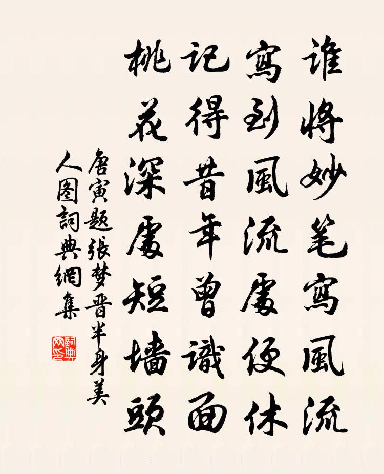 誰將妙筆寫風流,寫到風流處便休。記得昔年曾識面,桃花深處短牆頭。