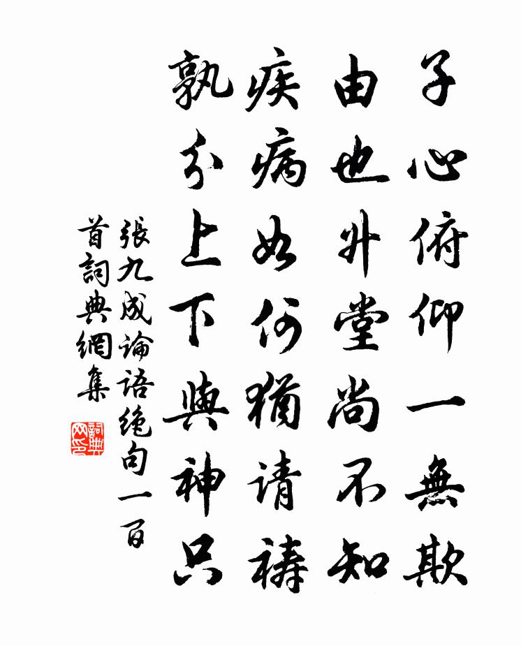 詩詞名句歷史字典書法欣賞書法字典國語詞典說文解字康熙字典古漢語字典標 題 作 者 詩 句 論語絕句一百首作者:張九成 朝代:宋代論語絕句一百首原文子心俯仰一無欺,由也升堂尚不知。疾病如何猶請禱,孰分上下與神只。詩詞問答問:論語絕句一百首的作者是誰?答:張九成問:論語絕句一百首寫於哪個朝代?答:宋代張九成論語絕句一百首書法欣賞論語絕句一百首書法作品詩詞推薦送東陽顧明府罷歸戴叔倫〔唐代〕祖帳臨鮫室,黎人擁鷁舟。坐藍高士去,繼組鄙夫留。白日落寒水,青楓繞曲洲。相看作離別,一倍不禁愁。送黃銑應舉李覯〔宋代〕先世宦不達,少年才已雄。何人為父執,獨自振家風。物色營求廣,賓興禮數隆。孤寒今有望,太守漢吳公。鵲丁謂〔宋代〕匣照光芒里,熏爐想像間。營巢登大歲,采粟上仙山。玉璞驚心起,星河盡力還。上林無限樹,枯卉莫登攀。感春三首張耒〔宋代〕冰消水面波光動,日暖樹梢花意歸。世上繁華隨日好,卻應春淺勝芳菲。題唐洲東寺訪友人不值詩李廌〔宋代〕眼前風景似襄陽,松柏參天竹滿崗。題鴃一聲春欲去,雨催新杏漸嬌黃。春寒黃庚〔宋代〕春寒料峭透紗窗,睡起晴蜂恰報衙。怪得曉來風力勁,滿階香雪落梨花。題城南書院三十四詠張栻〔宋代〕殷雷終日在前山,風捲雲環意作難。泊暮有懷空佇立,忽然飛雨到闌乾。依韻和達夫泛湖之作強至〔宋代〕雨氣隨雲卻上天,山頭已掃欲晴煙。柳條不盡空圍岸,荷葉猶新未礙船。時序百年催樂事,乾坤一笑入詩篇。主人浣溪沙張孝祥〔宋代〕鳷鵲樓高晚雪融。鴛鴦池暖暗潮通。鬱金黃染柳絲風。油壁不來春草綠,欄乾倚遍夕陽紅。江南山色有無中。郡齋戲句晁說之〔宋代〕朝困十催何敢飽,暮虞百罰更生寒。雞山小石鳳山柳,移植庭前少自寬。動靜雙照釋智愚〔宋代〕舉息冥方所,徒稱宋地僧。百年應自擲,一飯若為憑。風暖斬山鵲,煙消露石棱。分甘雲水共,終日任騰騰。懷程及甫二絕洪咨夔〔宋代〕撇濆梢渦穩下舟,狼牙鹿角又黃牛。兒曹脫險歡呶甚,數到家山十二州。送劉元圭李流謙〔宋代〕犯寒過我喜仍驚,節物崢嶸更遠程。劇飲投車輕十日,細談剪燭易三更。故人高義千鈞重,久客歸心一認竹。為語禪人並化主寫真求贊釋正覺〔宋代〕去就清貧,擔何苦辛。兀默三椽老,平生五合陳。出家意謂了身,住院還相累人。野水連天半夜月,叢林和氣十方桃源憶故人佚名〔宋代〕寒苞初吐黃金瑩。色染薔薇猶嫩。枝上紫檀香噴。灑落饒風韻。南枝一種同春信。何事不忺朱粉。自稱霓裳孤冷。木蘭花/玉樓春晏幾道〔宋代〕玉真能唱朱簾靜。憶在雙蓮池上聽。百分蕉葉醉如泥,卻向斷腸聲里醒。夜涼水月鋪明鏡。更看嬌花閒弄影。曲終劉蛻唐大中時人文冢在兜率寺予嘗讀孫樵自序李流謙〔宋代〕詔書嘗下大中朝,不聞稱蛻但稱樵。犧樽棄溝俱害性,此理要以達觀超。封文為冢嬉笑怒,恚不人知妨鬼妒。高岸金字經盧摯〔元代〕夢中邯鄲道,又來走這遭。須不是山人索價高。時自嘲,虛名無處逃。誰驚覺,曉霜侵鬢毛。冬至日代書呈諸兄金君卿〔宋代〕人人懽聚慶新陽,我獨飛心戀北堂。薄宦飄流成底事,數年牢落在他鄉。徙將遠意憑歸雁,不及諸兄振壽觴。何幸訴衷情佚名〔宋代〕碧天明月晃金波。清淺滯星河。深深院宇人靜,獨自問姮娥。圓夜少,缺時多。事因何。嫦娥莫是,也有別離,一名句推薦玉爐香,紅蠟淚,偏照畫堂秋思。溫庭筠《更漏子·玉爐香》 春山煙欲收,天淡星稀小牛希濟《生查子·春山煙欲收》 竹外桃花三兩枝,春江水暖鴨先知。蘇軾《惠崇春江晚景 / 惠崇春江曉景》 蠶無夏織桑充寨,田廢春耕犢勞軍。杜荀鶴《題所居村舍》 綠樹陰濃夏日長,樓台倒影入池塘。高駢《山亭夏日》 晚年唯好靜,萬事不關心。王維《酬張少府》 楊花榆莢無才思,惟解漫天作雪飛。韓愈《晚春》 高築牆,廣積糧張廷玉《明史·列傳·卷二十四》 新帖繡羅襦,雙雙金鷓鴣。溫庭筠《菩薩蠻·小山重疊金明滅》 君不見走馬川行雪海邊,平沙莽莽黃入天。岑參《走馬川行奉送出師西征 / 走馬川行奉送封大夫出師西征》