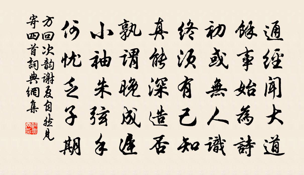 詩詞名句歷史字典書法欣賞書法字典國語詞典說文解字康熙字典古漢語字典標 題 作 者 詩 句 次韻謝夏自然見寄四首作者:方回 朝代:宋代次韻謝夏自然見寄四首原文通經聞大道,餘事始為詩。初或無人識,終須有己知。真能深造否,孰謂晚成遲。小袖朱弦手,何憂乏子期。詩詞問答問:次韻謝夏自然見寄四首的作者是誰?答:方回問:次韻謝夏自然見寄四首寫於哪個朝代?答:宋代方回次韻謝夏自然見寄四首書法欣賞次韻謝夏自然見寄四首書法作品詩詞推薦紹聖甲戌侍立集英殿臨軒試舉人作此兩絕張耒〔宋代〕春來小殿雪初殘,曉日曈曨未破寒。黃傘當軒公事退,君王緩步侍臣闌。旅次華州,贈袁右丞白居易〔唐代〕渭水綠溶溶,華山青崇崇。山水一何麗,君子在其中。才與世會合,物隨誠感通。德星降人福,時雨助歲功。化行送韋員外赴朔方鄭嚴〔唐代〕白露邊秋早,皇華戎事催。已推仙省妙,更是幕中才。出餞傾朝列,深功佇帝台。坐聞長策利,終見勒銘回。亂後過流溝寺白居易〔唐代〕九月徐州新戰後,悲風殺氣滿山河。唯有流溝山下寺,門前依舊白雲多。三月三日祓禊洛濱白居易〔唐代〕三月草萋萋,黃鶯歇又啼。柳橋晴有絮,沙路潤無泥。禊事修初半,遊人到欲齊。金鈿耀桃李,絲管駭鳧鷖。轉岸雙瑞蓮趙以夫〔宋代〕千機雲錦里。看並蒂新房,駢頭芳蕊。清標艷態,兩兩翠裳霞袂。似是商量心事。倚綠葉、無言相對。天蘸水。彩太廟祼地歌辭陳叔達〔唐代〕清廟既祼,郁鬯推禮。大哉孝思,嚴恭祖禰。龍袞以祭,鸞刀思啟。發德朱弦,升歌丹陛。遙享粢盛,堂斟況齊。次韻答黃安中兼簡林子中蘇軾〔宋代〕老去心灰不復然,一麾江海意方堅。那堪黃散付子度,空羨蘇杭養樂天。病肺一春難白酒,別腸三夜繞朱弦。群仙眉州燕遊雜詠十首起文堂晁公溯〔宋代〕天地有萬籟,中存韶濩音。斯文未嘗廢,但見古猶今。十村絕句舒岳祥〔宋代〕鵁鶄屬玉亂橫斜,石步柴門下白沙。長笛一聲人見,小舟風緊入蒹葭。初春陸游〔宋代〕柳拂朱橋湖水生,園林處處聽新鶯。亦知人世當行樂,無奈春陰不肯晴。走馬章台身縱老,看花杜曲眼猶明。只應期頤堂龔明之〔宋代〕投老歸來萬事休,北窗一枕足清幽。雖然不得行胸臆,幸喜身無千歲憂。南鄉子·歸夢寄吳檣陸游〔宋代〕歸夢寄吳檣,水驛江程去路長。想見芳洲初系纜,斜陽,煙樹參差認武昌。愁鬢點新霜,曾是朝衣染御香。重到故奉和太原公送前楊秀才戴兼招楊正字戎李商隱〔唐代〕潼關地接古弘農,萬里高飛雁與鴻。桂樹一枝當白日,芸香三代繼清風。仙舟尚惜乖雙美,彩服何由得盡同。誰憚病虐新差仲退折梅一枝昌雪跨訪我松下且賦詩徐端〔宋代〕破雪折梅相料理,要將春信報新年。獨跨瘦驢披鶴氅,更於何處覓神仙。戲題無常鍾二絕范成大〔宋代〕著衫脫褲兩浮休,切莫隨渠認路頭。三尺蒲牢關底事,尋聲接響大悠悠。紅樓夢曲-留餘慶曹雪芹〔清代〕留餘慶,留餘慶,忽遇恩人,幸娘親,幸娘親,積得陰功。勸人生,濟困扶窮,休似俺那愛銀錢、忘骨肉的狠舅奸寄商州馮十八仲鹹同年王禹偁〔宋代〕遷客秋來捧詔還,故人多怪鬢毛斑。重為東掖垣中士,猶夢西暉亭下山。靜算宦途皆是命,老思身計不如閒。何時種豆吟金朋說〔宋代〕南畝種豆苗,苗稀草猶勝。農人費鋤耘,凶穢何不淨。轆轤體周文璞〔宋代〕野人無事時,常誦極玄時。寫遍千山寺,吟行九曲溪。誰為補天手,同是決雲兒。欲去無人問,今霄醉似泥。名句推薦寄語天涯客,輕寒底用愁。于謙《除夜太原寒甚》 廬山煙雨浙江潮,未至千般恨不消。蘇軾《廬山煙雨浙江潮》 不充詘於富貴,不遑遑於所欲。姚察、姚思廉《梁書·列傳·卷五十》 風嗥雨嘯,昏見晨趨。鮑照《蕪城賦》 我行殊未已,何日復歸來。宋之問《題大庾嶺北驛》 波瀾誓不起,妾心古井水。孟郊《列女操 / 烈女操》 庭院深深深幾許,楊柳堆煙,簾幕無重數。歐陽修《蝶戀花·庭院深深深幾許》 生怕見花開花落,朝來塞雁先還。辛棄疾《漢宮春·立春日》 荷葉羅裙一色裁,芙蓉向臉兩邊開。王昌齡《採蓮曲》 細雨魚兒出,微風燕子斜。杜甫《水檻遣心二首》