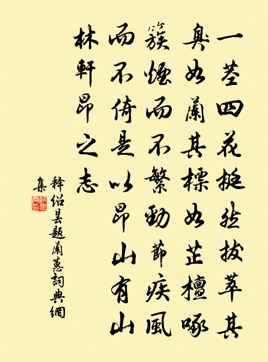詩詞名句歷史字典書法欣賞書法字典國語詞典說文解字康熙字典古漢語字典標 題 作 者 詩 句 題蘭蕙作者:釋紹曇 朝代:宋代題蘭蕙原文一莖四花,挺然拔萃。其臭如蘭,其標如芷檀啄簇煙而不繁,勁節疾風而不倚。是以昂山有山林軒昂之志。詩詞問答問:題蘭蕙的作者是誰?答:釋紹曇問:題蘭蕙寫於哪個朝代?答:宋代釋紹曇題蘭蕙書法欣賞題蘭蕙書法作品詩詞推薦挽肇慶胡守二首李曾伯〔宋代〕里閈游從早,江淮契闊稠。勤君分月駕,共我濟風舟。日者言猶在,辰乎嘆莫留。佳城雲水隔,老淚逐江流。潛鶴鼓馬之純〔宋代〕板木為腔冒以皮,其中寧有鶴來棲。如何音響聞西洛,未必源流自會稽。既被兵人都擊破,卻雲禽鳥不鳴嘶。分明閒居裘萬頃〔宋代〕閒居最與性相便,勤即繙書懶即眠。終日閉門真省事,有時面壁似耽禪。大椿歲簽祈親壽,斷簡生涯聽子傳。待問西江月佚名〔宋代〕好個馬山居士,功名富貴浮雲。庵兒側傍萬杉陰。煙里時橫小艇。律中林鍾將半,華堂壽斝頻斟。聲聲齊祝百千齡又二首曾幾〔宋代〕一紙寢丘書,僧窗屢卷舒。無因浮左蠡,況復度匡廬。政以相望遠,非關自作疏。夢成飛鳥去,千里不躊躇。南鄉子佚名〔宋代〕淨盡露天機。只恐時人自執迷。頷下藏珠當猛取,休遲。道在身中更問誰。塵網急拋離。百歲年華七十稀。莫待老西江月蘇軾〔宋代〕點點樓頭細雨,重重江外平湖。當年戲馬會東徐,今日淒涼南浦。莫恨黃花未吐,且教紅粉相扶。酒闌不必看茱萸寒食穆修〔宋代〕江邊又寒食,傖客奈離襟。恨滿王孫草,愁多望帝禽。雞毬輕薄事,歌酒宴遊心。盡付吳兒輩,惟知屏跡深。松溪廟高翥〔宋代〕廟自何年立,門深晝不扃。寒藤扶壞壁,秋草帶疏欞。溪接東西碧,山分遠近青。老巫逢客至,謾說有神靈。寄懷龍輔〔宋代〕莫怪書頻斷,難傳恨萬端。雖承結髮愛,難作比肩看。淚續箋恆濕,思長筆屢乾。臨封沾臂血,使識寸心丹。緣識宋太宗〔宋代〕大道傳來意,緣窮識外因。善言論浩劫,天是法王身。忍笑韓偓〔唐代〕宮樣衣裳淺畫眉,晚來梳洗更相宜。水精鸚鵡釵頭顫,舉袂佯羞忍笑時。曉詠歐陽修〔宋代〕簾外星辰逐斗移,紫河聲轉下雲西。九雛烏起城將曙,百尺樓高月易低。露裛蘭苕惟有淚,秋荒桃李不成蹊。西堂論語絕句一百首張九成〔宋代〕既言一日歸顏子,王者如何必世仁。若論仲尼期月可,斯言乃是反其真。重展西湖二首宋庠〔宋代〕綠鴨東陂已可憐,更因雲竇注西田。鑿開魚鳥忘情地,展盡江河極目天。向夕舊灘都浸月,過寒新樹便留煙。使君東園池上書所見五首宋庠〔宋代〕堂下濺濺水欲周,水清煙底見游鯈。主人不是無芳餌,此意從來信直鉤。丙辰二月二日喜晴釋行海〔宋代〕殘梅一片過晴檐,忽感春風三十三。舊雁自歸江北去,鶯花只是戀江南。學士院端午貼子二十七首 夫人閣四首蘇轍〔宋代〕修廈欺晴日,重簾度細風。群仙不煩促,長在廣寒宮。尋芳空茂木,鬥草得幽蘭。歌舞纖絺健,嬉遊玉佩珊。新煮春秋戰國門趙宣子周曇〔唐代〕門人曾不有提彌,連嗾呀呀孰敢支。臨難若教無苟免,亂朝爭那以獒為。頌古十一首釋鹹傑〔宋代〕粥了令教洗缽盂,鐵船無底要人扶。片帆高掛乘風便,截海須還大丈夫。名句推薦別離還有經年客,悵望不如河鼓星。徐凝《七夕》 卻愁宴罷青娥散,揚子江頭月半斜。韋莊《陪金陵府相中堂夜宴》 夏起大土功,命曰絕理。犯禁絕理,天誅必至。佚名《黃帝四經·經法·亡論》 何當載酒來,共醉重陽節。孟浩然《秋登蘭山寄張五》 本是同根生,相煎何太急?曹植《七步詩》 以大事小者,樂天者也。孟子《孟子·梁惠王章句下·第三節》 回看射鵰處,千里暮雲平。王維《觀獵》 十日春寒不出門,不知江柳已搖村。蘇軾《正月二十日往岐亭郡人潘古郭三人送余於女王城東禪莊院》 哀莫大於心死。莊子《莊子·外篇·田子方》 賤禮義而貴勇力,貧則為盜,富則為賊。荀子《荀子·樂論》
