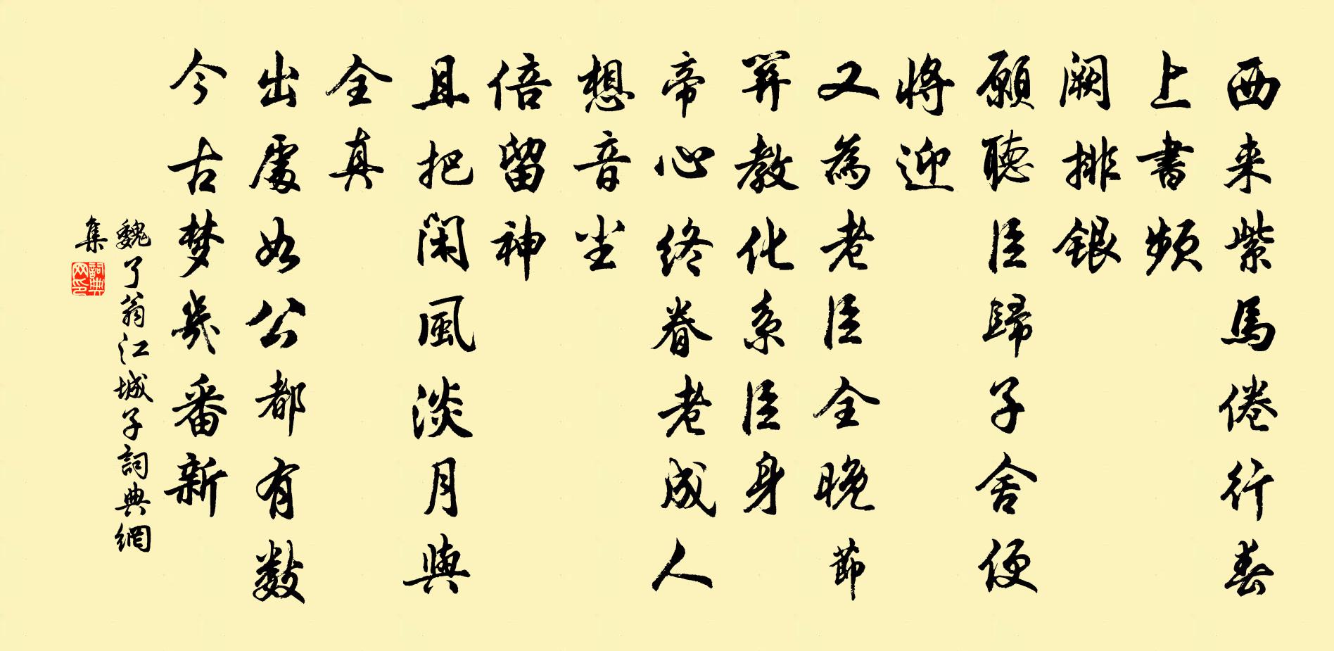 詩詞名句歷史字典書法欣賞書法字典國語詞典說文解字康熙字典古漢語字典標 題 作 者 詩 句 江城子作者:魏了翁 朝代:宋代江城子原文西來紫馬倦行春。上書頻。闕排銀。願聽臣歸,子舍便將迎。又為老臣全晚節,關教化,系臣身。帝心終眷老成人。想音塵。倍留神。且把閒風,淡月與全真。出處如公都有數,今古夢,幾番新。詩詞問答問:江城子的作者是誰?答:魏了翁問:江城子寫於哪個朝代?答:宋代問:江城子是什麼體裁?答:詞魏了翁江城子書法欣賞江城子書法作品詩詞推薦送趙正甫孫相湘陰趙汝回〔宋代〕行舟何所有,新酒滿瓷瓶。若使三閭飲,終應一念醒。官卑掌苗籍,吟苦掩松廳。清夢如湘水,遙通春草亭。雜詩李復〔宋代〕應龍出重淵,矯矯升天行。奮迅彌宇宙,雨施品物形。收藏入無間。脗合元氣冥。神變不可測,乃知至陽精。聖人挽李太孺人胡寅〔宋代〕桂水無情日夜東,空餘丹旐泝西風。一經不負門閭望,五鼎端宜饋祀豐。茂渥出綸觀有煒,芳徽勒石播何窮。遙知小重山劉秉忠〔元代〕雲去風來雨乍晴。斷煙分遠樹、夕陽明。夕陽無處雁斜橫。山重疊,山外更入行。千古短長亭。別離渾是苦、柰西江神子/江城子仇遠〔宋代〕雲階步影夜淒涼。采丹房。宿芽黃。萬粟千螢,風露四闌香。歌斷小山枝上月,環佩冷,怯流光。年時金屋罩琴床南歌子(是日微雨,過午而霽,晚遂月出,次劉無言韻)葉夢得〔宋代〕雨惜山容斂,雲矜棹影開。忽看霽色射林隈。為問湖亭清影、為誰來。盡洗歸時路,重傾醉後杯。未應霜雪遽相催梁雅樂歌 禋雅 一沈約〔南北朝〕紫宮昭煥。太乙微玄。降臨下土。尊高上天。載陳珪幣。式備牲牷。雲箛清引。栒虡高懸。俯昭象物。仰致高煙。狎鷗亭詩夏竦〔宋代〕海雁橋邊綠水深,絕無塵土近花陰。忘機不管人知否,自有溪鷗信此心。菩薩蠻(十之一)鄧肅〔宋代〕隔窗瑟瑟聞飛雪。洞房半醉回春色。銀燭照更長。羅屏圍夜香。玉山幽夢曉。明日天涯杳。倚戶黯芙蓉。涓涓秋露秋夜感遇十首以孤村一犬吠殘月幾人行為韻陸游〔宋代〕我夢遊異境,烏帽跨小蹇,桑麻夾阡陌,山川曠何遠!俗有太古風,蕭散到雞犬。鐘鳴忽驚覺,所造恨猶淺。郊廟歌辭。梁郊祀樂章。慶休張袞〔唐代〕大業來四夷,仁風和萬國。白日體無私,皇天輔有德。七旬罪已服,六月師方克。偉哉帝道隆,終始常作則。春去吟邵雍〔宋代〕春去休驚晚,夏來還喜初。殘芳雖有在,得以綠陰無。次韻仇仁近有懷見寄十首方回〔宋代〕誰識虛翁此一虛,歸來不嘆食無魚。早聞曾撰異三子,近喜陶詩賦二疏。但苦老身多疾痛,時呼醫士問方書。君知贈別王鍊師往羅浮施肩吾〔唐代〕道俗駢闐留不住,羅浮山上有心期。卻愁仙處人難到,別後音書寄與誰。觀三皇吟邵雍〔宋代〕許大乾坤自我宣,乾坤之外復何言。初分大道非常道,才有先天未後天。作法極微難看蹟,收功最久不知年。若教赤蟻辭送楊叔武廣南招安梅堯臣〔宋代〕南方赤蟻大若象,潛荒穴洞人莫逢。天公合雨不決雨,從橫亂出將自封。侵疆凌壤壞城市,戰鬥億倍南柯雄。嘗聞過餘干吳師中秀才以小詩惠歙硯次韻謝之周必大〔宋代〕舊曾起草向明光,獨與羅文近赭黃。三載瓦池研灶墨,因君聊復夢儀凰。慶潯州廖太守四首許縣尉〔宋代〕登瀛學士自瀛歸,古錦囊中百政奇。春草池塘曾入夢,梅花廳院屢題詩。南州暫屈陳文惠,北斗重瞻韓退之。惠政啄木兒王哲〔元代〕自住自住。離宮受坎戶。自悟自悟。汞中建鉛庫。好頻頻顧。長相覷。上下沖和知去處。漸漸入、雲霞路。赤鳳兒絕句六十四首張伯端〔宋代〕前弦之後後弦前,藥味平平氣象全。採得歸來爐里鍛,鍛成溫養似烹鮮。名句推薦父母之年,不可不知也。一則以喜,一則以懼。孔子弟子《論語·里仁篇》 半夜銜枚,滿城深雪,忽已亡懸瓠。李綱《念奴嬌·憲宗平淮西》 待浮花、浪蕊都盡,伴君幽獨。蘇軾《賀新郎·夏景》 白骨露於野,千里無雞鳴。曹操《蒿里行》 開到荼蘼花事了。曹雪芹《紅樓夢·第六十三回》 道之以政,齊之以刑,民免而無恥。孔子弟子《論語·為政篇》 縱使有花兼有月,可堪無酒又無人。李商隱《春日寄懷》 最喜小兒亡賴,溪頭臥剝蓮蓬。辛棄疾《清平樂·村居》 惟順於父母,可以解憂。孟子《孟子·萬章章句上·第一節》 施惠勿念,受恩莫忘。朱柏廬《朱子家訓·全文》