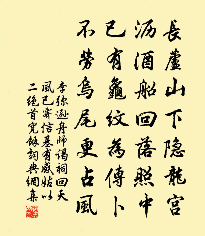 詩詞名句歷史字典書法欣賞書法字典國語詞典說文解字康熙字典古漢語字典標 題 作 者 詩 句 舟師謁祠回天風已霽信基有感姑以二絕首寬餘作者:李彌遜 朝代:宋代原文長蘆山下隱龍宮,瀝酒船回落照中。已有龜紋為傳卜,不勞烏尾更占風。詩詞問答問:《舟師謁祠回天風已霽信基有感姑以二絕首寬餘》的作者是誰?答:李彌遜問:該詩寫於哪個朝代?答:宋代書法欣賞舟師謁祠回天風已霽信基有感姑以二絕首寬餘書法作品詩文賞析【原題】:舟師謁祠回天風已霽信基有感姑以二絕首寬餘事詩詞推薦謝高左藏惠墨竹趙汝績〔宋代〕幅箋幻墨起秋風,便與蘭亭景致同。料得揮毫盤礴際,渭川千畝在胸中。和楊伯子左次魏〔宋代〕鑾坡蓬監兩封書,道院東西各付渠。乾道聖人無固必,是非付與直哉魚。題千秋觀蘇泂〔宋代〕不見風流賀季真,酒船回棹莫逡巡。如今湖上千秋觀,逢著黃冠亦可人。九月八日戲作兩絕句示妻子陳與義〔宋代〕今夕知何夕,都如未病時。重陽莫草草,剩作幾篇詩。題太白山隱者項斯〔唐代〕高居在幽嶺,人得見時稀。寫籙扃虛白,尋僧到翠微。掃壇星下宿,收藥雨中歸。從服小還後,自疑身解飛。彥雋母挽章二首陳東〔宋代〕少馳賢孝譽,來配潁川家。雖奪共姜誓,曾無賢母瑕。一鄉蒙愛惠,百口藉生涯。享福逾中壽,歸與勿怨嗟。送春羅與之〔宋代〕政是風光欲別時,可堪煙外雨絲絲。怕看太白余春賦,嫌誦淵明止酒詩。晝短擬教持蠟炬,愁深悔不下書帷。自知示周道士白玉蟾〔宋代〕前山隱隱起雷聲,細雨絲絲濯旱氛。何處飛來松上鶴,晚風唳斷九天雲。偈七首釋法泰〔宋代〕渺渺邈邈,十方該括。坦坦蕩蕩,絕形絕相。目欲眎而睛枯,口欲談而詞喪。文殊普賢,全無伎倆。臨濟德山,不留題胡參卿秀才幽居李中〔唐代〕竹蔭庭除蘚色濃,道心安逸寂寥中。扣門時有棲禪客,灑酒多招採藥翁。江近好聽菱芡雨,徑香偏愛蕙蘭風。我慚次韻趙文鼎同游鵝石五首韓元吉〔宋代〕瀲瀲煙波帶月華,渡頭江迥兩三家。細傾社翁鵝兒酒,洪聽山村楊白花。題武溪龍書廟壁陶弼〔宋代〕路到龍樓處,陰森覺有靈。山腰過雲黑,石眼出泉腥。寄姚合郎中周賀〔唐代〕轉刺名山郡,連年別省曹。分題得客少,著價買書高。晚柳蟬和角,寒城燭照濤。鄱溪臥疾久,未獲後乘騷。洛中游眺貽同志許渾〔唐代〕康衢一望通,河洛正天中。樓勢排高鳳,橋形架斷虹。遠山晴帶雪,寒水晚多風。幾日還攜手,鳥鳴花滿宮。題賤容艾性夫〔宋代〕骨多肉少與梅同,老向江南風雪中。萬事羞稱司馬好,一生不送退之窮。偶貪識字頭先白,稍欲工竽面即紅。說與將別純甫四十字奉呈強至〔宋代〕我馬將北馳,子車亦南挽。車馬無留行,相去即相遠。風林秋聲乾,落日孤峰晚。後會未可知,莫使別觴淺。浣溪沙許棐〔宋代〕欲把香繒暖纈裁。玉箱金鎖又慵開。一杯茶罷上春台。方向柳邊揉碧縷,又從花畔並紅腮。不知凝待阿誰來。食早荔七首劉克莊〔宋代〕向來喚做荔支顛,浪得顛名不記年。帝憫此翁顏色老,即家除拜荔支仙。重過隨州故兵部李侍郎恩知因抒長句羅隱〔唐代〕莊周高論伯牙琴,閒夜思量淚滿襟。四海共誰言近事,九原從此負初心。鷗翻漢浦風波急,雁下鄖溪霧雨深。慚愧見岩桂有感孫應時〔宋代〕苦被天香惱,蔥瓏又一枝。年年秋好處。故故月明時,勝絕何妨晚,淒涼卻直宜。客愁添白髮,辜負小山期。名句推薦落葉他鄉樹,寒燈獨夜人。馬戴《灞上秋居》 孤燈寒照雨,濕竹暗浮煙。司空曙《雲陽館與韓紳宿別》 玉在櫝中求善價,釵於奩內待時飛。曹雪芹《紅樓夢·第一回》 及時當勉勵,歲月不待人。陶淵明《雜詩·人生無根蒂》 回首天涯,一抹斜陽,數點寒鴉。張可久《折桂令·九日》 翠娥執手送臨歧,軋軋開朱戶柳永《採蓮令·月華收》 鵝湖山下稻粱肥,豚柵雞棲半掩扉。王駕《社日》 有鳥鷙立,羽翼張。柳宗元《唐鐃歌鼓吹曲十二首·其四》 倉廩實,則知禮節;衣食足,則知榮辱管仲《管子·牧民》 民之無良,相怨一方,受爵不讓,至於己斯亡。荀子《荀子·儒效》