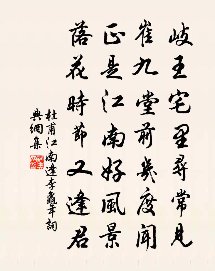 岐王宅里尋常見,崔九堂前幾度聞。正是江南好風景,落花時節又逢君。
