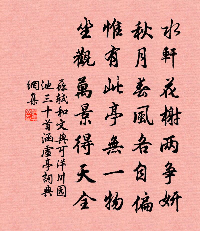 水軒花榭兩爭妍,秋月春風各自偏。惟有此亭無一物,坐觀萬景得天全。