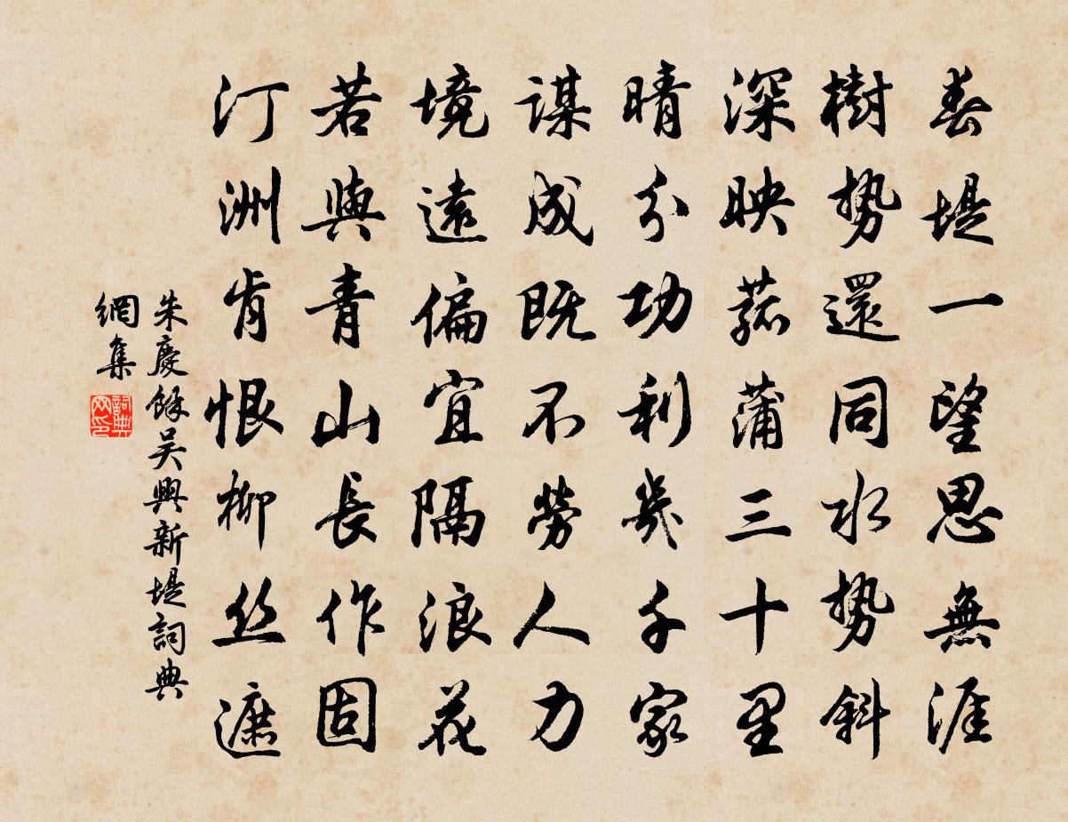 詩詞名句歷史字典書法欣賞書法字典國語詞典說文解字康熙字典古漢語字典標 題 作 者 詩 句 吳興新堤作者:朱慶餘 朝代:唐代吳興新堤原文春堤一望思無涯,樹勢還同水勢斜。深映菰蒲三十里,晴分功利幾千家。謀成既不勞人力,境遠偏宜隔浪花。若與青山長作固,汀洲肯恨柳絲遮。詩詞問答問:吳興新堤的作者是誰?答:朱慶餘問:吳興新堤寫於哪個朝代?答:唐代朱慶餘吳興新堤書法欣賞吳興新堤書法作品注釋全唐詩:卷515-26詩詞推薦戲書蘇軾〔宋代〕五言七言正兒戲,三行兩行亦偶爾。我性不飲只解醉,正如春風弄群卉。四十年來同幻事,老去何須別愚智。古人臨江仙張炎〔宋代〕霧中,不過戲縱筆墨,觀者出門一笑可也翦翦春冰出萬壑,和春帶出芳叢。誰分弱水洗塵紅。低回金叵羅,約略玉和令狐相公言懷寄河中楊少尹劉禹錫〔唐代〕章句慚非第一流,世間才子昔陪游。吳宮已嘆芙蓉死,邊月空悲蘆管秋。任向洛陽稱傲吏,苦教河上領諸侯。石渠曉泊橫塘范成大〔宋代〕短夢難成卻易驚,披衣起漱玉池清。遙知中夜南風轉,洶洶前村草市聲。記出遊所見陸游〔宋代〕我行初無折簡招,出門十里未覺遙。憩裝蕭蕭北崦寺,策蹇渺渺西村橋。眉頭那可遣愁到,舌本正要著酒澆。寒風立春冷朝陽〔唐代〕玉律傳佳節,青陽應此辰。土牛呈歲稔,彩燕表年春。臘盡星回次,寒餘月建寅。風光行處好,雲物望中新。流水題柱二首陳師道〔宋代〕桃李摧殘風雨春,天孫河鼓隔天津。主恩不與妍華盡,何限人間失意人。道傍草木二首楊萬里〔宋代〕古樹何年澗底生,只今已與嶺般平。千梢萬葉無重數,一一分明報雨聲。次韻鑒中八詠於石〔宋代〕驅車曉行邁,行行出郊郭。斷岡屹崇墉,虛籟殷靈壑。雨深瑤草長,風定松花落。西山有爽氣,逍遙倚晴閣。贈談命江文魁翁溪園〔宋代〕刮眼相逢四五秋,知君藝出萬人頭。但看巨軸藏盈袖,不信行囊尚弊裘。建閣程生藏瑞墨,買田張衍寄英游。從來三月二日同明叔過從禮觀牡丹趙蕃〔宋代〕新晴喚我出,負郭看花來。窈窕欄檻入,咄嗟尊俎開。嫣然同午醉,老矣怕春催。身羨雙飛蝶,翩翩去卻回。冬日臨昆明池李世民〔唐代〕石鯨分玉溜,劫燼隱平沙。柳影冰無葉,梅心凍有花。寒野凝朝霧,霜天散夕霞。歡情猶未極,落景遽西斜。題昌山聖姥廟甘同叔〔宋代〕分宜古縣環清溪,重岡復嶺如賓士。行逢山斷水流處,閱城廟枕山之西。我來落日在前嶺,摩挲一讀廬肇碑。嗟唐偶讀戲書方回〔宋代〕萬物乾坤判女男,始張玄理要精探。九還七返無成說,一守三存亦浪談。未必陽神正解出,可憐痴計謾多貪。誰能郊廟歌辭。享太廟樂章。雍和二章佚名〔唐代〕在滌嘉豢,麗碑敬牲。角握之牡,色純之騂。火傳陽燧,水溉 * 。太公胖俎,傅說和羹。俎豆有馥,粢盛絜豐。驅豎子摘蒼耳(即卷耳)杜甫〔唐代〕江上秋已分,林中瘴猶劇。畦丁告勞苦,無以供日夕。蓬莠獨不焦,野蔬暗泉石。卷耳況療風,童兒且時摘。侵星觀雲篇劉禹錫〔唐代〕興雲感陰氣,疾足如見機。晴來意態行,有若功成歸。蔥蘢含晚景,潔白凝秋暉。夜深度銀漢,漠漠仙人衣。張公洞尤袤〔宋代〕吾聞荊溪南,有地仙所宅。十年勞夢想,今日著腳歷。扁舟下湖滏,水漲沒砂磧。結纜小橋傍,杖藜從所適。平岡君復處士棲大師夙有玩月泛湖之約予以臥病致釋智圓〔宋代〕涼風吹眾木,羸病轉加前。伏枕誰相問,中秋月又圓。清光浮遠嶠,冷色混平川。不得同支許,乘舟樂浩然。觀物二首白玉蟾〔宋代〕蜂占薔薇封食邑,蟻侵蜾蠃借軍須。雨天風急鳩呼婦,水國煙寒雁喚奴。名句推薦不系雕鞍門前柳,玉容寂寞見花羞,冷風兒吹雨黃昏後。喬吉《春閨怨·不系雕鞍門前柳》 山下孤煙遠村,天邊獨樹高原。王維《田園樂七首·其五》 西宮南內多秋草,落葉滿階紅不掃。白居易《長恨歌》 子用私道者家必亂,臣用私義者國必危。劉向《戰國策·趙二·趙燕後胡服》 同欲者相憎,同憂者相親。劉向《戰國策·中山·犀首立五王》 捲地風來忽吹散,望湖樓下水如天。蘇軾《六月二十七日望湖樓醉書》 久住令人賤,頻來親也疏。佚名《增廣賢文·上集》 政之所興,在順民心。管仲《管子·牧民》 酒是燒身硝焰,色為割肉鋼刀馮夢龍《警世通言·卷十一》 繁采寡情,味之必厭。劉勰《文心雕龍·情采》