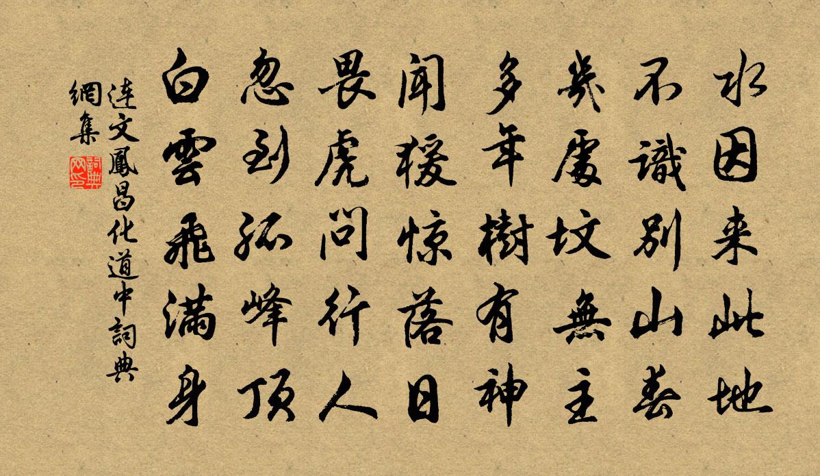 詩詞名句歷史字典書法欣賞書法字典國語詞典說文解字康熙字典古漢語字典標 題 作 者 詩 句 昌化道中作者:連文鳳 朝代:宋代昌化道中原文水因來此地,不識別山春。幾處墳無主,多年樹有神。聞猨驚落日,畏虎問行人。忽到孤峰頂,白雲飛滿身。詩詞問答問:昌化道中的作者是誰?答:連文鳳問:昌化道中寫於哪個朝代?答:宋代連文鳳昌化道中書法欣賞昌化道中書法作品詩詞推薦舞曲歌辭。霓裳辭十首王建〔唐代〕弟子部中留一色,聽風聽水作霓裳。散聲未足重來授,直到床前見上皇。中管五弦初半曲,遙教合上隔簾聽。一聲苦筍用前韻洪咨夔〔宋代〕林谷迎梅新雨沐,和繃熟煮琅玕玉。籜龍別種富風味,梭魚同科少肌肉。吾廬兩山介宣湖,綠 * 徑楊花鋪。攻苦將樂縣胡仲弓〔宋代〕石徑盤千折,林楓大十圍。山如昌化到,水似弋陽溪。樓閣層層畫,田園種種宜。惜非鄉國遠,有意卜幽樓。句丘濬〔宋代〕春雲片片揭新綿。生查子孫光憲〔唐代〕寂寞掩朱門,正是天將暮。暗澹小庭中,滴滴梧桐雨。繡工夫,牽心緒,配盡鴛鴦縷。待得沒人時,偎倚論私語。宴曹王宅錢起〔唐代〕賢王駟馬退朝初,小苑三春帶雨餘。林沼蔥蘢多貴氣,樓台隱映接天居。仙雞引敵穿紅藥,宮燕銜泥落綺疏。自嘆謝喬職方惠山菜魏野〔宋代〕山菜尋常見眼明,使君偏賜況新生。野人屈指皆知性,老圃從頭不識名。五鼎減來為異味,一筆添出稱閒情。兒童聞裴侍御胐自襄州司戶除豫州司戶因以投寄孟浩然〔唐代〕故人荊河掾,尚有柏台威。移職自樊沔,芳聲聞帝畿。昔余臥林巷,載酒過柴扉。松菊無君賞,鄉園懶欲歸。雨中即事簡二友鄭清之〔宋代〕鳩能喚雨復呼晴,日日長從屋角鳴。晴雨不應關汝事,強饒唇舌效君卿。偈頌七十六首釋師範〔宋代〕一二三四五,各各面相睹。甜瓜徹蔕甜,苦瓠連根苦。逆旅陸游〔宋代〕秋晚南山行,小蹇就店秣。我亦念少休,無奈市兒聒。嗟爾亦坐飢,錙銖苦爭奪。其心計亦厭,陷溺無自脫。我欲游白石岩陳傅良〔宋代〕地向東南傾,石際滄海立。蛟鼉限波濤,雞犬得城邑。居然通國望,跋莫他山及。道人獨有之,置屋三四級。幾看【正宮】貨郎兒佚名〔元代〕靜悄悄幽庭小院,近花圃相連著翠軒,仕女王孫戲鞦韆。板沖開紅杏火,裙拂散綠楊煙。 【脫布衫】見金蓮緊荔枝香(歇指調)柳永〔宋代〕甚處尋芳賞翠,歸去晚。緩步羅襪生塵,來繞瓊筵看。金縷霞衣輕褪,似覺春遊倦。遙認,眾里盈盈好身段。擬回將至天目登高嶺虞儔〔宋代〕天近初凝目,雲橫便躡梯。前瞻千嶂列,回首一川低。雨過黃梅盡,風來翠剡齊。靈源窮不到,晴晝掛虹霓。漁父張舜民〔宋代〕家住耒江邊,門前碧水連。小舟勝養馬,大罟當耕田。保甲元無籍,青苗不著錢。桃源在何處,此地有神仙。句高荷〔宋代〕所喜江陵得真處,沮漳依舊兩川橫。親祠堂主鸞曾駐,善夢先生蝶不歸。沙軟綠頭相併鴨,水深紅尾自跳魚。威強李監廟求拙軒一首蘇籀〔宋代〕鏝圬累瓴甓,幾席百春叢。林塢純真趣,衣巾質古風。寧非迂叟合,豈與漫郎同。不巧姑云爾,何妨詩更工。鄜州人語間有似河朔人處予獨知其然蓋此本魏晁說之〔宋代〕魏郡歸秦秦遂王,音猶故魏恨難忘。誰知我本魏郡士,比汝獨思田子方。和劉珵西湖十洲月島舒坦〔宋代〕何人騎鶴上瀛洲,清影明波正九秋。吹罷玉笙端不見,滿空桂子有誰收。名句推薦暖風熏得遊人醉,直把杭州作汴州。林升《題臨安邸》 門外無人問落花,綠陰冉冉遍天涯。曹豳《春暮·門外無人問落花》 強攜酒、小橋宅,怕梨花落盡成秋色。姜夔《淡黃柳·空城曉角》 江帶峨眉雪,川橫三峽流。李白《經亂離後天恩流夜郎憶舊遊書懷贈江夏韋太守良宰》 幾度紅窗,誤認鳴鑣。斷腸風月可憐宵。蔡伸《一剪梅·堆枕烏雲墮翠翹》 春潮帶雨晚來急,野渡無人舟自橫。韋應物《滁州西澗》 念故人,千里至此共明月。寇準《踏莎行·寒草煙光闊》 謂誰朝來不作意,狂風挽斷最長條。杜甫《絕句漫興九首·其一》 夢斷香消四十年,沈園柳老不吹綿。陸游《沈園二首》 樹樹皆秋色,山山唯落暉。王績《野望》
