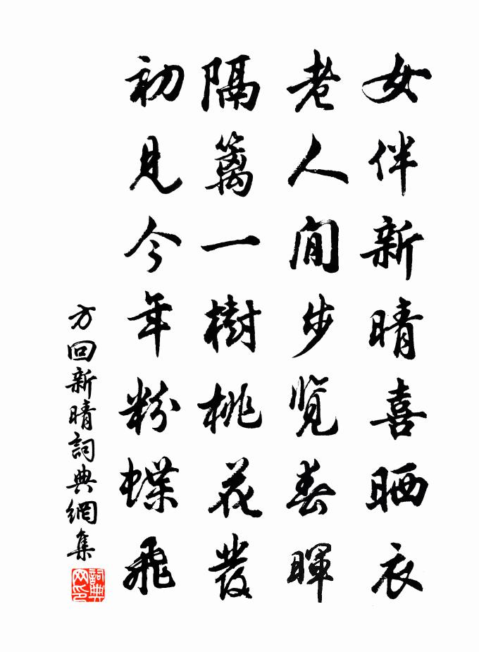 詩詞名句歷史字典書法欣賞書法字典國語詞典說文解字康熙字典古漢語字典標 題 作 者 詩 句 新晴作者:方回 朝代:宋代新晴原文女伴新晴喜曬衣,老人閒步覽春暉。隔籬一樹桃花發,初見今年粉蝶飛。詩詞問答問:新晴的作者是誰?答:方回問:新晴寫於哪個朝代?答:宋代方回新晴書法欣賞新晴書法作品詩詞推薦寄寇十一陳師道〔宋代〕鄰里相望信不通,時因得句寄匆匆。畫樓著燕薰風裡,楊柳藏鴉白下東。度日守窗令節換,經旬無使覺門空。錦囊題岸老庵居曹勛〔宋代〕唯庵無住老禪人,一坐中間遠世紛。不討毗耶方丈飯,應思雨滿北山雲。送邊伯京之閩王冕〔元代〕邊郎辟掾南閩去,馬首春光正十分。路夾海棠行錦障,江涵山翠擁羅文。簡書可勵風雲會,韜略能夷虎豹群。若向空山釋文珦〔宋代〕深山一敝廬,今是幾年居。舉世皆嫌拙,吾心獨有餘。寒苴珍芥醬,嘉核愛梅諸。樵父時同賦,多將槁葉書。定夸浦趙蕃〔宋代〕棹掠湖邊浦,帆收柳外橋。蒲深映鳧沒,浪靜覺魚跳。紗帢因眠側,霜豪倚醉搖。春風空浩蕩,客思只蕭條。台州郡治十二詩太守尤延之命賦清平閣林憲〔宋代〕飲濁斯貴清,路險斯貴平。明明古君子,日用無非誠。寒潭寒徹底,坦道安無傾。日月儻如此,政化天與成。暮春寄李審言龍圖邵雍〔宋代〕年年長是怕春深,每到春深病不任。傷酒情懷因小會,養花天氣為輕陰。歲華易革向來事,節物難回老去心。唯有賀新郎劉克莊〔宋代〕動地東風起。畫橋西、繞溪桑柘,漫山桃李。寂寂牆陰蒼苔徑,猶印前回屐齒。驚歲月、飆馳雲駛。太息攀翻長亭元微之除浙東觀察使,喜得杭越鄰州,先贈長句白居易〔唐代〕稽山鏡水歡游地,犀帶金章榮貴身。官職比君雖校小,封疆與我且為鄰。郡樓對玩千峰月,江界平分兩岸春。杭越某衰年未了初度復臨伏辱時賢載酒為壽且揮灑汪晫〔宋代〕白髮衰翁歲已老,惜花有心猶起早。無事曉窗但高眠,閉關苔青門不掃。和靖風流屋後梅,濂溪氣味窗前草。近與和薛仲止漁村雜詩十首劉黻〔宋代〕料理楚辭甘冷闃,卜鄰惟喜近漁家。昨宵雨過平湖闊,閒看菰蒲添幾花。伊川吟邵雍〔宋代〕休嗟流年隨逝水,但將清景逐閒情。山河天下從來廣,日月林間長自明。幸有園林供笑傲,豈無詩酒樂昇平。如何滿江紅吳淵〔宋代〕秋後鍾山,蒼翠色、可供餐食。登臨處、怨桃舊曲,催梅新笛。江近苹風隨汛落,峰高松露和雲滴。嘆頭童、齒豁題明遠軒李新〔宋代〕聊能半日止游韁,拂拂塵裾未滌黃。山掩豀光龍脊斷,谷傳天籟虎風涼。亂雲過眼不妨好,細逕入村何限長。獨酌步蟾宮(九月二十六夜宿周師從家。睡覺,風雨起,有懷木犀)楊無咎〔宋代〕桂花馥郁清無寐。覺身在、廣寒宮裡。憶吾家、妃子舊遊,瑞龍腦、暗藏葉底。不堪午夜西風起。更颭颭、萬絲斜范元長觀梅詩帖贊岳珂〔宋代〕範本蜀望,世仍忠嘉。南渡而來,人門莫加。帝咨典型,詔起幽遐。翊{微去彳加女}銅龍,執經金華。筆取端重仙都即景曹唐〔唐代〕蟠桃花老華陽東,軒後登真謝六宮。旌節暗迎歸碧落,笙歌遙聽隔崆峒。衣冠留葬橋山月,劍履將隨浪海風。看卻奉使契丹二十八首其三贈右番趙侍郎蘇轍〔宋代〕霜須顧我十年兄,朔漠陪公萬里行。駢馬貂裘寒自暖,連床龜息夜無聲。同心便可忘苛禮,異類猶應服至誠。行役摸魚兒(和韻)劉辰翁〔宋代〕道醉鄉、無邊無岸,一尊到彼殊徑。是間轉海人知處,尺地不教渠剩。尊亦癭。問一斗消酲,一石猶難信。臨風小頌古二十六首釋嗣宗〔宋代〕古冢不為家,漁翁舉棹出蘆花。湛水無風江月迥,長空撒盡暮天霞。名句推薦闌乾風冷雪漫漫,惆悵無人把釣竿。姜夔《釣雪亭》 漢甲連胡兵,沙塵暗雲海。李白《經亂離後天恩流夜郎憶舊遊書懷贈江夏韋太守良宰》 不成拋擲,夢裡終相覓。王國維《點絳唇·屏卻相思》 一為遷客去長沙,西望長安不見家。李白《與史郎中欽聽黃鶴樓上吹笛 / 題北榭碑》 深居俯夾城,春去夏猶清。李商隱《晚晴》 學是一個尋常的家飯,當隨事而警惕。洪應明《菜根譚·概論》 冷冷水向橋東去。漠漠雲歸溪上住。劉鎮《玉樓春·東山探梅》 君子務修其內而讓之於外。荀子《荀子·儒效》 利之所在,雖千仞之山無所不上,深源之下,無所不入焉。管仲《管子·禁藏》 文死諫,武死戰。曹雪芹《紅樓夢·第三十六回》