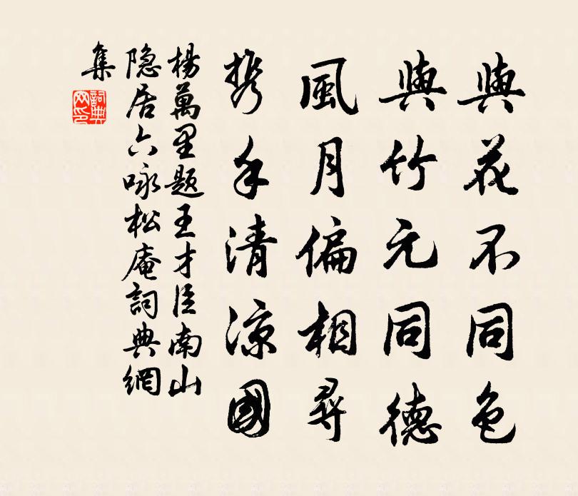 與花不同色,與竹元同德。風月偏相尋,攜手清涼國。