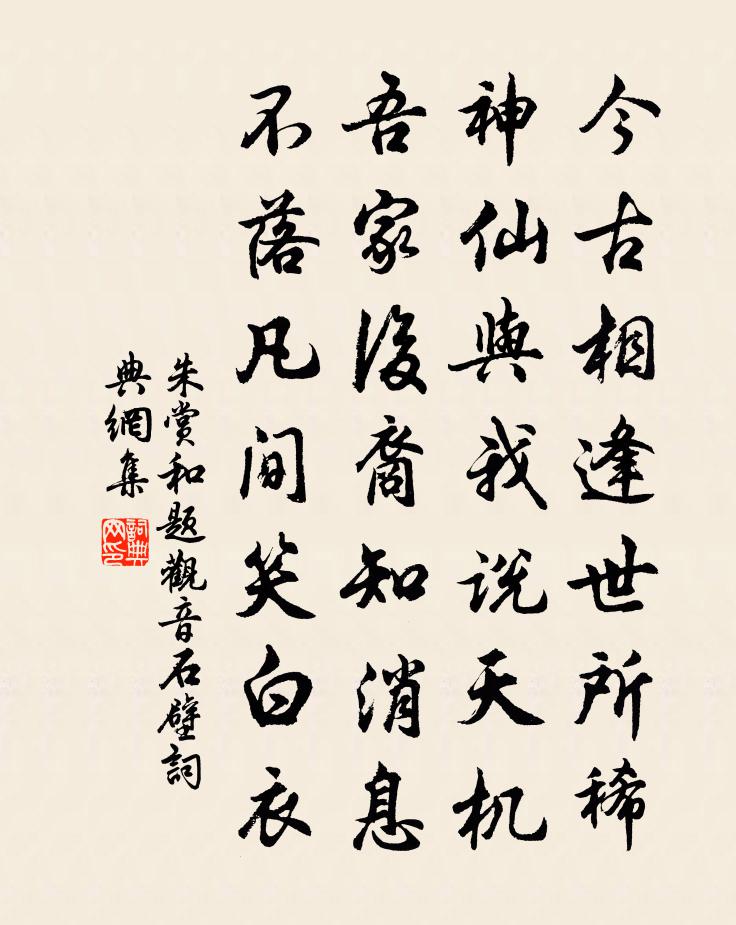詩詞名句歷史字典書法欣賞書法字典國語詞典說文解字康熙字典古漢語字典標 題 作 者 詩 句 和題觀音石壁作者:朱賞 朝代:宋代和題觀音石壁原文今古相逢世所稀,神仙與我說天機。吾家後裔知訊息,不落凡間笑白衣。詩詞問答問:和題觀音石壁的作者是誰?答:朱賞問:和題觀音石壁寫於哪個朝代?答:宋代朱賞和題觀音石壁書法欣賞和題觀音石壁書法作品詩詞推薦養拙丘葵〔宋代〕養拙乾弋際,逃名山水邊。疏泉妨蟻過,掃地愜牛眠。竟日雲籠樹,何時雨洗天。入門兒女聒,恨未斷塵緣。送李中丞之襄州 / 送李中丞歸漢陽別業劉長卿〔唐代〕流落征南將,曾驅十萬師。罷歸無舊業,老去戀明時。獨立三邊靜,輕生一劍知。茫茫江漢上,日暮欲何之。雜劇·對弈詹時雨〔元代〕(旦扮鶯引旦倈扮紅上)(旦)自從寺中見了那秀才,便有些心中放不下,況兼昨夜妾身焚香拜月之時,他到牆角滿江紅林正大〔宋代〕袞袞諸公,嗟獨冷、先生宦薄。夸甲第、紛紛粱肉,謾甘寥寞。道出羲皇知有用,才過屈宋人誰若。剩得錢、沽酒尋陽村舍張喬〔唐代〕荒林寄遠居,坐臥見樵漁。夜火隨船遠,寒更出郡疏。雪迷登岳路,風阻轉江書。寂寞高窗下,思鄉歲欲除。生查子 以下原有解冤結北方一日一首未注名佚名〔宋代〕夜來忽睹一場希,乍見幾個燈蛾兒,堪人嗟呀。 * 貪嗔不肯舍。錯認燈光,隨高隨下。火焰根前,百般顛耍。十湖州歌九十八首 其四十八汪元量〔宋代〕江頭楊柳舞婆娑,萬馬成群齧短莎。北客醉中齊拍手,隔船又唱採茶歌。初度謾成蔡淵〔宋代〕揆予初度又今時,老桂吹香滿翠微。回首六千餘里外,驚心四十九年非。閒尋舊藁黏吟卷,怕損團花理戰衣。一飯閒來司馬光〔宋代〕閒來觀萬物,在處可逍遙。魚為貪鉤得,蛾因赴火焦。碧梧飢鸑鷟,白粒飽鷦鷯。帶索誰家子,行歌復采樵。陳行之二年三至寧江嘗有游吳之興而尚不果晁公溯〔宋代〕君如歷塊馬,萬里當霜蹄。今為繞枝鵲,終夕未安棲。二年三風過,每至醉似泥。我貧觴豆薄,飯豆兼羹藜。汲碧和食筍二首馮時行〔宋代〕敢將蔬筍擬甘鮮,清瘦肥痴定孰賢。氣味比僧從淡薄,支離似鶴要輕便。未隨煙客登山屐,且輟江神飲馬錢。一歲冬夜宿仙遊寺南涼堂,呈謙道人岑參〔唐代〕太乙連太白,兩山知幾重。路盤石門窄,匹馬行才通。日西倒山寺,林下逢支公。昨夜山北時,星星聞此鍾。秦女智新上人話舊李洞〔唐代〕蟋蟀燈前話舊遊,師經幾夏我經秋。金陵市合月光里,甘露門開峰朵頭。晴眺遠帆飛入海,夜禪陰火吐當樓。相看頌古三十九首釋道樞〔宋代〕旻德一喝如雷響,興化一喝響如雷。錦袍玉帶真瀟灑,記得當年老萬回。南溪細陂楊萬里〔宋代〕仙家有藥世無比,能乾水銀作銀子。老夫卻把水晶環,熔作南溪一溪水。閒隨稚子作兒嬉,金沙玉礫磊細陂。水從題棟馮觀國〔宋代〕水非溝壑龍方臥,木是梧桐鳳始棲。莫道男兒無去路,碧霄雲外有仙梯。瑞鷓鴣趙希蓬〔宋代〕強將紙帳醉梅化。千劫應知作熱沙。夢逐梨雲迷去路,曲隨楊柳到伊家。客懷暗遣心頭恨,醉眼休將口上夸。清曉澗壁阻風登小山四望書懷孫應時〔宋代〕崇阿岩長江,荒蹊得徐步。徘徊一舒眺,邂逅豁心素。天壤故寵廓,川塗渺回互。蒼煙極東溟,落日臨北固。波光游韋七洞庭別業孟郊〔唐代〕洞庭如瀟湘,疊翠盪浮碧。松桂無赤日,風物饒清激。逍遙展幽韻,參差逗良覿。道勝不知疲,冥搜自無斁。曠然採桑子黃庭堅〔宋代〕虛堂密候參同火,梨棗枝繁。深鎖三關。不要樊姬與小蠻。遙知風雨更闌夜,猶夢巫山。濃麗清閒。曉鏡新梳十二名句推薦西塞山前白鷺飛,桃花流水鱖魚肥。張志和《漁歌子·西塞山前白鷺飛》 謙似乎諂,然謙是虛心,諂是媚心;故處世貴謙,而不可諂。王永彬《圍爐夜話·第四三則》 親戚或余悲,他人亦已歌。陶淵明《擬輓歌辭三首》 妙極生知,睿哲惟宰。精理為文,秀氣成采。劉勰《文心雕龍·徵聖》 淇園春竹美,軍宴日椎牛。司馬光《送龔章判官之衛州·新及第》 宮粉雕痕,仙雲墮影,無人野水荒灣。吳文英《高陽台·落梅》 日暮秋煙起,蕭蕭楓樹林。戴叔倫《過三閭廟》 隔水氈鄉,落日牛羊下,區脫縱橫。張孝祥《六州歌頭·長淮望斷》 故山知好在,孤客自悲涼。蘇軾《臨江仙·送王緘》 隔座送鉤春酒暖,分曹射覆蠟燈紅。李商隱《無題·昨夜星辰昨夜風》