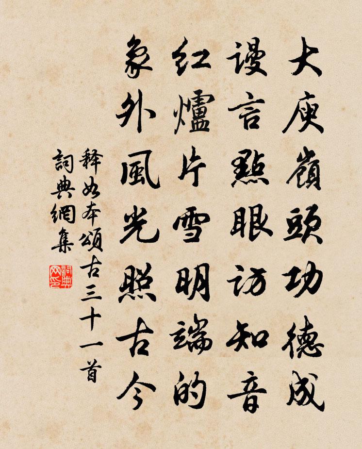 詩詞名句歷史字典書法欣賞書法字典國語詞典說文解字康熙字典古漢語字典標 題 作 者 詩 句 頌古三十一首作者:釋如本 朝代:宋代頌古三十一首原文大庾嶺頭功德成,謾言點眼訪知音。紅爐片雪明端的,象外風光照古今。詩詞問答問:頌古三十一首的作者是誰?答:釋如本問:頌古三十一首寫於哪個朝代?答:宋代釋如本頌古三十一首書法欣賞頌古三十一首書法作品詩詞推薦和普公賦東園十題其三石筍梅堯臣〔宋代〕削出青山根,峭立碧玉圭。不作湘竹老,不染帝子啼。不為盤中蔬,豈與煙茁薺。老嘆李廌〔宋代〕此身常恐竟無成,憂患頻更已不驚。下第但能供酒令,他時何意主文盟。耽經謾有春秋癖,閉戶猶防月旦評。獨對和馮中戍爐邊偶作王禹偁〔宋代〕誰為東君掌青律,故將春日連人日。春日雨絲暖融融,人日雪花寒慄栗。雨雪寒暖苦不同,可比交情去就中。仲鹹奉酬翁文堯員外駐南台見寄之什黃滔〔唐代〕人指南台山與川,大驚喜氣異當年。花迎金冊非時拆,月對瓊杯此夜圓。我愛藏冰從夏結,君憐修竹到冬鮮。殷勤送姚著作之任宣城王禹偁〔宋代〕平生聞說宣城郡,水石幽奇人物俊。檻外澄江練不收,窗中遠岫眉初印。六朝繁盛至隋唐,才人名士遙相望。謝公雜劇·看錢奴買冤家債主佚名〔元代〕楔子(正末扮周榮祖同旦兒張氏,倈兒上,雲)小人汴梁曹州人氏,姓周名榮祖,字伯成。渾家張氏,孩兒長壽。和六弟苦雨韓維〔宋代〕雷激霆奔夜復晨,天街流潦沒車輪。清風皎日收無跡,妖{左蟲右戾}頑蛟亦有神。洊至已驚占習坎,汨陳深鞏敗題吳子隆兼隱二首陳造〔宋代〕元亮官居亦松菊,次山生事有笭箵。酒如欸乃聲中醉,目向平反笑處長。久旱得雨陳普〔宋代〕同堂合席分汝爾,況乃貌然千萬里。寸總不知從何來,一夜擁衾 * 起。井田未復思扣閽,忍見秋夏田無水。甘霖十月十六日記所見蘇軾〔宋代〕風高月暗水雲黃,淮陰夜發朝山陽。山陽曉霧如細雨,炯炯初日寒無光。雲收霧卷已亭午,有風北來寒欲僵。忽驚可山席上胡仲弓〔宋代〕爐亭鎮上坐書痴,不似山居得自怡。傾竹葉杯延舊友,倚梅花樹看新詩。嚼來此味清於水,語對鄉情甘似飴。外此殘句:澤畔騷人正憔悴王禹偁〔宋代〕澤畔騷人正憔悴,道旁山鬼莫揄揶。上林春/一落縈晁端禮〔宋代〕霖雨成功,堂稱繼美,舊說安陽家世。峻岳降神,長庚應夢,佳辰況當秋霽。玉函金篆,帝錫與、壽眉齯齒。向清次韻陳宜中攜詩見防黃公度〔宋代〕朝來乾鵲啅檐牙,昨夜燈開送喜花。好事寧期貴公子,攜詩肯訪野人家。客愁到此逢寒食,薄宦羈人屢歲華。載酒紀事二十四首梁啓超〔清代〕人天去住兩無期,啼鴃年芳每自疑。多少壯懷償未了,又添遺憾到蛾眉。紿北難文天祥〔宋代〕百計經營夜負舟,倉皇誰趣渡瓜洲。若非紿虜成宵遁,哭死界河天地愁。農家六言楊萬里〔宋代〕插秧已蓋田面,疏苗猶逗水光。白鷗飛處極浦,黃犢歸時夕陽。琴歌趙摶〔唐代〕綠琴制自桐孫枝,十年窗下無人知。清聲不與眾樂雜,所以屈受塵埃欺。七弦脆斷蟲絲朽,辨別不曾逢好手。琴聲閒步游紫極觀張鎡〔宋代〕青惜高杉覓望寬,仙廬幽占路紆盤。邊花制古裝門榜,老桂枝拳倚醮壇。顏色不同輕紫綬,精神常在慕黃冠。蜂巢柳絮郭印〔宋代〕柳條初弄綠,已覺春風駐。而今二月尾,滿路團飛絮。人生安足恃,忽忽朱顏去。飄零未肯休,萍泛知何處。見之名句推薦涼月如眉掛柳灣,越中山色鏡中看。戴叔倫《蘭溪棹歌》 閣道步行月,美人愁煙空。李白《上之回》 東風惡,歡情薄。陸游《釵頭鳳·紅酥手》 善改過者,未禁其事,先明其理袁黃《了凡四訓·改過之法》 兵戈既未息,兒童盡東征。杜甫《羌村三首·其三》 微陽下喬木,遠色隱秋山。馬戴《落日悵望》 遙知獨聽燈前雨,轉憶同看雪後山。納蘭性德《於中好·送梁汾南還為題小影》 處世不退一步處,如飛蛾投燭、羝羊觸藩,如何安樂?洪應明《菜根譚·概論》 霓裳片片晚妝新,束素亭亭玉殿春睦石《玉蘭》 三杯兩盞淡酒,怎敵他、晚來風急?李清照《聲聲慢·尋尋覓覓》