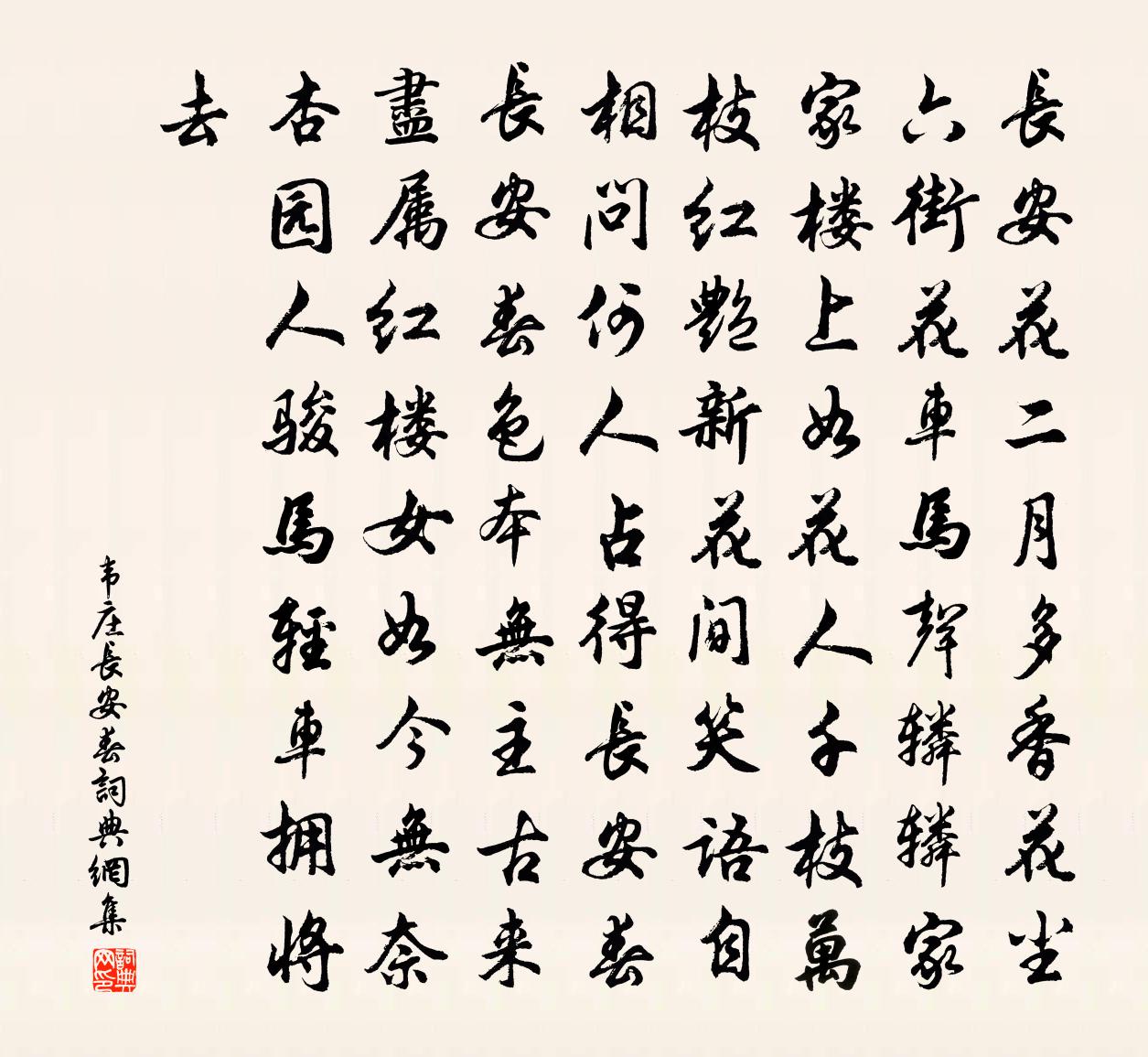 長安花二月多香花塵,六街花車馬聲轔轔。家家樓上如花人,千枝萬枝紅艷新。