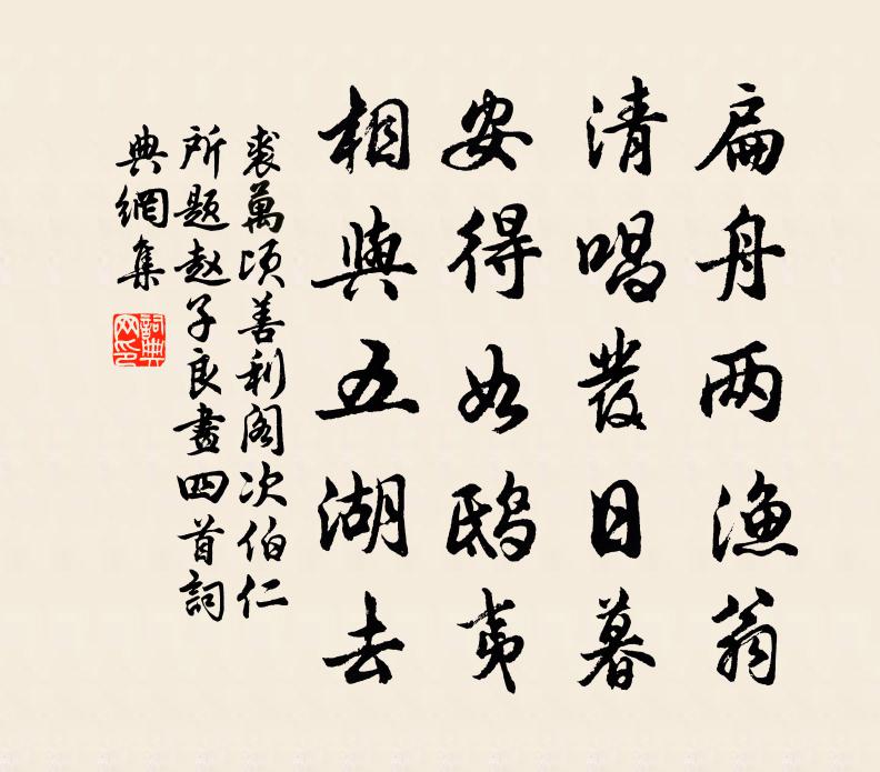 詩詞名句歷史字典書法欣賞書法字典國語詞典說文解字康熙字典古漢語字典標 題 作 者 詩 句 善利閣次伯仁所題趙子良畫四首作者:裘萬頃 朝代:宋代原文扁舟兩漁翁,清唱發日暮。安得如鴟夷,相與五湖去。詩詞問答問:《善利閣次伯仁所題趙子良畫四首》的作者是誰?答:裘萬頃問:該詩寫於哪個朝代?答:宋代書法欣賞善利閣次伯仁所題趙子良畫四首書法作品詩詞推薦寒蟬樹沈鵬〔唐代〕一葉初飛日,寒蟬益易驚。入林慚織細,依樹愧身輕。大幹時容息,喬枝或借鳴。心由飲露靜,響為逐風清。忝有五月六日夜憶往歲秋與徹師同宿(知玄法師弟子僧徹)李商隱〔唐代〕紫閣相逢處,丹岩議宿時。墮蟬翻敗葉,棲鳥定寒枝。萬里飄流遠,三年問訊遲。炎方憶初地,頻夢碧琉璃。讀史鄭俠〔宋代〕亂亡由佞舌,覽古每嗟吁。擬刻奸諛像,申明兩觀誅。寄曼叔求酒張耒〔宋代〕青衫畿丞頑不羞,三十持板拜督郵。歸來無物與消愁,典衣沽酒寒無裘。囊空酒貴不可得,縮手愁坐凝雙眸。秋風九月十五,夜月細看,桂枝北茂南缺,未經古楊萬里〔宋代〕桂樹冰輪兩不齊,桂圓不似月圓時。吳剛玉斧何曾巧,斫盡南枝放北枝。小樓陸游〔宋代〕吾州近在西山麓,雪山萬仞臨冰谷。小樓森森閱三伏,清簟疏簾對棋局。肌膚淒凜起芒粟,肝肺崢嶸疊瓊玉。香泉己酉夏偶興汪莘〔宋代〕兩燈射壁兩重光,一影俱生一影傍。假使百燈同一室,百身還只一身忙。題畫九首唐寅〔明代〕秋老芙蓉一夜霜,月光瀲灩盪湖光。漁翁穩作船頭睡,夢入鮫宮自渺茫。望江南淨圓〔宋代〕娑婆苦,終日走塵寰。不覺年光隨逝水,那堪日白髮換朱顏。六趣任循環。今與古,誰肯死前閒。危脆利名才入手常禪師荷衣沼釋梵琮〔宋代〕遇物合人仰祖風,弊衣遺在一池中。秋風吹破春風補,不犯清波一線功。和答魏道輔寄懷十首黃庭堅〔宋代〕堂堂陽元公,人物妙晉東。魏侯多能事,彷佛見家風。長魚無波濤,坐與蝦蜆同。諸山搖落盡,旅食歲時窮。次樂磧李流謙〔宋代〕客里何曾得展眉,遇逢一笑莫相違。酒濃燭暗真宜醉,風色蕭蕭愁欲歸。菩薩蠻(別恨)姚寬〔宋代〕夢中不記江南路。玉釵翠鬢驚春去。午醉晚來醒。暝煙花上輕。紅綃空浥淚。錦字憑誰寄。衫薄曖香銷。相思雲水襄州道間驟寒李曾伯〔宋代〕涉盡江湖道,嗟嗟寸步難。風敲蘆葉響,雨作菊花寒。市酒無嫌薄,征衣正怯單。家山在何許,回首路漫漫。石竹花王安石〔宋代〕退公詩酒樂華年,欲取幽芳近綺筵。種玉亂抽青節瘦,刻繒輕染絳花圓。風霜不放飄零早,雨露應從愛惜偏。已向貧客吟施肩吾〔唐代〕l6毯敝衣無處結,寸心耿耿如刀切。今朝欲泣泉客珠,及到盤中卻成血。次韻王敏仲池上張耒〔宋代〕春晚余芳尚可尋,晴雷沙岸走車音。苑分廣樂和聲度,池受晴天倒影深。席上宮花輝御醴,坐中瓊樹間瑤林。歸人定西番(高平調)張先〔宋代〕年少登瀛詞客,飄逸氣,拂晴霓。盡帶江南春色、過長淮。一曲艷歌留別,翠蟬搖寶釵。此後吳姬難見、且徘徊。頌古十一首釋有權〔宋代〕秀才覓火和煙得,長沙賣石著雲饒。欲知千佛居何土,贏得詩禪價轉高。謹所之贈王氏子陳淳〔宋代〕我贈王氏子,作此謹所之。之子何所喜,喜有近道資。妙齡正弱冠,立志已不卑。與之語則解,知弗流俗隨。今聞名句推薦寒日蕭蕭上瑣窗,梧桐應恨夜來霜。李清照《鷓鴣天·寒日蕭蕭上瑣窗》 專勝者未必克,挾疑者未必敗。范曄《後漢書·列傳·烏桓鮮卑列傳》 旌蔽日兮敵若雲,矢交墜兮士爭先。屈原《國殤》 梅片作團飛,雨外柳絲金濕。雷應春《好事近·梅片作團飛》 柳條將舒未舒,柔梢披風,麥田淺鬣寸許。袁宏道《滿井遊記》 安危在出令,存亡在所任。司馬遷《史記·楚元王世家》 林外鳴鳩春雨歇,屋頭初日杏花繁。歐陽修《田家》 颯颯東風細雨來,芙蓉塘外有輕雷。李商隱《無題·颯颯東風細雨來》 花意爭春,先出歲寒枝。辛棄疾《江神子·賦梅寄余叔良》 嘆鳳嗟身否,傷麟怨道窮。李隆基《經鄒魯祭孔子而嘆之》