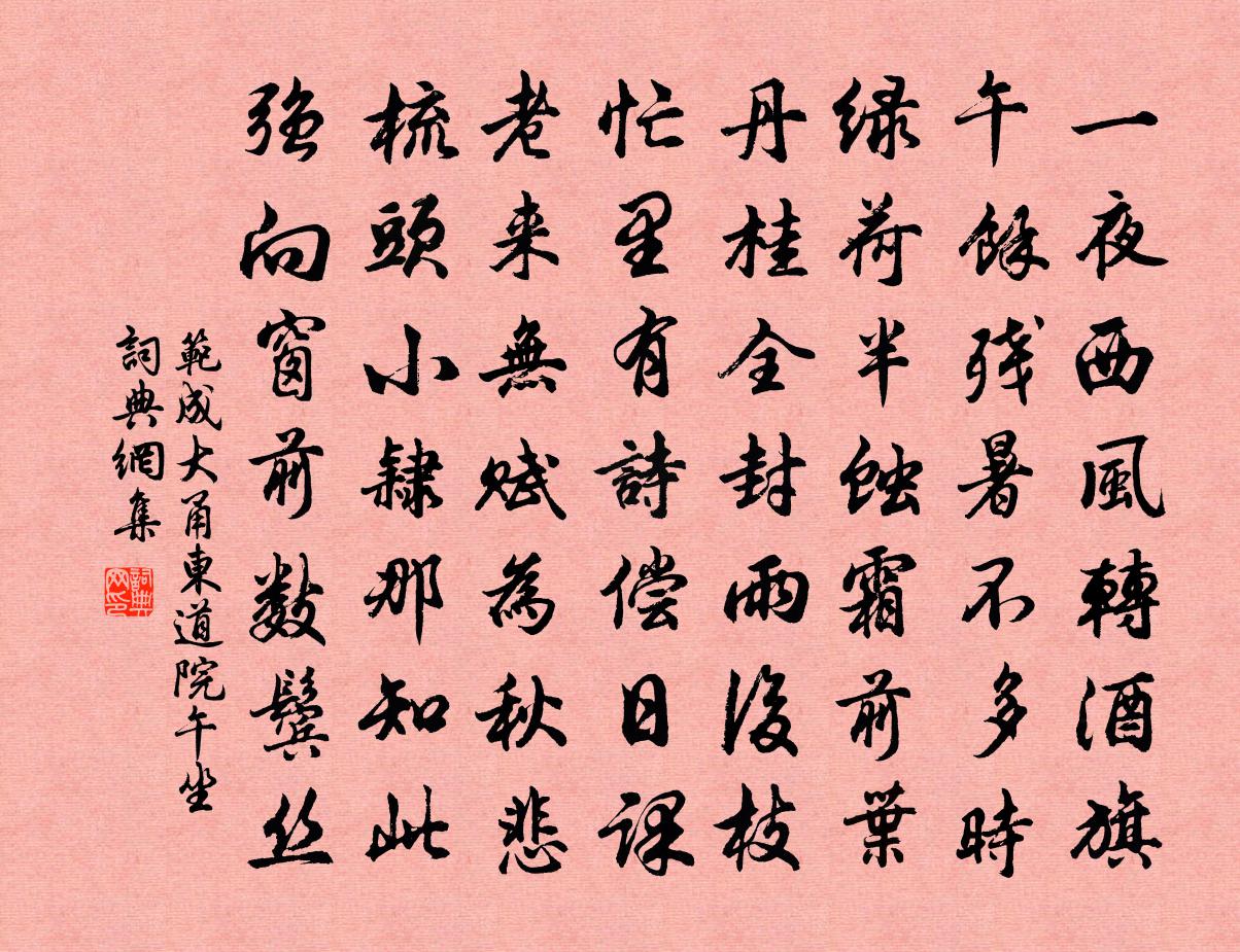 一夜西風轉酒旗,午余殘暑不多時。綠荷半蝕霜前葉,丹桂全封雨後枝。
