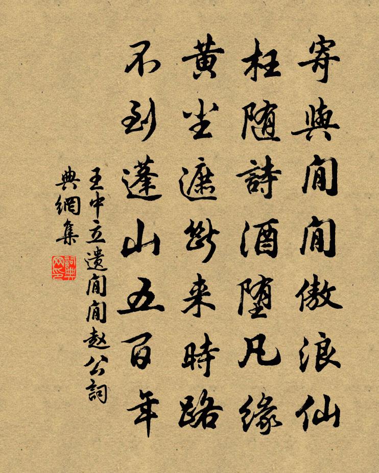 詩詞名句歷史字典書法欣賞書法字典國語詞典說文解字康熙字典古漢語字典標 題 作 者 詩 句 遺閒閒趙公作者:王中立 朝代:宋代遺閒閒趙公原文寄與閒閒傲浪仙,枉隨詩酒墮凡緣。黃塵遮斷來時路,不到蓬山五百年。詩詞問答問:遺閒閒趙公的作者是誰?答:王中立問:遺閒閒趙公寫於哪個朝代?答:宋代王中立遺閒閒趙公書法欣賞遺閒閒趙公書法作品詩詞推薦南歌子(呈葉憲)洪适〔宋代〕多病都緣老,寒陰可惜春。栽桃種竹怕因循。移轉藍輿藤杖、未開門。真率須如約,安排欲效顰。莫將箏笛損精神即席次必強六絕句李新〔宋代〕且倚東風拚酒酣,莫將食口配春蠶。還家更有無窮興,曲水飄香滿舍南。楚宮行陸游〔宋代〕漢水方城一何壯,大路並馳車百兩。軍書插羽擁修門,楚王正醉章華上。璇題藻井窮丹青,玉笙寶瑟聲冥冥。忽聞泊吳興西觀音院秦觀〔宋代〕金剎負城闉,閴然美棲止。卞山直穹窿,苕水相依倚。霜檜郁冥冥,海棕鮮薿薿。廣除庇夏陰,飛棟明朝晷。溪光興化存公作竹林新亭雪庵雪林二老同賦次韻釋寶曇〔宋代〕西舍東鄰杼軸空,道人滿腹貯清風。竹林笑指歸來路,約與禽魚一飽同。寄食有感三首周文璞〔宋代〕生平參道術,師事大茅翁。持鑰開金匱,焚香立玉童。黃麟來地上,朱鯉出江中。今在桁楊畔,依依睡晚風。攝山訪隱者張頡〔宋代〕路繞蒼山石掛藤,結廬深入白雲層。泉鳴便隔人間世,採藥知從何處僧。過龍門(春愁)史達祖〔宋代〕醉月小紅樓。錦瑟箜篌。夜來風雨曉來收。幾點落花饒柳絮,同為春愁。寄信問晴鷗。誰在芳洲。綠波寧處有蘭舟早行劉得仁〔唐代〕萬類半已動,此心寧自安。月沉平野盡,星隱曙空殘。馬渡橫流廣,人行湛露寒。還思猶夢者,不信早行難。送唐述之赴廷對魏了翁〔宋代〕快著青冥輭玉鞭,穩騎騄耳踏雲煙。便持全蜀無雙譽,去聽賓臚第一傳。眾所望君皆爾耳,人之好我豈云然。古來【雙調】新水令_閒爭奪鼎沸關漢卿〔元代〕閒爭奪鼎沸了麗春園,欠排場不堪久戀。時間相敬愛,端的怎團圓?白沒事教人笑,惹人怨。【駐馬聽】錦陣里爭圍繡亭張鎡〔宋代〕盤屈迴廊面面同,頂門開竅更神通。非關意匠玲瓏巧,示現圓融圍物功。即事陸游〔宋代〕雲起山容改,湖生浦面寬。寒鴉先雁到,烏桕後楓丹。年邁狐裝帽,時新豆搗團。非關嗜溫飽,更事耐悲歡。六言詩孔融〔兩漢〕漢家中葉道微。董卓作亂乘衰。僭上虐下專威。萬官惶布莫違。百姓慘慘心悲。寄遠陸龜蒙〔唐代〕鬢亂羞雲卷,眉空羨月生。中原猶將將,何日重卿卿?題陳宣事煙波泛宅楊時〔宋代〕忘懷纓紱寄浮居,來泛煙波擬釣徒。我欲他時清洛上,為君正櫓作鯔鯔。瑤台聚八仙(為焦雲隱賦)張炎〔宋代〕春樹江東。吟正遠、清氣竟入崆峒。問余棲處,只在縹緲山中。此去山中何所有,芰荷制了集芙蓉。且扶筇。倦遊依韻和王安之少卿見戲安之非是棄堯夫吟邵雍〔宋代〕安之殊不棄堯夫,亦恐傍人有厚誣。開叔當初言得罪,希淳在後說無辜。悄然情意都知舊,劃地杯盤又見呼。始信子夜歌(和尚友)彭元遜〔宋代〕視春衫、篋中半在,浥浥酒痕花露。恨桃李、如風過盡,夢裡故人成霧。臨潁美人,秦川公子,晚共何人語。對人招手令佚名〔唐代〕亞其虎膺,曲其松根。以蹲鴟間虎膺之下,以鉤戟差玉柱之旁。潛虬闊玉柱三分,奇兵闊潛虬一寸。死其三洛,生名句推薦應是天仙狂醉,亂把白雲揉碎。李白《清平樂·畫堂晨起》 莫道傷高恨遠,付與臨風笛。晏幾道《六么令·雪殘風信》 布衣菜飯,可樂終身沈復《浮生六記·閨房記樂》 風緊雁行高,無邊落木蕭蕭。納蘭性德《河瀆神·風緊雁行高》 行雲歸楚峽,飛夢到揚州。晁補之《臨江仙·綠暗汀洲三月暮》 寂寂柴門村落里,也教插柳記年華。趙鼎《寒食》 綠池芳草滿晴波,春色都從雨里過。高啟《春暮西園》 台榭空濛煙柳暗,白鳥銜魚欲舞。納蘭性德《摸魚兒·午日雨眺》 燈火紙窗修竹里,讀書聲。陳繼儒《浣溪沙·初夏夜飲歸》 勸我早還家,綠窗人似花。韋莊《菩薩蠻·紅樓別夜堪惆悵》