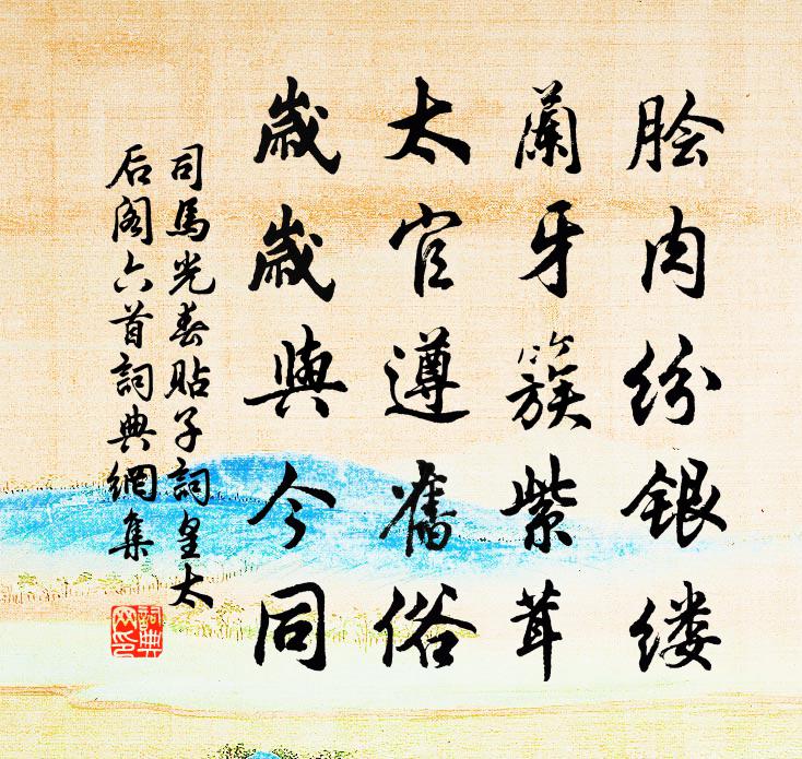 詩詞名句歷史字典書法欣賞書法字典國語詞典說文解字康熙字典古漢語字典標 題 作 者 詩 句 春貼子詞皇太后閣六首作者:司馬光 朝代:宋代春貼子詞皇太后閣六首原文膾肉紛銀縷,蘭牙簇紫茸。太官遵舊俗,歲歲與今同。詩詞問答問:春貼子詞皇太后閣六首的作者是誰?答:司馬光問:春貼子詞皇太后閣六首寫於哪個朝代?答:宋代問:司馬光的名句有哪些?答:司馬光名句大全司馬光春貼子詞皇太后閣六首書法欣賞春貼子詞皇太后閣六首書法作品詩詞推薦夜發吳城渡陳杰〔宋代〕秋風江上生,秋月渡頭明。人地籟俱寂,水天心共清。一雙斜閣櫓,二百順流程。已泊還佳寐,城頭劣四更。送惠思歸錢塘司馬光〔宋代〕孤岫平湖外,禪房老柏陰。倦遊諳濁世,獨往遂初心。夜雨燈窗迥,秋苔屐齒深。勿鋤山徑草,便有欲人尋。郭漢卿母輓詩楊萬里〔宋代〕婦節今安仰,斯人古有光。雞鳴不知雨,薺茂獨凌霜。未拜金花誥,空悲玉樹郎。藤輿簾蹙繡,無復出萱堂。安邑里中秋懷寄高員外武元衡〔唐代〕原憲素非貧,嵇康自寡慾。守道識通窮,達命齊榮辱。庭梧變蔥蒨,籬菊揚芳馥。墜葉翻夕霜,高堂瞬華燭。況茲題石上玉簪花袁說友〔宋代〕翠鈿瓊葩別樣芳,涼風微雨淡梳妝。姮娥夜半朝天闕,應有遺簪墜帝旁。卜運算元張炎〔宋代〕雅淡淺深黃,顧影敧秋雨。碧帶猶皴筍指痕,不解擎芳醑。休唱古陽關,如把相思鑄。卻憶銅盤露已乾,愁在傾心折楊柳(一作沈佺期詩)宋之問〔唐代〕玉樹朝日映,羅帳春風吹。拭淚攀楊柳,長條宛地垂。白花飛歷亂,黃鳥思參差。妾自肝腸斷,傍人那得知。次韻答王四黃庭堅〔宋代〕病懶百事廢,不惟書問疏。新詩苦招喚,是日鎖直廬。潢污深一尺,大道覆行車。晴夜遙相似,秋堂對望舒。夜對梅花示彥恭侄王偘〔宋代〕羈旅閱世紛,坐念百憂集。共子時劇談,滿懷冰雪潔。儀型誰有常,梅花靜玉立。何用對忘憂,歲寒端有益。題曾氏山園十一詠夕陽台張栻〔宋代〕日暮天無風,岸巾夕陽中。回首發遐想,明月已升東。易水歌楊維楨〔元代〕風瀟瀟,易水波,高冠送客白峨峨。馬嘶燕都夜生角,壯士悲歌刀拔削。徐娘匕,尺八銛,函中目光射匕尖。先生憶古襄州西教場打球陳郁〔宋代〕憶參元帥古襄州,幾度莎場馬打球。鞍轡鬧裝都一樣,野夫不著皂貂裘。次韻王君北都偶成三首蘇轍〔宋代〕河轉金堤近,天高魏闕新。千夫奉儒將,百獸伏麒麟。校獵沙場莫,談兵玉帳春。關南知不遠,誰試問蕃鄰。天寶朱處士相與有山水之願見送至南康作此以別之徐鉉〔唐代〕憐君送我至南康,更憶梅花庚嶺芳。多少仙山共游在,原君百歲尚康強。蔡琰歸漢圖林景熙〔宋代〕文姬別胡地,一騎輕南馳。傷哉賢王北,一騎挾二兒。二兒抱父啼,問母何所之。傍鞭屢回首,重會知無期。孰雲送館中王正言使交趾王禹偁〔宋代〕乘軺南下興何長,大半江山是故鄉。蠻府好迎天上使,朝賢不為橐中裝。犀牛出水挨銅柱,颶母扶空卸海檣。復命訴衷情佚名〔宋代〕碧天明月晃金波。清淺滯星河。深深院宇人靜,獨自問姮娥。圓夜少,缺時多。事因何。嫦娥莫是,也有別離,一自命上官統〔宋代〕官氏亘古至於今,歷派源流振家聲。吾今生爾九兄弟,各在一方以安身。人人立志守豪富,個個撐持家業均。但今魏志劉克莊〔宋代〕稱帝稱王非一個,國家不可便無孤。此言只是瞞孀幼,豈有英雄也恁愚。出塞曲賈至〔唐代〕萬里平沙一聚塵,南飛羽檄北來人。傳道五原烽火急,單于昨夜寇新秦。名句推薦湘淚淺深滋竹色,楚歌重疊怨蘭叢。李商隱《潭州》 十年舊夢無尋處,幾度新春不在家。吳文英《思佳客·癸卯除夜》 相思只在,丁香枝上,豆蔻梢頭。王雱《眼兒媚·楊柳絲絲弄輕柔》 紛紛紅紫已成塵,布穀聲中夏令新。陸游《初夏絕句》 有誰知我此時情,枕前淚共階前雨,隔個窗兒滴到明。聶勝瓊《鷓鴣天·別情》 溪雲初起日沉閣,山雨欲來風滿樓。許渾《鹹陽城東樓 / 鹹陽城西樓晚眺 / 西門》 四寸之管無當,必不滿也。授官、予爵、出祿不以功,是無當也。商鞅《商君書·靳令》 日月照之何不及此?惟有北風號怒天上來。李白《北風行》 人情若比初相識,到底終無怨恨心。馮夢龍《醒世恆言·卷一》 曉霧將歇,猿鳥亂鳴;陶弘景《答謝中書書》
