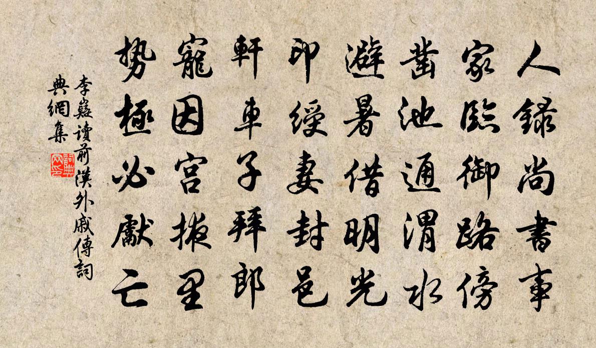 詩詞名句歷史字典書法欣賞書法字典國語詞典說文解字康熙字典古漢語字典標 題 作 者 詩 句 讀前漢外戚傳作者:李嶷 朝代:唐代讀前漢外戚傳原文人錄尚書事,家臨御路傍。鑿池通渭水,避暑借明光。印綬妻封邑,軒車子拜郎。寵因宮掖里,勢極必先亡。詩詞問答問:讀前漢外戚傳的作者是誰?答:李嶷問:讀前漢外戚傳寫於哪個朝代?答:唐代問:讀前漢外戚傳是什麼體裁?答:五律李嶷讀前漢外戚傳書法欣賞讀前漢外戚傳書法作品注釋全唐詩:卷145_6詩詞推薦洛中晴望於武陵〔唐代〕九陌盡風塵,囂囂晝復昏。古今人不斷,南北路長存。葉落上陽樹,草衰金谷園。亂鴉歸未已,殘日半前軒。西湖晚歸張良臣〔宋代〕帖帖平湖印晚天,踏歌游女錦相牽。鳳城半掩人爭路,猶有胡琴落後船。池魚祝慶夫〔宋代〕方池如鑒碧溶溶,錦鯉游揚逐浪中。竚看三春煙水暖,好觀一躍化神龍。贈悼懷太子輓歌辭二首(奉詔撰進)白居易〔唐代〕竹馬書薨歲,銅龍表葬時。永言窀穸事,全用少陽儀。壽夭由天命,哀榮出聖慈。恭聞褒贈詔,軫念在與夷。剪葉荊南詞陳維崧〔清代〕四月荊南桑柘美。泥就蠶房,雪淨無塵滓。紅帖糊門多禁忌,家家阿婦勞纖指。笑語小姑應夜起,好事今冬,早把醉落魄·詠鷹陳維崧〔清代〕寒山幾堵,風低削碎中原路。秋空一碧無今古,醉袒貂裘,略記尋呼處。男兒身手和誰賭!老來猛氣還軒舉。人間秋興九首其二擬孟郊秦觀〔宋代〕曉風有暴信,暮蟬無好聲。曉風與暮蟬,自與時節爭。獨客辭故鄉,推車謁梁城。梁城道迢虎,區區役吾生。不如鷓鴣天石孝友〔宋代〕別後應憐信息疏。西風幾度到庭梧。夜來縱有鴛鴦夢,春去空餘蛺蝶圖。煙樹遠,塞鴻孤。垂垂天影帶平蕪。憑誰酬南園新亭宴會璩新第慰慶之作,時任賓客權德輿〔唐代〕南宮煙景濃,平視中南峰。官閒似休沐,盡室來相從。日抱漢陰瓮,或成蝴蝶夢。樹老欲連雲,竹深疑入洞。歡言題明禪師西山蘭若①孟浩然〔唐代〕西山多奇狀,秀出倚前楹。停午收彩翠,夕陽照分明。吾師住其下,禪坐證無生。②結廬就嵌窟,剪竹通逕行。③僮方搗茶知予書初輟搗以待呼而戒之鄭剛中〔宋代〕頑童來聽老夫言,困至如今我欲眠。汝但閉門推客去,破茶不礙夢魂圓。望蓬萊 羅公上樹隔環牆乞詞馬鈺〔元代〕馬風子,不悟壞修行。雖在環牆居處穩,詩詞引出假聲名。惹得不安寧。夸伶俐,卻是不惺惺。自愧隱身身不密,再經蔣山與諸長老夜話齊己〔唐代〕遠跡都如雁,南行又北回。老僧猶記得,往歲已曾來。話遍名山境,燒殘黑櫟灰。無因伴師往,歸思在天台。出宿環碧劉克莊〔宋代〕逐客挑包水榭中,忽聞乾鵲噪東風。若非閩嶠安書至,即是襄州吉語通。宋江三十六贊龔開〔宋代〕乖龍混江,射之即濟。武皇雄爭,自惜神臂。從陳季張求竹竿引水入廚黃庭堅〔宋代〕井邊分水過寒廳,斬竹南溪仗友生。來釀百壺春酒味,怒流三峽夜泉聲。能令官舍庖廚潔,未減君家風月清。揮斧和胡應祥游石進韻陳文蔚〔宋代〕世間潢潦水,可嘆無根源。盈滿涸可待,驟雨空翻盆。鵝峰此邦鎮,秀潤草木繁。泄為石井泉,永與天地存。平湖大老寺竹間閣子蘇軾〔宋代〕殘花帶葉暗,新筍出林香。但見竹陰綠,不知汧水黃。樹高傾隴鳥,池浚落河魴。栽種良辛苦,孤僧瘦欲尫。夜觀蜀志黃庭堅〔宋代〕蓋世英雄不自知,暮年初志各參差。南陽隴底臥龍日,北固樽前失者時。霸主三分割天下,宗臣十倍勝曹丕。寒爐送友人游塞賈島〔唐代〕飄蓬多塞下,君見益潸然。迥磧沙銜日,長河水接天。夜泉行客火,曉戍向京煙。少結相思恨,佳期芳草前。名句推薦四體不勤,五穀不分孔子弟子《論語·微子篇》 辛勤三十日,母瘦雛漸肥。白居易《燕詩示劉叟》 其安易持,其未兆易謀;其脆易泮,其微易散。為之於未有,治之於未亂。老子《老子·德經·第六十四章》 雨余溪水掠堤平,閒看村童謝晚晴。陸游《觀村童戲溪上》 修身以敬,勿托以尊。房玄齡《晉書·列傳·第八章》 何當載酒來,共醉重陽節。孟浩然《秋登蘭山寄張五》 是節東籬菊,紛披為誰秀。杜甫《九日寄岑參》 歷冰霜、不變好風姿,溫如玉。陸容《滿江紅·詠竹》 雲橫秦嶺家何在?雪擁藍關馬不前。韓愈《左遷至藍關示侄孫湘》 活水源流隨處滿,東風花柳逐時新。于謙《觀書》