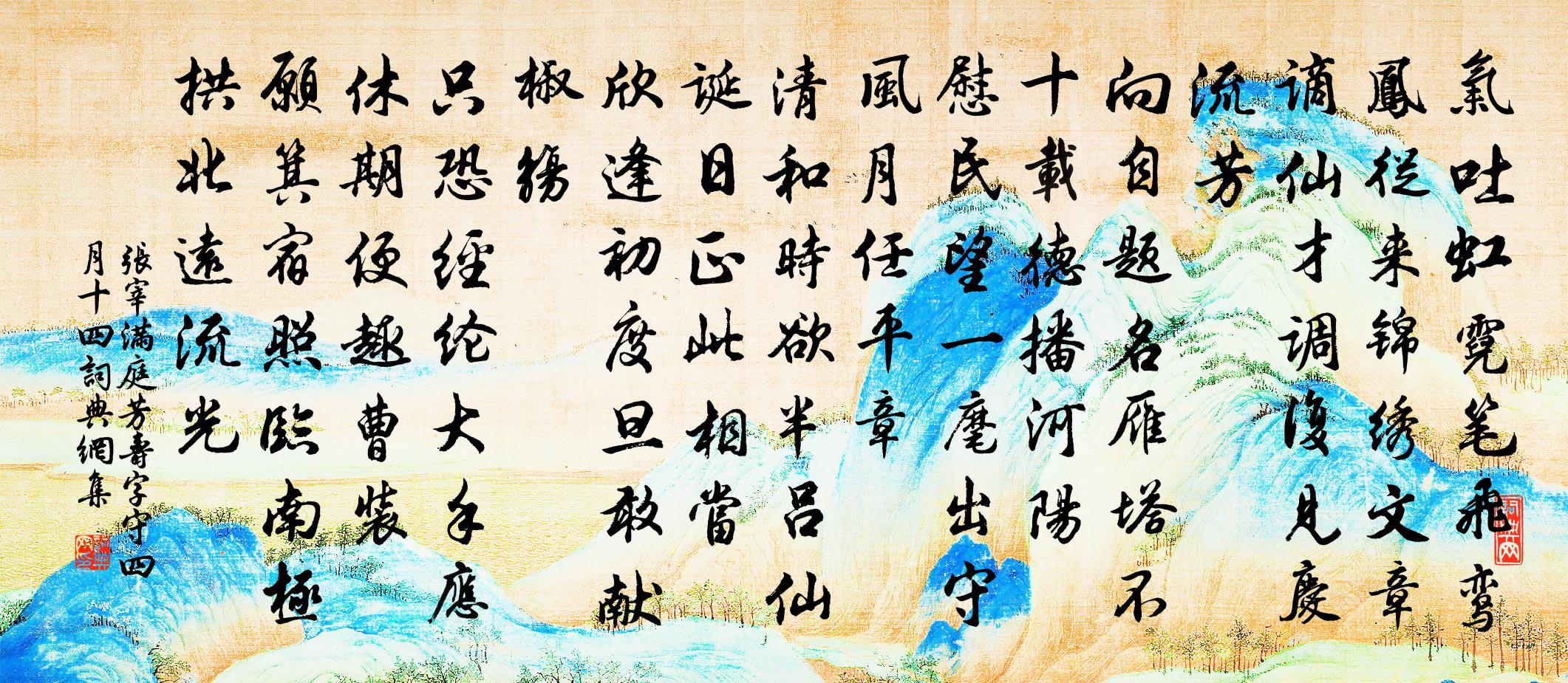 詩詞名句歷史字典書法欣賞書法字典國語詞典說文解字康熙字典古漢語字典標 題 作 者 詩 句 滿庭芳(壽字守·四月十四)作者:張宰 朝代:宋代原文氣吐虹霓,筆飛鸞鳳,從來錦繡文章。謫仙才調,復見慶流芳。向自題名雁塔,不十載、德播河陽。慰民望,一麾出守,風月任平章。清和,時欲半,呂仙誕日,正此相當。欣逢初度旦,敢獻椒觴。只恐經綸大手,應休期、便趣曹裝。願箕宿,照臨南極,拱北遠流光。詩詞問答問:《滿庭芳(壽字守·四月十四)》的作者是誰?答:張宰問:該詩寫於哪個朝代?答:宋代問:該詩是什麼體裁?答:詞書法欣賞滿庭芳(壽字守·四月十四)書法作品詩詞推薦臨化示弟子陳寡言〔唐代〕我本無形暫有形,偶來人世逐營營。輪迴債負今還畢,搔首翛然歸上清。贈別蘇軾〔宋代〕青鳥銜巾久欲飛,黃鶯別主更悲啼。殷勤莫忘分攜處,湖水東邊鳳嶺西。賢者之孝二百四十首孟武伯林同〔宋代〕父母之愛子,心乎惟疾憂。可能不自愛,而忍使親愁。真符女與申屠澄贈和詩(女和)佚名〔唐代〕琴瑟情雖重,山林志自深。常憂時節變,辜負百年心。偈頌一百二十三首釋祖欽〔宋代〕釋迦已滅,彌勒未生。於此二千年內,有法誰說,有令誰行。雲門鼻直,德山眼橫。頌古五首釋守仁〔宋代〕相逢陪酒又陪歌,醉倒家中要我駝。駝到家中猶罵詈,不知醒後又如何。柳湖感物蘇轍〔宋代〕柳湖萬柳作雲屯,種時亂插不鬚根。根如臥蛇身合抱,仰視不見蜩蟬喧。開花三月亂飛雪,過牆度水無復還。窮高玉蝴蝶花施樞〔宋代〕芳意深深掩綠苔,粉團香翅自裴回。多應又怨春歸早,化作飛花滿樹開。旅中遇故人鄭克已〔宋代〕雲薄清溪水,天寒黃葉負。鄉關三載別,客路一樽同。舊事如昨日,問年俱老翁。相看今古意,淚冷菊花叢。會昌號湘江岸有小峴亭癸卯六月與瑞金吳丞飲曾豐〔宋代〕湘水欠湘竹,峴亭非峴山。休論真勝假,且幸冗偷閒。眼底方塵外,欄乾更樹間。哢禽如語我,劇暑未能還。送賀某赴興化任陳起〔宋代〕壺山邈千里,旌旗拂搖空。是邦足文物,教宜先泮宮。嗟余病十載,置身藥裹中。追送不能遠,望望晝錦紅。送稅官仇副使詩十首熊禾〔宋代〕古來抱關人,玩世可無悶。內省既不愆,得仁又何怨。二橋圖黃文雷〔宋代〕翔龍下卷江東土,孫郎初得橋家女。橋家本自重曹瞞,只雞斗酒空酸楚。衿情正用留阿瑜,尚得人前稱肺腑。百年行次靈龕驛寄西蜀尚書薛能〔唐代〕北客推車指蜀門,乾陽知已近臨坤。從辭府郭常回首,欲別封疆更感恩。援寡聖朝難望闕,暑催蠶麥得歸村。雷公游西村陸游〔宋代〕昨夜雨多溪水渾,不妨喚渡到西村。出遊始覺此身健,無食更知吾道尊。藥笈可賒山店酒,筇枝時打野僧門。歸來陳江令宅孫元晏〔唐代〕不向南朝立諫名,舊居基在事分明。令人惆悵江中令,只作篇章過一生。送友人喪二絕陳東〔宋代〕初成大廈勢巍巍,有意於門駟馬車。未乾壁土君先已,賀燕翻隨弔鶴飛。和李子儀韻四首吳芾〔宋代〕我自吾兒病,匆匆去若逃。天寒霜似雪,山險石如刀。已得平安信,寧辭往復勞。故園歸去也,醉里甚游遨。招阮山人宿趙湘〔唐代〕初晴石路新,溪戶別無鄰。自夏評詩遍,經秋掃葉頻。拂琴堂有月,餐藥病離身。欲話因來宿,西軒只兩人。淳熙七年春帖子壽聖齊明廣慈太上皇后合六崔敦詩〔宋代〕玉壓闌乾日影長,雲窗侍女晝焚香。琅函自檢長生籙,金管時書急就章。名句推薦故國梅花歸夢,愁損綠羅裙。孔夷《南浦·旅懷》 泠泠七弦上,靜聽松風寒。劉長卿《聽彈琴》 悵望千秋一灑淚,蕭條異代不同時。杜甫《詠懷古蹟五首·其二》 誠者自成也,而道自道也。子思《中庸·第二十五章》 見侮而不鬥,辱也!公孫龍《公孫龍子·跡府》 東望鞭芙縹緲,寒光如注。劉辰翁《桂枝香· * 人去》 不看僧面看佛面。吳承恩《西遊記·第三十一回》 薄霧濃雲愁永晝,瑞腦銷金獸。李清照《醉花陰·薄霧濃雲愁永晝》 獨抱濃愁無好夢,夜闌猶剪燈花弄。李清照《蝶戀花·暖雨晴風初破凍》 不管煙波與風雨,載將離恨過江南。鄭文寶《柳枝詞》