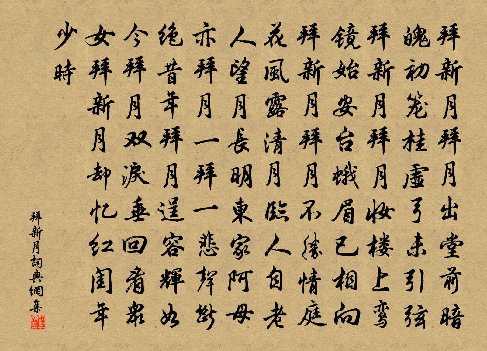 拜新月,拜月出堂前。暗魄初籠桂,虛弓未引弦。拜新月,