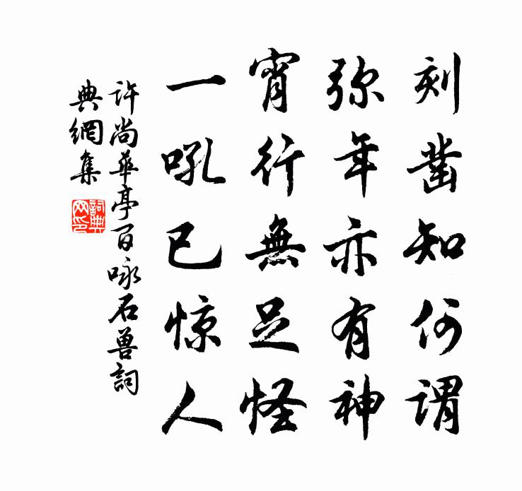 詩詞名句歷史字典書法欣賞書法字典國語詞典說文解字康熙字典古漢語字典標 題 作 者 詩 句 華亭百詠石獸作者:許尚 朝代:宋代華亭百詠石獸原文刻鑿知何謂,彌年亦有神。宵行無足怪,一吼已驚人。詩詞問答問:華亭百詠石獸的作者是誰?答:許尚問:華亭百詠石獸寫於哪個朝代?答:宋代許尚華亭百詠石獸書法欣賞華亭百詠石獸書法作品詩詞推薦逍遙詠宋太宗〔宋代〕從來教法甚分明,幾許心迷事不成。棄世經圖閒自性,精修道路必長生。寄雲巢羅椅〔宋代〕芰制荷衣不禦寒,古人持以傲羅紈。隱雖有味非中道,出本地心始耐看。釣瀨不妨侵帝坐,跨鯨何似對金鑾。先生去鄭暮次中牟宋祁〔宋代〕暮投京縣宿,氣象已紛羅。菀樹道旁密,侯田關內多。高城切星斗,秋水似天河。自問還台馬,猶餘几子珂。詠懷鄒登龍〔宋代〕洪河相綿纏,嘉宅良可卜。蒼松蔭長蹊,叢梅馥四屋。過庭白水流,飛鳴漱寒玉。游目俯靈景,抱杖委繁俗。長吟次韻李士舉丈除夕王灼〔宋代〕藜杖初防老,桃符又換新。驚回潼水夢,喜見義城春。浪走何為者,流光豈貸人。翻思大儺氏,闊步過天津。葛覃佚名〔先秦〕葛之覃兮,施於中谷,維葉萋萋。黃鳥于飛,集於灌木,其鳴喈喈。葛之覃兮,施於中谷,維葉莫莫。是刈是濩,飯後自嘲陸游〔宋代〕歲熟家彌困,天寒酒闕傾。僅能炊稻飯,敢望糝藜羹。一榻解腰臥,四廊摩腹行。詩人要疏瘦,此日媿膨脝。懷寄周靜得顧逢〔宋代〕老盡黃花梅又開,故人不見入城來。武康縣北三橋步,夜夜夢中行一回。謝荊幕孫郎中見示《樂府歌集》二十八字齊己〔唐代〕長吉才狂太白顛,二公文陣勢橫前。誰言後代無高手,奪得秦皇鞭鬼鞭。贈鳳林院海月師汪炎昶〔宋代〕早已逃俗類,從今朝始清絕。皎皎不可侵,如看海□月。雪後二首趙蕃〔宋代〕麥茁猶藏綠,梅苞尚掩紅。只言晴作病,何意雪爭功。擁褐朝慵起,扶藜晚漸通。林行語鴉舅,溪立漾鳧翁。浣溪沙賀鑄〔宋代〕不信芳春厭老人,老人幾度送餘春。惜春行樂莫辭頻。巧笑艷歌皆我意,惱花顛酒拚君真。物情惟有醉中真。年老逢春十三首邵雍〔宋代〕年老逢春莫厭春,住家況復在天津。既將水竹為生計,須與風花作主人。故宅費功除瓦礫,新畦加意種蘭薰。未知約游曾參政西墅病不能去戴復古〔宋代〕骨肉去家遠,異鄉童僕親。老身渾賴汝,久病亦愁人。無暇游西墅,尋醫訪北辰。主翁翻作使,奔走莫勞神。和張文裕安寒十首司馬光〔宋代〕何處初寒好,初寒噴玉泉。折水流谷口,飛溜落雲邊。雀噪聚林杪,樵歌下石巔。尋幽不思返,坐嘯夕陽偏。泊舟臨平二首楊萬里〔宋代〕前窗向市下卻簾,後窗臨水開卻門。岸頭楊柳報春動,溪底雲天隨浪翻。隔溪數間黃草屋,繞屋千竿翠瓊竹。三老黃龍三關釋慧開〔宋代〕我腳何似驢腳,未舉步時踏著。一任四海橫行,倒跨楊岐三腳。書堂嶼沈遼〔宋代〕蒼山古木書堂嶼,北出湘水百餘步。誰為往來虧世界,至今人指安禪處。豈無驚蛇與飛鳥,後來那復知其趣。不知採桑子晏幾道〔宋代〕花前獨占春風早,長愛江梅。秀艷清杯,芳意先愁鳳管催。尋香已落閒人後,此恨難裁。更晚須來,卻恐初開勝未晨坐齋中偶而成詠張九齡〔唐代〕寒露潔秋空,遙山紛在矚。孤頂乍修聳,微雲復相續。人茲賞地偏,鳥亦愛林旭。結念憑幽遠,撫躬曷羈束。仰霄名句推薦多情只有春庭月,猶為離人照落花。張泌《寄人》 不怕風狂雨驟,恰才稱,煮酒箋花。李清照《轉調滿庭芳·芳草池塘》 槐葉初勻日氣涼,蔥蔥鼠耳翠成雙。范成大《夏日田園雜興》 笑指吾廬何處是?一池荷葉小橋橫。陳繼儒《浣溪沙·初夏夜飲歸》 君歌楊叛兒,妾勸新豐酒。李白《楊叛兒》 與君別。相思一夜梅花發。房舜卿《憶秦娥·與君別》 治則衍及百姓,亂則不足及王公。荀子《荀子·君道》 黃河曲里沙為岸,白馬津邊柳向城。高適《夜別韋司士》 俄而未霰零,密雪下。謝惠連《雪賦》 落絮無聲春墮淚,行雲有影月含羞。吳文英《浣溪沙·門隔花深夢舊遊》