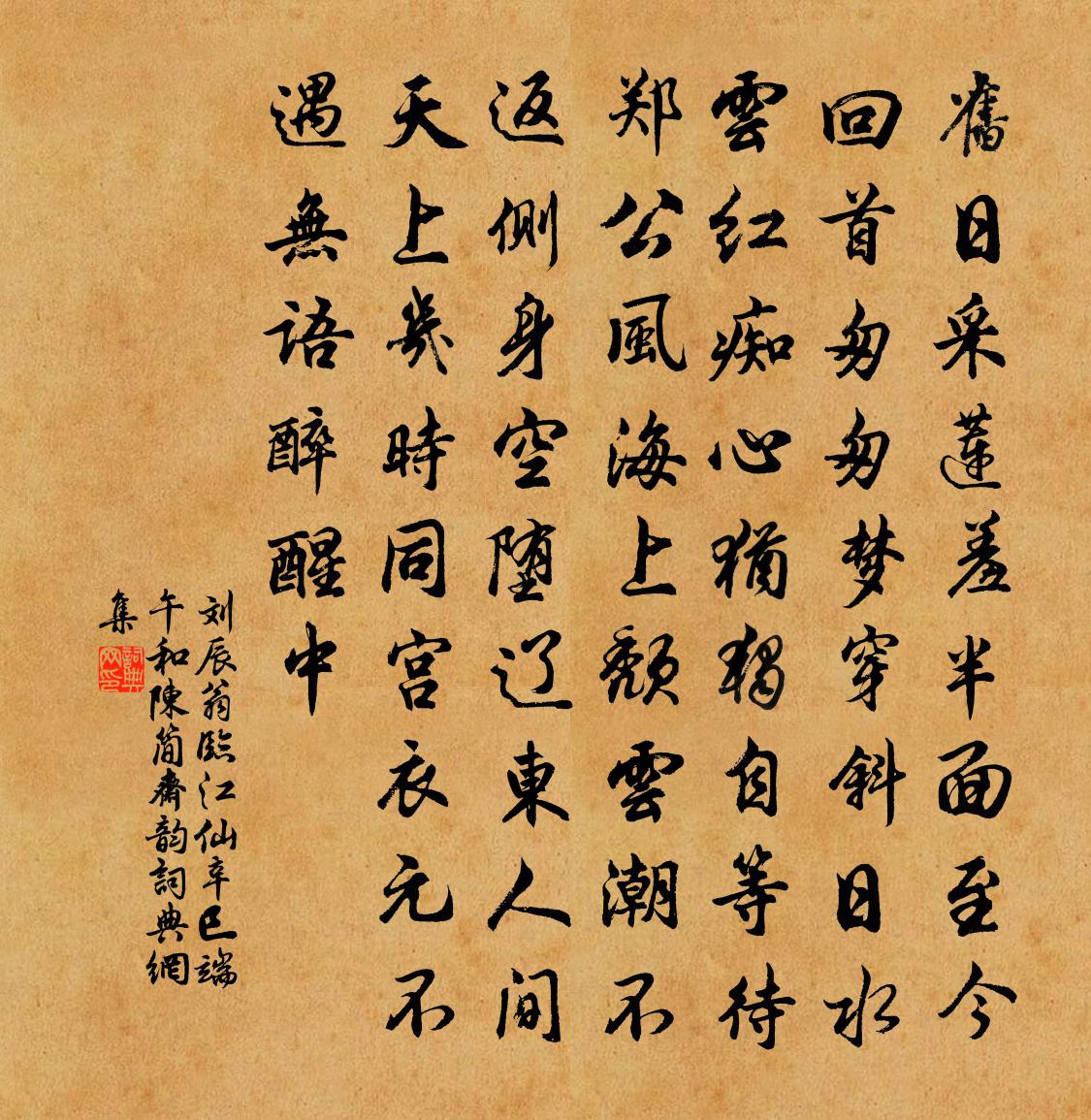 舊日採蓮羞半面,至今回首匆匆。夢穿斜日水雲紅。痴心猶獨自,等待鄭公風。