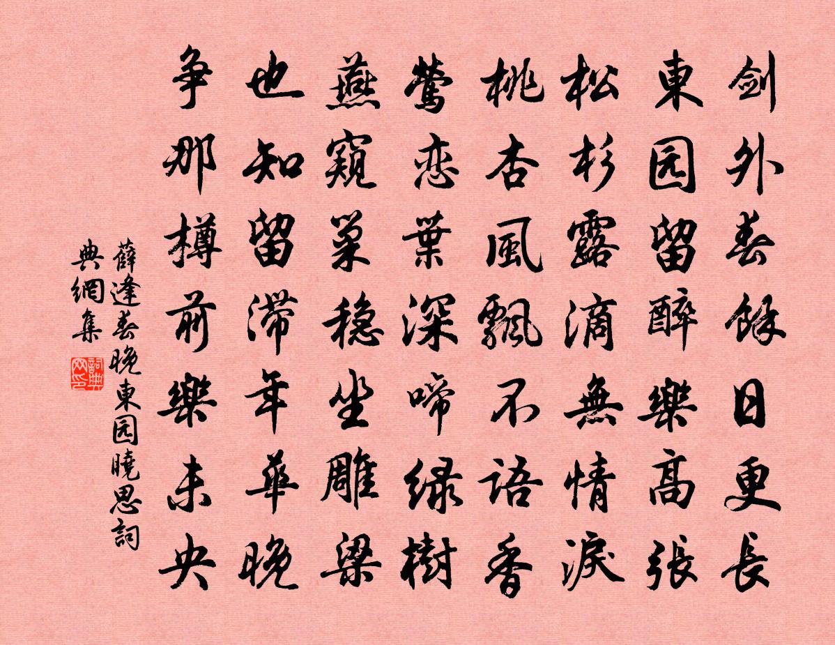 詩詞名句歷史字典書法欣賞書法字典國語詞典說文解字康熙字典古漢語字典標 題 作 者 詩 句 春晚東園曉思作者:薛逢 朝代:唐代春晚東園曉思原文劍外春余日更長,東園留醉樂高張。松杉露滴無情淚,桃杏風飄不語香。鶯戀葉深啼綠樹,燕窺巢穩坐雕梁。也知留滯年華晚,爭那樽前樂未央。詩詞問答問:春晚東園曉思的作者是誰?答:薛逢問:春晚東園曉思寫於哪個朝代?答:唐代問:春晚東園曉思是什麼體裁?答:七律薛逢春晚東園曉思書法欣賞春晚東園曉思書法作品注釋全唐詩:卷548-59詩詞推薦瑞鷓鴣 示眾尹志平〔元代〕論道談禪斗捷機。朦朧合眼便昏迷。貪名競利心猶在,損己安人行豈知。益友不侵賢聖遠,良朋難近虎狼隨。一朝遊絲雍裕之〔唐代〕遊絲何所似,應最似春心。一向風前亂,千條不可尋。岸貧梅堯臣〔宋代〕無能事耕穫,亦不有雞豚。燒蚌曬槎沫,織蓑依樹根。野蘆編作室,青蔓與為門。稚子將荷葉,還充犢鼻裩。南華寺五首李昴英〔宋代〕從前梵說墮虛空,獨有壇經說不同。體用圓明皆寶相,一丁不識卻心通。松江晚泊吳融〔唐代〕吳台越嶠兩分津,萬萬檣烏簇夜雲。吟盡長江一江月,更無人似謝將軍。偈頌五十一首釋道沖〔宋代〕古釋迦不先,今彌勒不後。禮拜燒香一線通,從教笑破衲僧口。夜起文天祥〔宋代〕夢破東窗月半明,此身雖在只堪驚。一春花里離人淚,萬里燈前故國情。龍去想應回海島,雁飛猶未出江城。客愁薄倖·青樓春晚呂渭老〔宋代〕青樓春晚。晝寂寂、梳勻又懶。乍聽得、鴉啼鶯弄,惹起新愁無限。記年時、偷擲春心,花間隔霧遙相見。便角枕學圃黎廷瑞〔宋代〕西園藝我麻,南園樹我桑。東風吹時雨,青青久成行。春服朝猶賒,大布冬可裳。十年湖海役,塵暗貂裘黃。曾無曉出兜率寺送許耀卿二首楊萬里〔宋代〕天竺興雲線許長,須臾遮盡眾蒼蒼。何如灑作千峰雨,乞與都城六月涼。出伏後風雨頓涼有感三首張耒〔宋代〕殘暑扇中盡,新涼枕上歸。微雲起平遠,空碧上朝曦。稍感夏衣薄,漸傷高葉稀。來鴻飛集喜,卒歲稻粱肥。己酉生日敬次靖節先生掇輓歌辭三首葉茵〔宋代〕自古皆有死,載歌酹清觴。嗟予早失怙,艱阻亦備嘗。母兮歲六十,終古青松傍。陟岡慟伯氏,忘簪悲孟光。後波落花十絕馮時行〔宋代〕枝頭日日候韶妍,百舌聲中又隔年。莫道山翁無思緒,見人踏著便悽然。溪上偶成二首葉茵〔宋代〕新月試新晴,扁舟夜奔程。咿啞千萬意,曖乃兩三聲。熟識旅中事,生嫌世上情。願為山簡醉,休問伯夷清。避寇上唐台山貫休〔唐代〕蒼黃緣鳥道,峰脅見樓台。檉桂香皆滴,煙霞濕不開。僧高眉半白,山老石多摧。莫問塵中事,如今正可哀。鴻溝許渾〔唐代〕相持未定各為君,秦政山河此地分。力盡烏江千載後,古溝芳草起寒雲。金人捧露盤(水仙花)高觀國〔宋代〕夢湘雲,吟湘月,吊湘靈。有誰見、羅襪塵生。凌波步弱,背人羞整六銖輕。娉娉裊裊,暈嬌黃、玉色輕明。香心自和梅堯臣〔宋代〕陶公種五柳,華氏戲五禽。達性與養生,共得古人心。佳果能御暑,致之意何深。河朔存故事,助飲莫憚斟。酬馮監拜昭陵回途中遇雨見示權德輿〔唐代〕之子共乘軺,清秋拜上霄。曙霞迎夙駕,零雨濕回鑣。甘谷行初盡,軒台去漸遙。望中猶可辨,耘鳥下山椒。即事三首劉克莊〔宋代〕陌上鳴鉦夜向晨,綴行花錦照城闉。湔裙未免多游女,舍耒深憂有惰民。史載孝娥今列祀,騷雲帝子沒為神。臘儺名句推薦岸容待臘將舒柳,山意沖寒欲放梅。杜甫《小至》 以力服人者,非心服也,力不贍也;以德服人者,中心悅而誠服也。孟子《孟子·公孫丑章句上·第三節》 正是浴蘭時節動。菖蒲酒美清尊共。歐陽修《漁家傲·五月榴花妖艷烘》 艷歌餘響,繞雲縈水蘇軾《水龍吟·黃州夢過棲霞樓》 弱冠弄柔翰,卓犖觀群書。左思《詠史八首·其一》 何處可為別,長安青綺門。李白《送裴十八圖南歸嵩山二首》 相馬失之瘦,相士失之貧。司馬遷《史記·滑稽列傳》 林中有奇鳥,自言是鳳凰。阮籍《詠懷八十二首·其七十九》 青春須早為,豈能長少年。孟郊《勸學》 屋漏在上,知之在下。姚察、姚思廉《梁書·本紀·卷三》