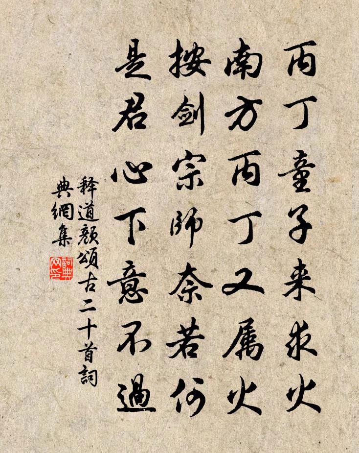 詩詞名句歷史字典書法欣賞書法字典國語詞典說文解字康熙字典古漢語字典標 題 作 者 詩 句 頌古二十首作者:釋道顏 朝代:宋代頌古二十首原文丙丁童子來求火,南方丙丁又屬火。按劍宗師奈若何,是君心下意不過。詩詞問答問:頌古二十首的作者是誰?答:釋道顏問:頌古二十首寫於哪個朝代?答:宋代釋道顏頌古二十首書法欣賞頌古二十首書法作品詩詞推薦朱郎元章以予不得宮觀與諸侄有唱和見寄攬之晁說之〔宋代〕狂醉何為號八仙,三郎宮裡亦頹然。呼山絳節方無數,犯闕紅旗自有緣。便醉攜家船上去,已輸傍舍瓮頭眠。箕南晚春溪行宋伯仁〔宋代〕青山數里一溪橫,片片段預告邊舞燕輕。耕遍水田新雨足,晴天曉色柳風清。奉和王世弼寄上七兄先生用其韻黃庭堅〔宋代〕宮槐弄黃黃,蓮葉綠婉婉。時同二三友,竹軒涼夏晚。駕言都城南,以望徵車返。何知苦淹回,及此秋景短。愁思蝶戀花·準擬春來消寂納蘭性德〔清代〕準擬春來消寂寞。愁雨愁風,翻把春擔閣。不為傷春情緒惡,為憐鏡里顏非昨。畢竟春光誰領略。九陌緇塵,抵死甑山趙友直〔宋代〕湖心一凸起金巒,舉目渾如甑底看。偃月蒼松多少松,敲風翠竹兩三竿。石頭苔蘚痕常濕,葉底楊梅味帶酸。誰學守歲應制沈佺期〔唐代〕南渡輕冰解渭橋,東方樹色起招搖。天子迎春取今夜,王公獻壽用明朝。殿上燈人爭烈火,宮中侲子亂驅妖。宜將憶王孫 自詠王丹桂〔元代〕云何便會做痴憨。只為番番世事諳。度日隨緣不外貪。處雲庵。渴飲贈無相禪師羅隱〔唐代〕人人盡道事空王,心裡忙於市井忙。惟有馬當山上客,死門生路兩相忘。福昌官舍後絕句十首張耒〔宋代〕臥聽堂南布穀鳴,隴頭細麥已青盈。殷勤謝汝催春種,我為無田豈懶耕。十六觀經頌華座觀第七釋遵式〔宋代〕七想蓮華妙台座,廣大彌陀願力成。作此想時心不亂,定當極樂國中生。三和劉克莊〔宋代〕高虛早被方心誤,老退差賢曲學阿。私謚勿煩禮官議,自詩堪付挽郎歌。無衾覆首留名遠,有鍤隨身覺事多。典午滿江紅蘇軾〔宋代〕遇東坡於齊安。怪其豐暇自得。余問之,曰:吾再娶柳氏,三日而去官。吾固不戚戚,而憂柳氏不能忘情於進退也題趙氏曉山黎廷瑞〔宋代〕旦氣炯清明,曙色淡空淨。悠然見青山,盡見天地性。長相思佚名〔宋代〕繡停針。淚盈盈。斷腸梁燕語聲頻。奉酬鹽倉李丈金橘銀魚之什釋文珦〔宋代〕為有風流賀季真,道齋從此往來頻。錦囊牙軸詩千卷,金橘銀魚酒一巡。見我每呼蓮社客,看君還是竹林人。有時朝中措(聞鶯)李石〔宋代〕飄飄仙袂縷黃金。相對弄清音。幾度教人誤聽,當窗綠暗紅深。一聲夢破,槐陰轉午,別院深沈。試問綠楊南陌,新涼五言呈尤延之楊萬里〔宋代〕暑極無可增,夏余亦復幾。幽人暍欲臘,日日望秋至。秋至涼不隨,夏去熱未已。一夕睡美余,秋從簟波起。新涼二月十五日酴醾洞醉中陳著〔宋代〕木香架下春未饒,累累叢蕤方弄嬌。含香不吐有時發,只須十日晴光牢。滿腔醞藉固有在,花心雅欲投金焦。逐時酒醒元稹〔唐代〕飲醉日將盡,醒時夜已闌。暗燈風焰曉,春席水窗寒。未解縈身帶,猶傾墜枕冠。呼兒問狼藉,疑是夢中歡。游延福寺趙曾頀〔宋代〕行行出西郊,稍覺囂塵遠。風景既已殊,磽确頗忘倦。南安古雄州,今亦壯哉縣。九日一佳景,居然在郊甸。地高名句推薦重到故鄉交舊少,淒涼。卻恐它鄉勝故鄉。陸游《南鄉子·歸夢寄吳檣》 前年過代北,今歲往遼西薛道衡《昔昔鹽》 鳥無聲兮山寂寂,夜正長兮風淅淅。李華《弔古戰場文》 悠悠洛陽道,此會在何年。陳子昂《春夜別友人二首·其一》 鄂王墳上草離離,秋日荒涼石獸危。趙孟頫《岳鄂王墓》 晴風初破凍,柳眼梅腮,已覺春心動。李清照《蝶戀花·暖雨晴風初破凍》 梅以曲為美,直則無姿;龔自珍《病梅館記》 其出不出,間不容髮。班固《漢書·傳·賈鄒枚路傳》 銜霜當路發,映雪擬寒開。何遜《詠早梅 / 揚州法曹梅花盛開》 微雨如酥,草色遙看近卻無。蘇軾《減字木蘭花·鶯初解語》
