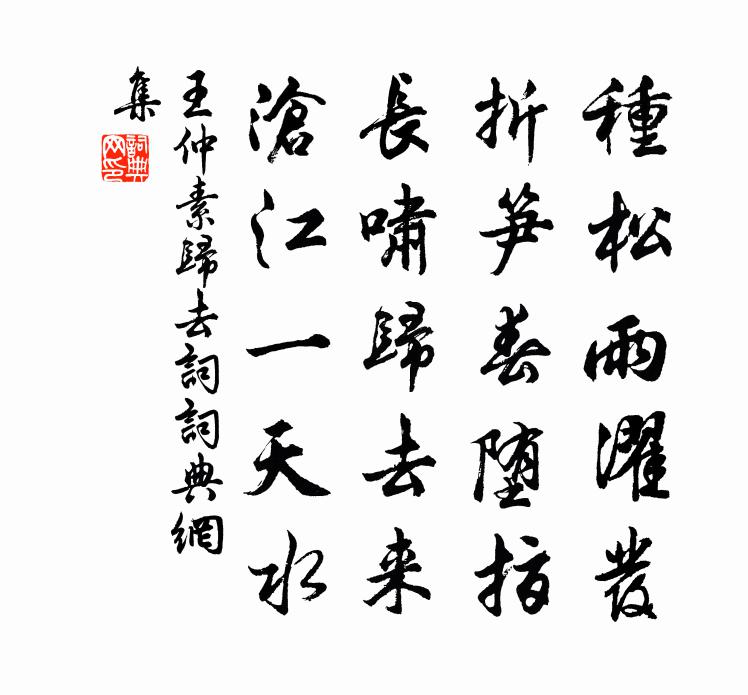 詩詞名句歷史字典書法欣賞書法字典國語詞典說文解字康熙字典古漢語字典標 題 作 者 詩 句 歸去詞作者:王仲素 朝代:宋代歸去詞原文種松雨濯發,折筍春墮指。長嘯歸去來,滄江一天水。詩詞問答問:歸去詞的作者是誰?答:王仲素問:歸去詞寫於哪個朝代?答:宋代王仲素歸去詞書法欣賞歸去詞書法作品詩詞推薦賢者之孝二百四十首江泌林同〔宋代〕菜心且不食,親念一何深。為爾有生意,存吾不忍心。減字木蘭花向子諲〔宋代〕斜紅翠疊。何許花神來獻瑞。粲粲裳衣。割得天孫錦一機。真香妙質。不耐世間風與日。著意遮圍。莫放春光造次題白苹亭王炎〔宋代〕得句柳刺史,築亭顏魯公。二賢雖異代,千古有遺風。苕水永不盡,苹洲今半空。老懷多感慨,訪古意無窮。寒梅於石〔宋代〕閉門一卷易,風定縷香凝。落葉空階雨,殘梅閣硯冰。鳥啼深夜語,犬吠隔籬燈。不作紅塵夢,寒窗幾曲肱。截樹白居易〔唐代〕種樹當前軒,樹高柯葉繁。惜哉遠山色,隱此蒙籠間。一朝持斧斤,手自截其端。萬葉落頭上,千峰來面前。忽似夜坐觀書廖行之〔宋代〕風露氣淒清,秋堂燈火夕。開編對聖賢,窮理貫今昔。豈無侯門裾,俛仰無顏色。豈無終南路,矯詐虧名實。萃耕弄筆吟邵雍〔宋代〕人生所貴有精神,既有精神卻不純。弄假像真終是假,將勤補拙總輸勤。因飢得飽飽猶病,為病求安安未真。人誤午晴試筆陸游〔宋代〕葉脫園林夜夜霜,風和巷陌日猶長。軒車但怪容孤鶴,稊米安能盆太倉。此去得非窮李廣,向來元是老馮唐。明窗感詠十解寄呈楊安撫白玉蟾〔宋代〕身如雲樣輕,心似月兮皎。何物堪贈居,一顆安期棗。李總乾遺詩十四句師於一句之下加頌七句釋印肅〔宋代〕靜坐取片時,妄想自家知。心口兩不同,修行不透機。明朝與後日,作個野狐狸。困果全不落,百丈一言迷。方寺丞新第二首劉克莊〔宋代〕一生不蓄買田錢,華屋何心亦偶然。客至多逢僧在坐,釣歸惟許鶴隨船。按行花木皆僚友,主掌湖山即事權。京洛漁家傲(石夷仲一姬去,念之,止小妓燕燕)朱敦儒〔宋代〕鑒水稽山塵不染。歸來賀老身強健。有客跨鯨游汗漫。留羽扇。玉船取酒青鸞勸。莫恨飛花容易散。仙家風味何曾驀山溪(天穿節和朱刑掾二首)葛勝仲〔宋代〕望雲門外。油壁如流水。空巷逐朱幡,步春風、香河七里。冶容炫服,摸石道宜男,穿翠靄,度飛橋,影在清漪里雨行梅關二首李昴英〔宋代〕濃嵐西合凍雲痴,水墨連屏斗崛奇。沖雨此行風景別,滿山翠滴水簾垂。鷓鴣天(宋子淵生日)管鑒〔宋代〕富貴樓台玉琢成。更移玉節下西清。才高不數梅花賦,笑拈瓊苞泛壽觥。蓮幕靜,寶香凝。春風和氣自然生。要知上李吉甫相公王建〔唐代〕聖朝齊賀說逢殷,霄漢無雲日月真。金鼎調和天膳美,瑤池沐浴賜衣新。兩河開地山川正,四海休兵造化仁。曾向贈別李端叔黃庭堅〔宋代〕我觀江南山,如目不受垢。憶食江南薇,子獨於我厚。在北思江山,如懷冰雪顏。千峰上雲雨,岑絕何由攀。當時題慈感寺極目軒李洪〔宋代〕紅芰敷腴獻笑,青山偃蹇橫陳。身在水晶宮裡,須信羲皇上人。頌古釋道顏〔宋代〕網中跳出便飛騰,好個天然俊衲僧。何似當初未入網,悟來方始是知音。減字木蘭花 秋陽道友見過尹志平〔元代〕金波玉液。除卻媯川無處覓。玉液金波。一飲能教五氣和。還丹大藥。服了令人常快樂。大藥還丹。福薄眾生要見名句推薦浮雲一別後,流水十年間。韋應物《淮上喜會梁川故人 / 淮上喜會梁州故人》 桃花落。閒池閣。山盟雖在,錦書難托。陸游《釵頭鳳·紅酥手》 瀚海闌乾百丈冰,愁雲慘澹萬里凝。岑參《白雪歌送武判官歸京》 一晌凝情無語,手捻梅花何處。王之道《如夢令·一晌凝情無語》 黃雲萬里動風色,白波九道流雪山。李白《廬山謠寄盧侍御虛舟》 醉別復幾日,登臨遍池台。李白《魯郡東石門送杜二甫》 舉杯互敬屠蘇酒,散席分嘗勝利茶。 * 《元旦口占用柳亞子懷人韻》 無半點閒愁去處,問三生醉夢何如。喬吉《折桂令·七夕贈歌者》 相思處、青年如夢,乘鸞仙闕。文天祥《滿江紅·和王夫人滿江紅韻以庶幾後山妾薄命之意》 一種青山秋草里,路人唯拜漢文陵許渾《途經秦始皇墓》