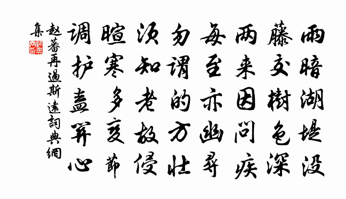 詩詞名句歷史字典書法欣賞書法字典國語詞典說文解字康熙字典古漢語字典標 題 作 者 詩 句 再過斯遠作者:趙蕃 朝代:宋代再過斯遠原文雨暗湖堤沒,藤交樹色深。兩來因問疾,每至亦幽尋。勿謂的方壯,須知老故侵。暄寒多變節,調護盍關心。詩詞問答問:再過斯遠的作者是誰?答:趙蕃問:再過斯遠寫於哪個朝代?答:宋代趙蕃再過斯遠書法欣賞再過斯遠書法作品詩詞推薦送李審之桂州謁中丞叔戴叔倫〔唐代〕知音不可遇,才子向天涯。遠水下山急,孤舟上路賒。亂雲收暮雨,雜樹落疏花。到日應文會,風流勝阮家。刈麥范成大〔宋代〕麥頭熟顆已如珠,小厄惟憂積雨余。丐我一晴天易耳,十分終惠莫乘除!念奴嬌佚名〔宋代〕東君試手,向南枝著意,爭先時節。縱有丹青誰便忍,輕點肌膚冰雪。色借瓊瑰,香分蘭麝,元自標孤潔。沖寒獨重陽後,半月天氣溫麗,忽變奇寒,晦日大雪范成大〔宋代〕狂飆吹小春,刮面劇劍鋩。雲氣潑濃墨,午窗變曛黃。六花大如掌,浩蕩來無鄉。青女正熟睡,不記行新霜。寒暑歲晚言懷陳造〔宋代〕病在歲雲除,相羊小古渠。連朝無出日,進藥止觀書。舊苦將迎困,新慚誦說疎。官曹不事事,世恐誚相如。春寒陳與義〔宋代〕二月巴陵日日風,春寒未了怯園公。海棠不惜胭脂色,獨立濛濛細雨中。和晚菊三首廖行之〔宋代〕覉寓窮秋幾許清,晚芳猶爾亦何榮。東籬舊豈論餘子,三徑今應愧老成。氣吐耐堪供飲興,登臨那得廁群英。節華次韻楊僉判室中竹枝項安世〔宋代〕懶龍入戶養慵枝,罷枝聽風雨卻聽詩。頭角不爭雲雨會,精神如畏雪霜欺。莫教手畫手流傅去,生怕時人取次和。賦黃香梅絕句八首正月二十三作時築樓居將就李壁〔宋代〕天留孤 * 青春,橫目何人解識真。蒸栗琢成渠不愛,內間梔貌幾番新。席上信筆六首李彌遜〔宋代〕春眠不覺夜來風,桃萼猶沾未盡紅。愁絕小湖山畔路,同雲疏雨晚濛濛。次韻酬李黃山衛宗武〔宋代〕吾儒何所事,讀書而挾策。君才郄林枝,靈根芳正發。筆下富詞藻,雲錦自天落。英英光岳氣,灑灑冰雪魄。中秋自馬當而上至壺口三鍾石蒼崖壁立下瞰層淵湍楊冠卿〔宋代〕千崖削蒼壁,萬仞臨深淵。老翁立其傍,習慣若自然。笑歌驚波瀾,步武生雲煙。我欲從之游,結茅山之巔。舉瓢白雲泉范成大〔宋代〕龍頭高啄嗽飛流,玉醴甘渾乳氣浮。捫腹煮泉烹斗胯,真成騎鶴上揚州。浣溪沙(題星洲寺)吳儆〔宋代〕十里青山溯碧流。夕陽沙晚片帆收。重重煙樹出層樓。人去人來芳草渡,鷗飛鷗沒白蘋洲。碧梧翠竹記曾游。勸農六首張嵲〔宋代〕春泥滑滑不須愁,勉事深耕定有秋。沓障東南知更好,歸來頻上郡城樓。浣溪沙晏殊〔宋代〕宿酒才醒厭玉卮。水沈香冷懶熏衣。早梅先綻日邊枝。寒雪寂寥初散後,春風悠揚欲來時。小屏閒放畫簾垂。次韻李長卿趙善應〔宋代〕一別芳洲不計年,舊時攀折柳依然。故人似欲撩計興,賸折梅花向酒邊。已亥出南康宮伯稱以詩贈行次韻三首李呂〔宋代〕誰憐甲子混泥塗,老鈍何能展壯圖。方恨此行垂橐去,辱君贈句當駢珠。驚雷聚雨陽枋〔宋代〕方公桃節筍班中,問學心旌日夜東。時序催人煙水遠,臨流願借一帆風。陽羨雜詠十九首。含桃圃陸希聲〔唐代〕小圃初晴風露光,含桃花發滿山香。看花對酒心無事,倍覺春來白日長。名句推薦又有牆頭千葉桃,風動落花紅蔌蔌。元稹《連昌宮詞》 半夜倚喬松,不覺滿衣雪。孟郊《苦寒吟》 不似當時,小橋沖雨,幽恨兩人知。周邦彥《少年游·朝雲漠漠散輕絲》 有情芍藥含春淚,無力薔薇臥曉枝。秦觀《春日》 豈知民力艱,顆米皆琳琅。黃燮清《秋日田家雜詠》 柳帶搖風漢水濱,平蕪兩岸爭勻。牛希濟《臨江仙·柳帶搖風漢水濱》 賢而多財,則損其志;愚而多財,則益其過。司馬光《資治通鑑·漢紀·漢紀十七》 嬌艷輕盈香雪膩,細雨黃鶯雙起。張泌《滿宮花·花正芳》 峨眉山月半輪秋,影入平羌江水流。李白《峨眉山月歌》 要問相思,天涯猶自短。晏幾道《清商怨·庭花香信尚淺》