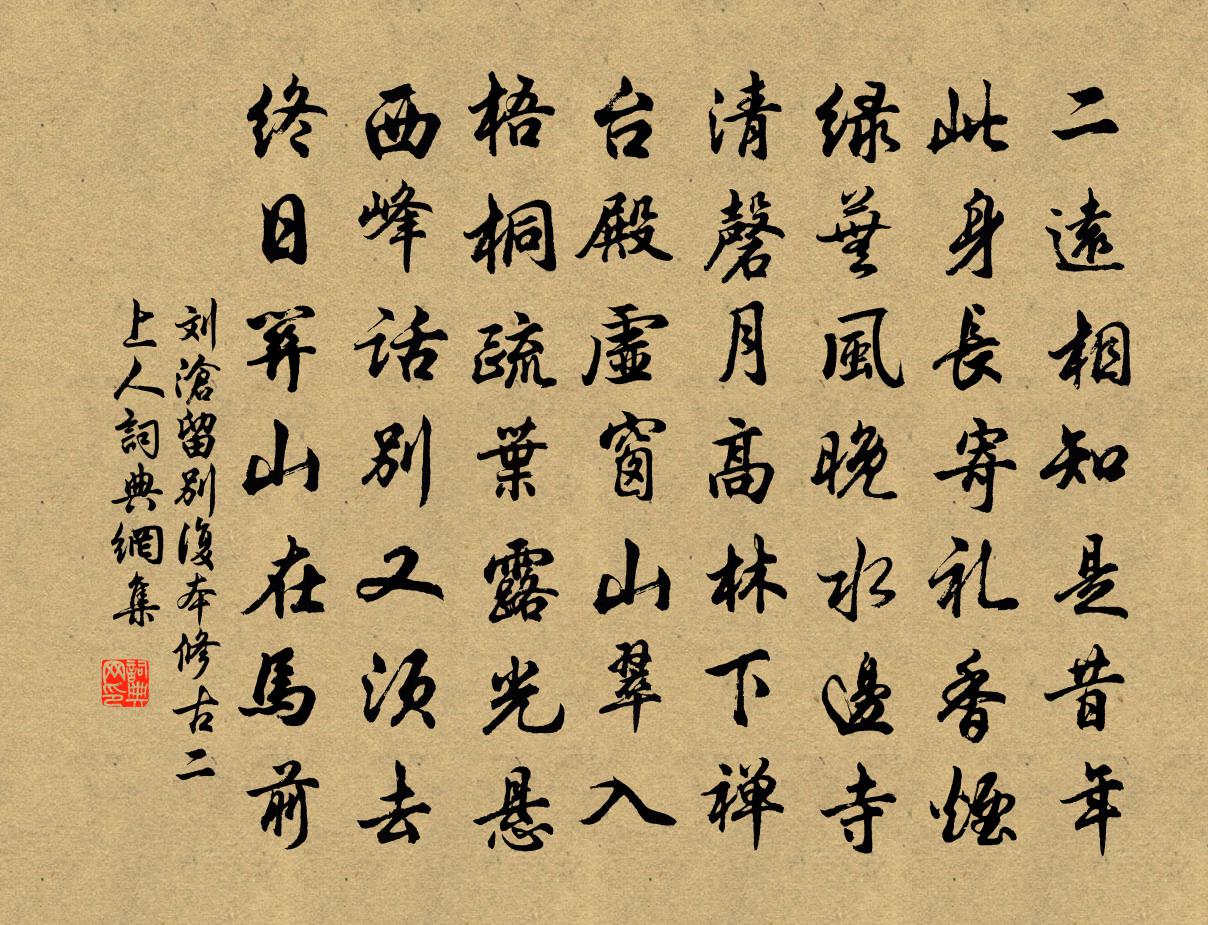 詩詞名句歷史字典書法欣賞書法字典國語詞典說文解字康熙字典古漢語字典標 題 作 者 詩 句 留別複本修古二上人作者:劉滄 朝代:唐代留別複本修古二上人原文二遠相知是昔年,此身長寄禮香菸。綠蕪風晚水邊寺,清磬月高林下禪。台殿虛窗山翠入,梧桐疏葉露光懸。西峰話別又須去,終日關山在馬前。詩詞問答問:留別複本修古二上人的作者是誰?答:劉滄問:留別複本修古二上人寫於哪個朝代?答:唐代問:留別複本修古二上人是什麼體裁?答:七律劉滄留別複本修古二上人書法欣賞留別複本修古二上人書法作品注釋全唐詩:卷586-17詩詞推薦入若耶溪崔顥〔唐代〕輕舟去何疾,已到雲林境。起坐魚鳥間,動搖山水影。岩中響自答,溪里言彌靜。事事令人幽,停橈向餘景。上元日詣昭應宮分獻凝命殿以憲職不預班獨歸晏殊〔宋代〕別殿香三炷,斜廊酒一杯。官間非侍從,騎馬卻歸來。雜曲歌辭。楊柳枝韓琮〔唐代〕梁苑隋堤事已空,萬條猶舞舊春風。那堪更想千年後,誰見楊花入漢宮。送台州李使君,兼寄題國清寺劉長卿〔唐代〕露冕新承明主恩,山城別是武陵源。花間五馬時行縣,山外千峰常在門。晴江洲渚帶春草,古寺杉松深暮猿。知到李絳裴度金朋說〔宋代〕輔主中興劃懋功,削平僭叛黨一循公。自憐黨起群邪進,王業蕭條不克終。三山杜門作歌陸游〔宋代〕我生學步逢喪亂,家在中原厭奔竄。淮邊夜聞賊馬嘶,跳去不待雞號旦。人懷一餅草間伏,往往經旬不炊爨。鳴呼五和劉克莊〔宋代〕客怪村翁老猶健,我知造物有乘除。曾看鯨海鵬天了,豈比蜂窩蟻垤如。舊敬尊公維北斗,今為後學指南車。此生送強甫赴惠安六言十首劉克莊〔宋代〕村叟昔嘗為宰,溪民今未忘吾。汝父德薄勿效,前有子野易□。蒹葭佚名〔先秦〕蒹葭蒼蒼,白露為霜。所謂伊人,在水一方,溯洄從之,道阻且長。溯游從之,宛在水中央。蒹葭萋萋,白露未晞赴翠峰請別靈隱禪師釋重顯〔宋代〕臨行情緒懶開言,提唱宗乘亦是閒。珍重導師並海眾,不勝依戀向靈山。西華逢李令子翼梅堯臣〔宋代〕適從潁水歸,道逢西華長。不見二十年,顏須我非曩。君問洛陽日,舊友多泉壤。更別如前時,應復少吾黨。思佳客(次韻蔡文同集錢漕池亭)洪适〔宋代〕花信今無一半風。芙蓉出水幾時紅。看成弱柳陰陰綠,自在遷鶯巧語中。風傍戶,月留空。金尊相對醉珠櫳。歸鞭菜羹二首姜特立〔宋代〕一自入金門,屢蒙分玉食。今朝苜蓿盤,猶疑照初日。和歙州陳使君見寄徐鉉〔唐代〕新安風景好,時令肅轅門。身貴心彌下,功多口不言。韜鈐家法在,儒雅素風存。簪履陪游盛,鄉閭俗化敦。臨窗真定即事,奉贈韋使君二十八韻高適〔唐代〕飄泊懷書客,遲回此路隅。問津驚棄置,投刺忽踟躕。方伯恩彌重,蒼生詠已蘇。郡稱廉叔度,朝議管夷吾。乃繼和葺芷雪韻鄭清之〔宋代〕冰山鑿碎五丁力,散作席花誰捆織。射鵰人去飛燕寒,擁衾內視方閉息。能令赤鳳冒白羽,夜半翾翻天際識。白雲減字木蘭花佚名〔宋代〕鵝黃初吐。無數蜂兒飛不去。別有香風。不與南枝斗淺紅。憑誰折取。擬把玉人分付與。碧玉搔頭。淡淡霓裳人倚憶李友叔皓三首陳淳〔宋代〕初見即我贈,東京博雅堂。再見復我和,北窗小梅章。此物今只存,而人乃雲亡。有時牽龍尾,濃磨發精光。恍惚鳳山閣張徽〔宋代〕舉頭何處認京華,鳳閣層層出亂霞。山勢轉來雙徑曲,水聲分去一川斜。丹青隱映林間焙,黑白微茫石上畲。遇興詠甘蔗佚名〔清代〕綠陣連煙垠,風雨化精節。玉露含青紫,沁徹哲人心。名句推薦此時卻羨閒人醉,五馬無由入酒家。白居易《早冬》 綠淨春深好染衣。際柴扉。賀鑄《釣船歸·綠淨春深好染衣》 非意相干,可以理遣。房玄齡《晉書·列傳·第六章》 聰以知遠,明以察微。司馬遷《史記·五帝本紀》 萬兩黃金容易得,知心一個也難求曹雪芹《紅樓夢·第五十七回》 雖使鬼神請亡,此猶可以合歡聚眾,取親於鄉里。墨子《墨子·31章 明鬼(下)》 疏籬下、試覓重陽,醉擘青露菊。吳文英《一寸金·秋感》 夜喧山門店,獨宿不安席。韋應物《聽嘉陵江水聲寄深上人》 脅肩諂笑,病於夏畦。孟子《孟子·滕文公章句下·第七節》 雪裡溫柔,水邊明秀,不借春工力。辛棄疾《念奴嬌·梅》