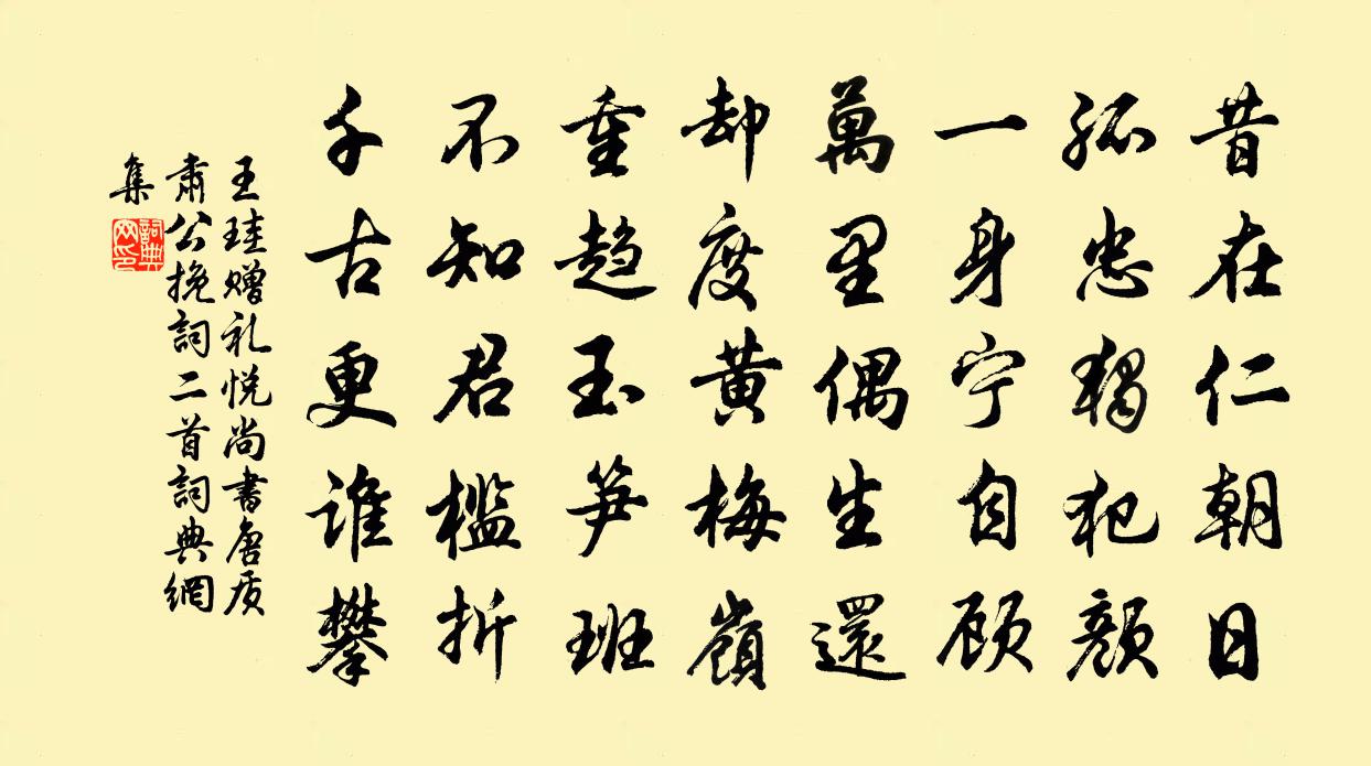 詩詞名句歷史字典書法欣賞書法字典國語詞典說文解字康熙字典古漢語字典標 題 作 者 詩 句 贈禮悅尚書唐質肅公輓詞二首作者:王珪 朝代:唐代原文昔在仁朝日,孤忠獨犯顏。一身寧自顧,萬里偶生還。卻度黃梅嶺,重趨玉筍班。不知君檻折,千古更誰攀。詩詞問答問:《贈禮悅尚書唐質肅公輓詞二首》的作者是誰?答:王珪問:該詩寫於哪個朝代?答:唐代書法欣賞贈禮悅尚書唐質肅公輓詞二首書法作品詩詞推薦頌古二十五首釋崇岳〔宋代〕出得出不得,攧落精靈窟。何處不風流,祖師無妙訣。姜池源廟二首鄧肅〔宋代〕樽酒源頭一拜神,麕羊瓮繭便青春。當年旱魃矜余虐,禱去陽侯失舊津。送李使君赴邵州皇甫冉〔唐代〕出送東方騎,行安南楚人。城池春足雨,風俗夜迎神。郢路逢歸客,湘川問去津。爭看使君度,皂蓋雪中新。再和答為之黃庭堅〔宋代〕林君維閩英,數面成瓜葛。鄰居接杖藜,過飯厭疏糲。讀書飽工夫,論事極精核。奮身君子場,勇若怒未泄。窮年秋懷十首以竹藥閉深院琴樽開小軒為韻陸游〔宋代〕世事本何常,賀吊更在門。棄為溝中斷,亦何羨犧樽?禍福要其終,愚智始可言。君看驪山墓,何若楊王孫?立春陸游〔宋代〕採花枝上寶旛新,看遍秦山楚水春。村舍不知時節換,傍檐百舌苦撩人。結襪子楊維楨〔元代〕漢家九陛飛秋霜,公卿會立朝明堂。王生何人談老黃,廷辱廷尉理不山。廷尉跪結襪,有如壯夫出胯下,面無慚色道無情 依韻別沁州長官杜師尹志平〔元代〕未達難通天令。誰解洞中生靜。道在有無間。隔千山。去住絕疑心定。任運逍遙隨命。終日不迷南。更何參。挽董儒促二首王珪〔唐代〕戰藝升環水,論詩得異聞。窺園仍舊隱,下馬忽新墳。白社真投分,青燈憶離群。有書無子讀,此事最憐君。訪何茂恭於南湖何有詩因次韻喻良能〔宋代〕相別三年久,相逢一笑時。眼邊無俗物,袖裡有清詩。山路梅花早,湖天雪意遲。不眠成夜話,寒月在疏枝。夢中作蘇泂〔宋代〕青燈一盞照青編,月色霜華兩皓然。交友歲寒何所憶,水仙王廟竹林邊。答鍾元達覓藉栽二首劉宰〔宋代〕紅妝翠蓋出污塗,水面風吹醉欲扶。逢是凌波有仙種,文君莫訝茂陵姝。鄭君瑞示同諸公游定空佳什仆亦久欲與君現狀毛滂〔宋代〕佳哉五英雋,並駕玉為林。傾蓋分不淺,好山情已深。春光不約略,晴意恰沉吟。老病示堪出,詩鋒遙見侵。史魏公東湖別墅二首劉應時〔宋代〕徜徉綠野春波上,徙倚石樓煙靄間。只恐蒼生待霖雨,未容謝傅老東山。李粹伯對月見懷次韻曾協〔宋代〕初收雨腳萬絲懸,妙手誰人補漏天。佳月素華迷夜旦,好詩餘味滿中邊。裴徊無奈謝希逸,齁齁總輸邊孝先。見說酬淨慈綱上人三首劉克莊〔宋代〕參寥燈一點,不審是誰傳。晚識綱書記,元來在汝邊。楓橋寺小憩程公許〔宋代〕寂歷少林壁,酸寒飯顆山。相逢如有舊,示我亦無還。偈頌四十一首釋普寧〔宋代〕近得遠來口傳信,報導年來頗安靜。唯有太白瑞岩翁,撞破虛空有雜碎。驚起西川大蓬山上石女淚雙垂,引得扶桑巴陵送李十二王昌齡〔唐代〕搖曳巴陵洲渚分,清江傳語便風聞。山長不見秋城色,日暮蒹葭空水雲。變覺院登上人房老梅擅名滋久昔四靈與其先師薛嵎〔宋代〕四靈歿後誰知已,惟有清香滿舊枝。頭白山僧猶愛客,為曾親見老師時。名句推薦過盡千帆皆不是,斜暉脈脈水悠悠。溫庭筠《望江南·梳洗罷》 有兼聽之明,而無矜奮之容;有兼覆之厚,而無伐德之色。荀子《荀子·正名》 半夜倚喬松,不覺滿衣雪。孟郊《苦寒吟》 傍枯林古道,長河飲馬,此意悠悠。張炎《八聲甘州·記玉關踏雪事清游》 記得舊時,探梅時節。老來舊事無人說。呂本中《踏莎行·雪似梅花》 樹繞村莊,水滿陂塘。秦觀《行香子·樹繞村莊》 啜苦咽甘,茶也。陸羽《茶經·五之煮》 登臨送目,正故國晚秋,天氣初肅。王安石《桂枝香·登臨送目》 誰知萬里客,懷古正躊躕。陳子昂《峴山懷古》 飛雲當面化龍蛇,夭矯轉空碧。秦觀《好事近·夢中作》