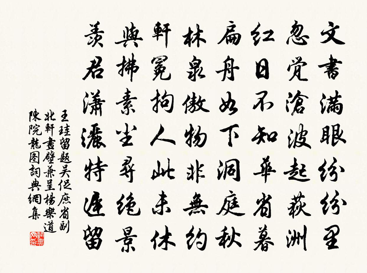 詩詞名句歷史字典書法欣賞書法字典國語詞典說文解字康熙字典古漢語字典標 題 作 者 詩 句 留題吳促庶省副北軒畫壁兼呈楊樂道陳院龍圖作者:王珪 朝代:唐代原文文書滿眼紛紛里,忽覺滄波起荻洲。紅日不知華省暮,扁舟如下洞庭秋。林泉傲物非無約,軒冕拘人此未休。與拂素塵尋絕景,羨君瀟灑特遲留。詩詞問答問:《留題吳促庶省副北軒畫壁兼呈楊樂道陳院龍圖》的作者是誰?答:王珪問:該詩寫於哪個朝代?答:唐代書法欣賞留題吳促庶省副北軒畫壁兼呈楊樂道陳院龍圖書法作品詩文賞析【原題】:留題吳促庶省副北軒畫壁兼呈楊樂道陳院龍圖三首詩詞推薦宮詞宋白〔宋代〕貪領吳娃唱鷓鴣,洞簫詞賦頓生疏。沉吟不記當時字,卻向宮中問婕好。過丹山訪黃元英不值英壬子歲正資州所解進士度正〔宋代〕憶昔來司校士科,宣傳是歲得人多。重來處處歡相問,怪我官猶舊戶曹。千年調·卮酒向人時辛棄疾〔宋代〕蔗庵小閣名曰“卮言”,作此詞以嘲之。 卮酒向人時,和氣先傾倒。最要然然可可,萬事稱好。滑稽坐上,更對成武縣作王禹偁〔宋代〕釋褐來成武,初官且自強。位卑松在澗,俸薄葉經霜。雨菌生書案,飢禽啄印床。猶驚寫秋卷,槐砌落花黃。偶見(黃州作)杜牧〔唐代〕朔風高緊掠河樓,白鼻騧郎白罽裘。有個當壚明似月,馬鞭斜揖笑回頭。句歐陽鈇〔宋代〕夢回千里外,燈轉一窗深。寄清涼和上人二首之二賀鑄〔宋代〕南國風流百不存,石頭今是給孤園。山連雉堞猶侵路,潮送漁舟自到門。方丈定容居士病,貝多應待客兒翻。懸知小疾治藥偶書陸游〔宋代〕揠苗農害稼,過劑藥傷人。此理君能造,無為萬物春。蝶戀花(用前韻送人行)辛棄疾〔宋代〕意態憨生元自好。學畫鴉兒,舊日偏他巧。蜂蝶不禁花引調。西園人去春風少。春已無情秋又老。誰管閒愁,千里虞察院生日姜特立〔宋代〕下車好語敬書紳,誠意區區只為民。今歲年豐米狼戾,更須通變惠斯人。琴賦嵇康〔魏晉〕 余少好音聲,長而玩之。以為物有盛衰,而此無變;滋味有厭,而此不倦。可以導養神氣,宣和情志。處窮獨垂柳李商隱〔唐代〕娉婷小苑中,婀娜曲池東。朝佩皆垂地,仙衣盡帶風。七賢寧占竹,三品且饒松。腸斷靈和殿,先皇玉座空。洞霄與道士夜話關注〔宋代〕夜闌立語意蕭然,似與黃冠有宿緣。不用天壇飛皓鶴,知君家世是神仙。古意蒲壽宬〔宋代〕梳鬟照寒泚,寒泚知貞胸。整鬟摘秋芳,秋芳無冶容。平生幾偃蹇,今逐梁君鴻。既甘布裙績,寧厭短褐舂。剔目豆粥胡仲弓〔宋代〕豆白宜烹玉糝糜,絕勝雲子雪翻匙。蕪蔞亭上冰霜里,曾與君療一飢。奉和初春登樓即目應詔許敬宗〔唐代〕旭日臨重壁,天眷極中京。春暉發芳甸,佳氣滿層城。去鳥隨看沒,來雲逐望生。歌里非煙颺,琴上凱風清。文波回建德寄馮和峰隱士王奕〔宋代〕王子歸鄒魯,知公隱德鄉。道為千載惜,身抱六經藏。青壁丹崖遠,黃花白骨香。百年交一臂,悔不拜龐床。上袁文昌知平江五首劉過〔宋代〕行盡淮南日日東,自攜隻影入吳松。人生五馬方知貴,客老諸侯嘆未逢。適意秋風寧為鱠,驚心半夜忽聞鍾。十年春風謠仇遠〔宋代〕春風吹柳枝,柳枝拂短牆。春風吹桃葉,桃葉浮煙江。春風薄情不可當,鳴鳩乳燕相頡頏。春日長,春夜短,雪花水調歌頭葛長庚〔宋代〕昔在虛皇府,被謫下人間。笑騎白鶴,醉吹鐵笛落星灣。十二玉樓無夢,三十六天夜靜,花雨灑琅玕。瑤台歸未得名句推薦老吾老,以及人之老;幼吾幼,以及人之幼司馬光《資治通鑑·漢紀·漢紀四十二》 泥融飛燕子,沙暖睡鴛鴦。杜甫《絕句二首》 中心愿,平虜保民安國。宋江《滿江紅·喜遇重陽》 家家乞巧望秋月,穿盡紅絲幾萬條。林傑《乞巧》 千里稻花應秀色,五更桐葉最佳音。曾幾《蘇秀道中》 天涯靜處無征戰,兵氣銷為日月光。常建《塞下曲四首·其一》 鶯鶯燕燕分飛後,粉淡梨花瘦。元好問《虞美人·槐陰別院宜清晝》 君子之澤五世而斬孟子《孟子·離婁章句下·第二十二節》 話不在多說,有理不在高聲!佚名《增廣賢文·下集》 把酒送春春不語。黃昏卻下瀟瀟雨。朱淑真《蝶戀花·送春》