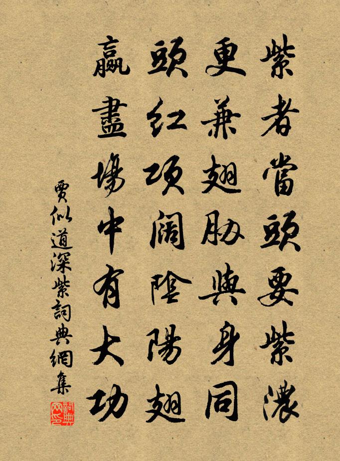 詩詞名句歷史字典書法欣賞書法字典國語詞典說文解字康熙字典古漢語字典標 題 作 者 詩 句 深紫作者:賈似道 朝代:宋代深紫原文紫者當頭要紫濃,更兼翅脅與身同。頭紅項闊陰陽翅,贏盡場中有大功。詩詞問答問:深紫的作者是誰?答:賈似道問:深紫寫於哪個朝代?答:宋代賈似道深紫書法欣賞深紫書法作品詩詞推薦滿庭芳(和葉憲韻)洪适〔宋代〕柳徑花台,熙熙春動,遊人珥墮簪遺。枯藤到處,綠刺惹冠衣。雪後園林更好,瓊作佩、香滿橫枝。巡檐久,留連送趙侍朗被召曹彥約〔宋代〕大纛高牙占帥垣,甘泉人物帝王孫。文如賀白尤寒素,政似龔典更本原。歲課未書先報政,詔封頻趣定調元。欲知西鹿田寺聽雨方鳳〔宋代〕禪棲投倦客,山雨起更闌。窗葉散幽響,石林生峭寒。洞深猶暗瀑,江遠忽飛湍。想像雲蘿外,應宜曉色看。風霜陸游〔宋代〕天上風霜慘,人間日月遒。江湖南北雁,原野雨晴鳩。莽蒼新阡陌,凋零舊輩流。惟應赤藤杖,伴我送悠悠。齊天樂(壬子和陳次賈為壽韻)李曾伯〔宋代〕少年塞上秋來早,昴街尚余芒曜。舉目關河,驚心弧矢,顧我豈堪戎纛。幾番鳳誥。愧保障何功,恩隆旒藻。笑指升天行李鹹用〔唐代〕堂堂削玉青蠅喧,寒鴉啄鼠愁飛鸞。梳玄洗白逡巡間,蘭言花笑俄衰殘。盤金束紫身屬官,強仁小德終無端。不如宿武夷宮彥修〔宋代〕學仙獨訪武夷君,老樹垂藤弄夕曛。我欲幔亭拚一醉,不知何處奏賓雲。和茅亭趙希逢〔宋代〕獨坐茅亭濯晚涼,檐前萬影立篔簹。數聲蕭琴渾疑雨,細細吹來卻有香。山園陸游〔宋代〕山園寂寂閉春風,個裡天教著放翁。萬事已拋孤枕外,一尊常醉亂花中。閒隨戲蝶忘形久,細聽啼鶯得意同。月桂錦池芙蓉盛開與譚德稱何國叔曾遠逸玉季嘉呂張鎡〔宋代〕道人有園居,其門可羅爵。夫何諸賢傑,疎野盡闊略。聯鑣過柴荊,慰藉淡與泊。爾時木芙蓉,酣酣縱雲萼。呼酒澶州王安石〔宋代〕津津河北流,嶭嶭兩城峙。春秋諸侯會,澶淵乃其地。書留後世法,豈獨譏當世。野老豈知此,為予談近事。邊關春怨王安石〔宋代〕掃地待花落,惜花輕著塵。遊人少春戀,踏去卻尋春。送賀蘭上人賈島〔唐代〕野僧來別我,略坐傍泉沙。遠道擎空缽,深山蹋落花。無師禪自解,有格句堪夸。此去非緣事,孤雲不定家。泛湖十絕句陳造〔宋代〕玉人罷浴試梅妝,詩客揮毫落夜光。因病覆觴今破戒,為渠豪飲為君狂。贈成祕校金君卿〔宋代〕四門喦下一翹英,滿腹詩書學已成。講義群庠初應辟,絳帷羅列盡諸生。偈頌一百零九首釋可湘〔宋代〕初三十一,中九下七。今朝部入書雲筆,大書特書兼屢書,祖師兩眼黑如漆。懷軒轅先生齊己〔唐代〕不得先生信,空懷汗漫秋。月華離鶴背,日影上鰲頭。欲學孤雲去,其如重骨留。槎程在何處,人世屢荒丘。五龍六首佚名〔宋代〕練吉日兮,進神之堂。牲既陳兮,粢盛既香。奠桂酒兮,容興嘉觴。發安留兮,錫我福祥。杜甫引俚語佚名〔唐代〕城南韋杜,去天尺五。探春令趙長卿〔宋代〕冰澌池面。柳搖金線,春光無限。問梅花底事,收香藏蕊,到此方舒展。百花頭上俱休管。且驚開俗眼。看綠陰結名句推薦柳葉開銀鏑,桃花照玉鞍。駱賓王《送鄭少府入遼共賦俠客遠從戎》 寢興目存形,遺音猶在耳。潘安《悼亡詩三首》 誰忍窺河漢,迢迢問鬥牛。孟浩然《他鄉七夕》 江山代有才人出,各領風騷數百年。趙翼《論詩五首·其二》 鍥而舍之,朽木不折;鍥而不捨,金石可鏤。荀子《荀子·勸學》 善政得民財,善教得民心。孟子《孟子·盡心章句上·第十四節》 暝色入高樓,有人樓上愁。李白《菩薩蠻·平林漠漠煙如織》 花徑不曾緣客掃,蓬門今始為君開。杜甫《客至》 似醉煙景凝,如愁月露泫。崔護《五月水邊柳》 目妄視則淫,耳妄聽則惑,口妄言則亂。劉安及其門客《淮南子·主術訓》