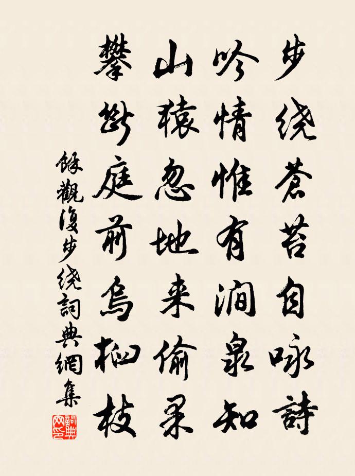 詩詞名句歷史字典書法欣賞書法字典國語詞典說文解字康熙字典古漢語字典標 題 作 者 詩 句 步繞作者:余觀復 朝代:宋代步繞原文步繞蒼苔自詠詩,吟情惟有澗泉知。山猿忽地來偷果,攀斷庭前烏桕枝。詩詞問答問:步繞的作者是誰?答:余觀復問:步繞寫於哪個朝代?答:宋代余觀復步繞書法欣賞步繞書法作品詩詞推薦送僧省母釋智愚〔宋代〕十年來入浙東西,捱得頭荒露伏犀。因話編蒲米山老,不禁秋夜聽莎雞。寄太府丞王能甫晁公溯〔宋代〕君才雄萬夫,少也備文武。前年有疆事,假守在淮浦。小試三里城,已可因吾圉。諸公識獻納,見賢自當舉。雖聞余常用小端硯失之經年忽在常賣人手中以錢贖劉克莊〔宋代〕得來矻矻相親附,颺去頻頻入夢思。盜璧相爭笞掠汝,竊弓子筆亦誅之。償金在我寧從厚,拜石為兄苦好奇。待喚郢州道中見剌玫瑰花項安世〔宋代〕酴醾雨後飄春雪,芍藥負前散晚霞。一種繁香伴行客,只應多謝剌玫花。倒犯方千里〔宋代〕盡日、任梧桐自飛,翠階慵掃。閒雲散縞。秋容瑩、暮天清窈。斜陽到地,樓閣參差簾櫳悄。嫩袖舞涼颸,拂拂生宜興山房十首李曾伯〔宋代〕曉起爐煙一縷清,梵音繚繞檻軒行。須臾日上松梢了,又聽齋鐘相齋鳴。寓江州分司衙隨筆五首董嗣杲〔宋代〕街聲崇墉隔,畏客陶詩興。枯梅三兩株,僅有枝條剩。斜暉臥竹棚,疊蘚覆石磴。始來覬聯屬,久去歸蹭蹬。萬丈李伯陽贊三首白玉蟾〔宋代〕蓬萊三萬里,道德五千言。一自青牛去,函關煙雨昏。鷓鴣天(詠漁父)王質〔宋代〕一隻船兒任意飛。眼前不管是和非。魚兒得了渾閒事,未得魚兒未肯歸。全似懶,又如痴。這些快活有誰知。華堂椿晏殊〔宋代〕峨峨楚南樹,杳杳含風韻。何用八千秋,騰凌詫朝菌。偈傾一百三十三首釋法薰〔宋代〕九夏安居,眉毛廝結。一人發真歸源,十方虛空迸裂。牡丹裴說〔唐代〕數朵欲傾城,安同桃李榮。未嘗貧處見,不似地中生。此物疑無價,當春獨有名。游蜂與蝴蝶,來往自多情。寄周宗聖釋永頤〔宋代〕我心如有失,曾未識南園。幾見間花落,頻將好夢原。時賢我厚祿,君子尚衡門。詩卷逢僧寄,長吟落照村。合肥懷古三首吳資〔宋代〕曹公教弩台,今為比丘寺。東門小河橋,曾飛吳主騎。野步陸游〔宋代〕漠漠秋園暮景孤,綸巾羽服從奚奴。風流畫手無摩詰,寫作龍山野步圖。臨江仙 賀廉侯舉次兒子劉因〔元代〕四海荊州吾所愛,虎賁誰似中郎。小孫今擬喚甘棠。添官前有例,簪笏看堆床。明日乃公歸舊隱,後園喬木蒼蒼。靜坐對茶花偶作曹彥約〔宋代〕菊後侮前冷落時,剪檀雕蠟酷為肌。人從老處親平淡,花向無中補闕虧。地暖不憂春近遠,窗空惟映月參差。病夫白蓮花羅椅〔宋代〕白鸞仙人按羽衣,曲中弄影江南漪。江妃閉置示許歸,一把青寒縈玉絲。不絲蟬連不禁折,折著透根仍透葉。風流吊唐俞梅堯臣〔宋代〕通閨年最少,才俊罕能雙。鵬去塵棲室,魂歸霧起窗。慈親留漢水,愛妾返荊江。一稚才能語,煢然寄遠邦。足趙丈句蘇泂〔宋代〕跨湖樓好客閒行,身遠紅塵步亦輕。月在波心流不去,蒹葭影里一舟橫。名句推薦故山知好在,孤客自悲涼。蘇軾《臨江仙·送王緘》 大江東去,浪淘盡,千古風流人物。蘇軾《念奴嬌·赤壁懷古》 怒髮衝冠,憑欄處、瀟瀟雨歇。岳飛《滿江紅·寫懷》 起望衣冠神州路,白日銷殘戰骨。辛棄疾《賀新郎·用前韻送杜叔高》 昨日春如,十三女兒學繡。辛棄疾《粉蝶兒·和趙晉臣敷文賦落花》 忽憶故人天際去,計程今日到梁州。白居易《同李十一醉憶元九》 山下出泉,蒙;君子以果行育德。佚名《易傳·象傳上·蒙》 青冥浩蕩不見底,日月照耀金銀台。李白《夢遊天姥吟留別 / 別東魯諸公》 機在於應事;戰在於治氣尉繚《尉繚子·十二陵》 日習則學不忘,自勉則身不墮徐幹《中論·上卷·治學》