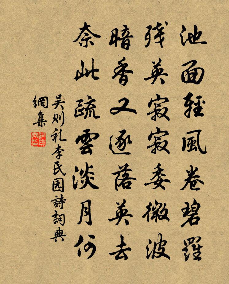 詩詞名句歷史字典書法欣賞書法字典國語詞典說文解字康熙字典古漢語字典標 題 作 者 詩 句 李氏園詩作者:吳則禮 朝代:宋代李氏園詩原文池面輕風卷碧羅,殘英寂寂委微波。暗香又逐落英去,奈此疏雲淡月何。詩詞問答問:李氏園詩的作者是誰?答:吳則禮問:李氏園詩寫於哪個朝代?答:宋代吳則禮李氏園詩書法欣賞李氏園詩書法作品詩詞推薦初春和摺子明歲前兩詩張栻〔宋代〕新春風雨中,日日鳩鳴屋。小園政可步,柰此泥涴足。卻坐問樽酒,知足乃不辱。一杯徑陶然,敢羨車載曲。冬暖楊萬里〔宋代〕小春活脫是春時,霜熟風酣日上遲。晚蝶頻移獵殘蕊,驚禽衝過倒垂枝。暫閒何似長閒好,無事非關了事痴。三徑故仁壽簿張府君輓詩覽府君事狀見其居靖康國史堯弼〔宋代〕羊胖與鬷蔑,雅好非宿敦。攜手遽升堂,一語不待煩。物理適相感,豈用疏戚論。夫君今則亡,遺言空復存。乃能七月初七夜渡黃河汪元量〔宋代〕長河界破東南天,怒濤日夜如奔川。此行適逢七月夕,妖氛散作空中煙。牛郎織女涉清淺,支機石上今何年。揚帆再次交代韻四首陳造〔宋代〕漫叟當年臼作樽,侑樽青嶂漫嶙峋。與君屢共山前醉,似覺清歡勝昔人。杜鵑問答二首劉克莊〔宋代〕昔南使粵北防秋,聞汝啼聲悔遠遊。我憶故鄉歸久矣,君歸未得使人愁。眼兒媚仲並〔宋代〕鈴閣尋盟未肯寒。鷁首駐江乾。雲煙翰墨,風流尊俎,不放更殘。金聲擲地西清老,天未許終閒。知音素賞,當筵與長老夜話出故人俞宋護書予至山之日俞適至王洋〔宋代〕法海空門老伏波,婺源槐市病維摩。道無同異要當爾,命有窮通可奈何。兩目再清張籍在,一經傳子鳳毛多。飽聞次姜堯章贈詩卷中韻陳造〔宋代〕眼青節食事,日耐飢雷吼。茲幸陪眾後,酒卮甫到口。不離寂寞濱,徑造無何有。問津歸有期,尚許尋盟否。無題鄭剛中〔宋代〕池塘好處煙迷柳,簾幕昏時雨過山。燕子不知春有恨,銜將花片入梁間。短燈檠歌韓愈〔唐代〕長檠八尺空自長,短檠二尺便且光。黃簾綠幕朱戶閉,風露氣入秋堂涼。裁衣寄遠淚眼暗,搔頭頻挑移近床。太學清平樂(送賈耘老、盛德常還郡。時飲官酒於東堂,二君許復過此)毛滂〔宋代〕杏花時候。庭下雙梅瘦。天上流霞凝碧袖。起舞與君為壽。兩橋風月同來。東堂且沒塵埃。煙艇何時重理,更憑風嘉禾百詠竹橋張堯同〔宋代〕腰枕政亭北,橫斜古渡頭。風吹雙淚落,恨逐水東流。送衡陽歸客錢起〔唐代〕歸客愛鳴榔,南征憶舊鄉。江山追宋玉,雲雨憶荊王。醉里宜城近,歌中郢路長。憐君從此去,日夕望三湘。雜詠一百首甄濟劉克莊〔宋代〕唐德雖中否,猶能愧畔臣。盡驅污賊者,往拜詐暗人。浙東元相公書嘆梅雨鬱蒸之候,因寄七言劉禹錫〔唐代〕稽山自與岐山別,何事連年鸑鷟飛。百辟商量舊相入,九天祗候老臣歸。平湖晚泛窺清鏡,高閣晨開掃翠微。今日送渭南崔少府歸徐郎中幕盧綸〔唐代〕葉下山邊路,行人見自悲。夜寒逢雪處,日暖到村時。語少心長苦,愁深醉自遲。□□□□□,羨有幕中期。揀貢橘書情白居易〔唐代〕洞庭貢橘揀宜精,太守勤王請自行。珠顆形容隨日長,瓊漿氣味得霜成。登山敢惜駑駘力,望闕難伸螻蟻情。疏賤再用韻十首楊公遠〔宋代〕平生丘壑趣,閒雅更誰同。養竹煙三徑,栽花地一弓。棋邊消永日,琴上鼓薰風。靜里謀生計,優遊道不窮。劉騂子初冠勉以詩陳藻〔宋代〕汝斧十五初裹頭,桂堂讀書從我游。汝今裹頭恰十五,兩載東林就規矩。我身只是前時命,汝家歲久無衰盛。族人名句推薦香滅繡帷人寂寂,倚檻無言愁思遠。顧敻《玉樓春·柳映玉樓春日晚》 賈傅松醪酒,秋來美更香。杜牧《送薛種游湖南》 罔談彼短,靡恃己長。周興嗣《千字文·全文》 香汗薄衫涼,涼衫薄汗香。蘇軾《菩薩蠻·回文夏閨怨》 仁遠乎哉?我欲仁,斯仁至矣。孔子弟子《論語·述而篇》 落地為兄弟,何必骨肉親!陶淵明《雜詩》 地白風色寒,雪花大如手。李白《嘲王歷陽不肯飲酒》 貧無可奈惟求儉,拙亦何妨只要勤。王永彬《圍爐夜話·第三則》 甘受人欺,定非懦弱;自謂予智,終是糊塗。王永彬《圍爐夜話·第一二五則》 雪消門外千山綠,花發江邊二月晴。歐陽修《春日西湖寄謝法曹歌》
