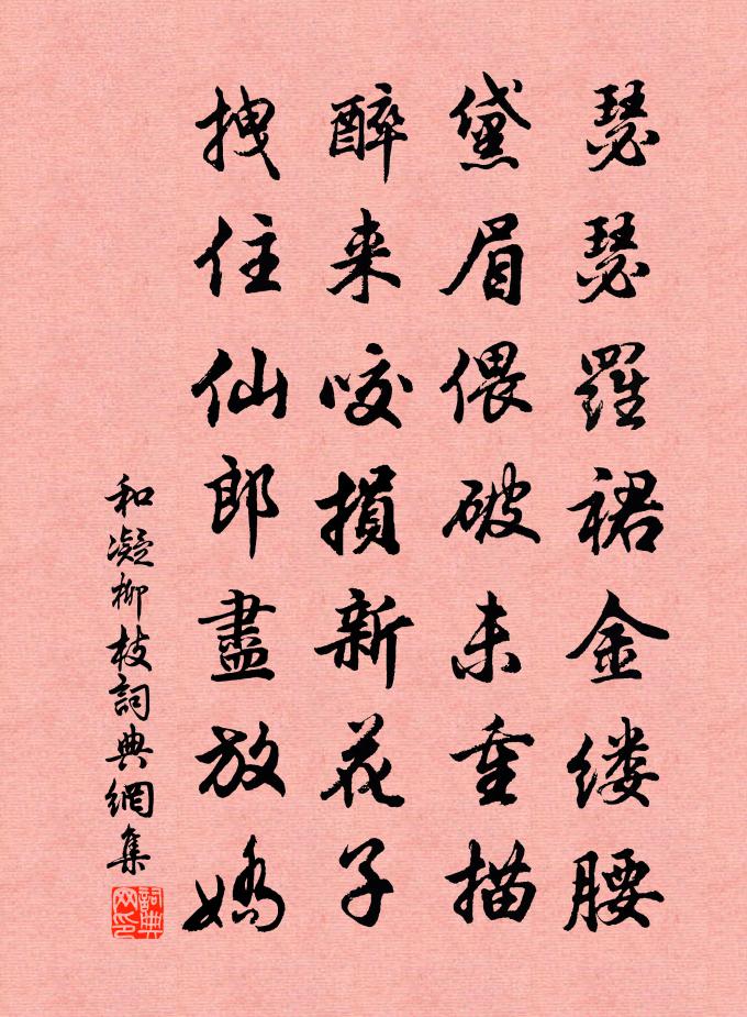 瑟瑟羅裙金縷腰,黛眉偎破未重描。醉來咬損新花子,拽住仙郎盡放嬌。