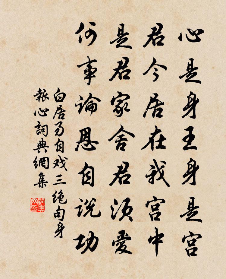 心是身王身是宮,君今居在我宮中。是君家舍君須愛,何事論恩自說功?